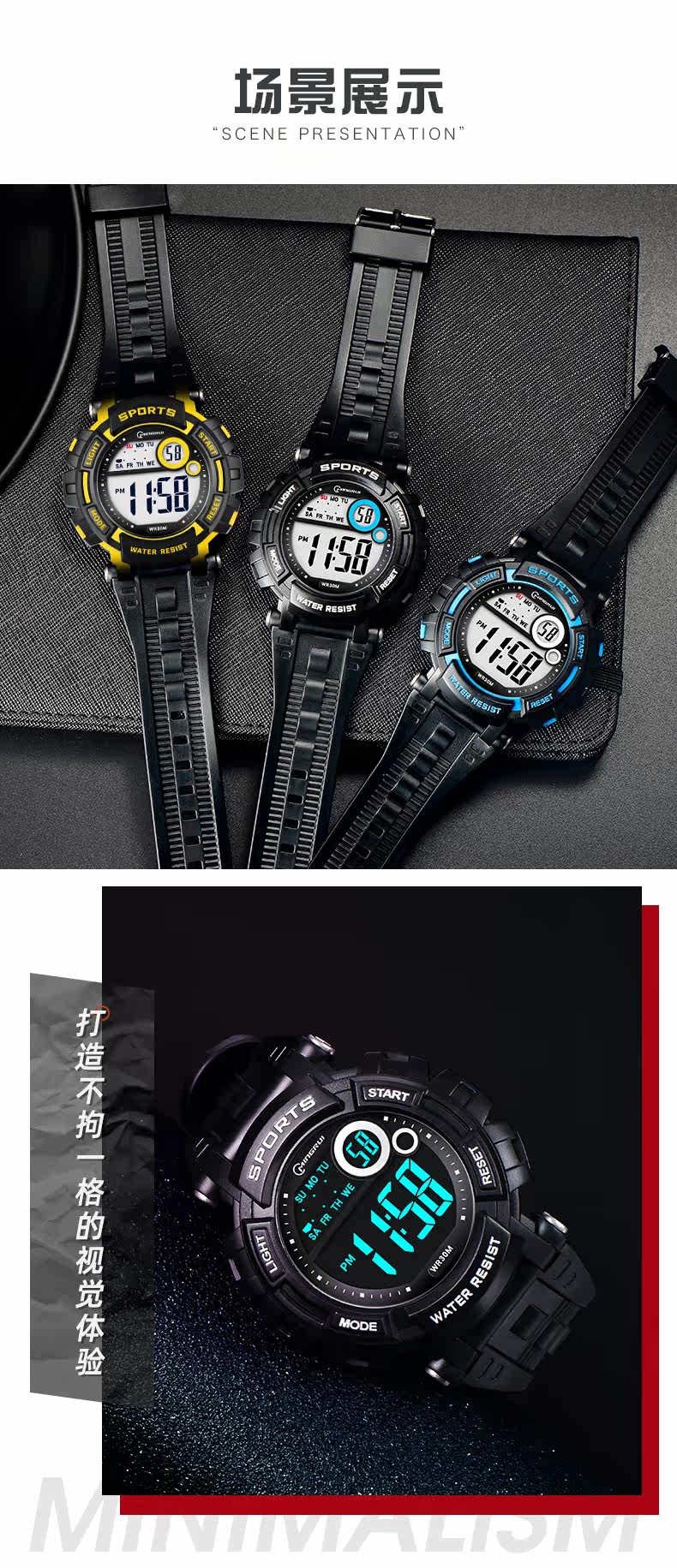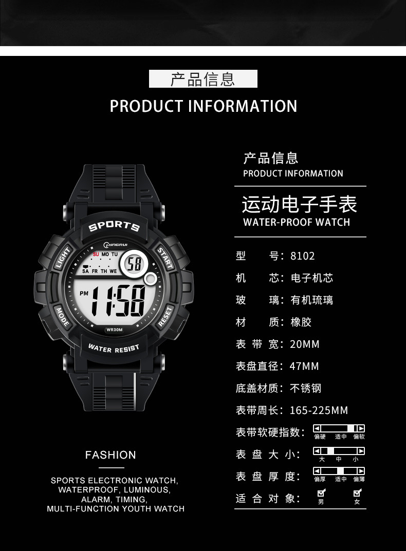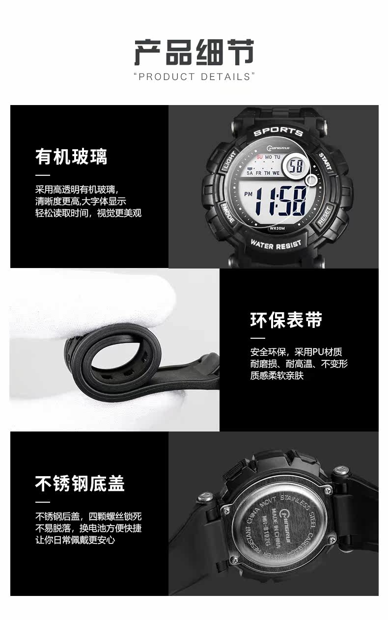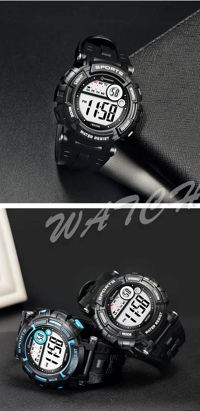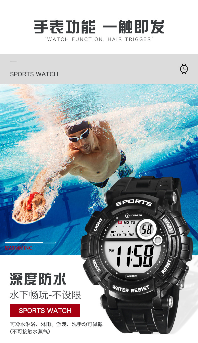 Мужские часы, универсальные водонепроницаемые трендовые цифровые часы, неоновый циферблат