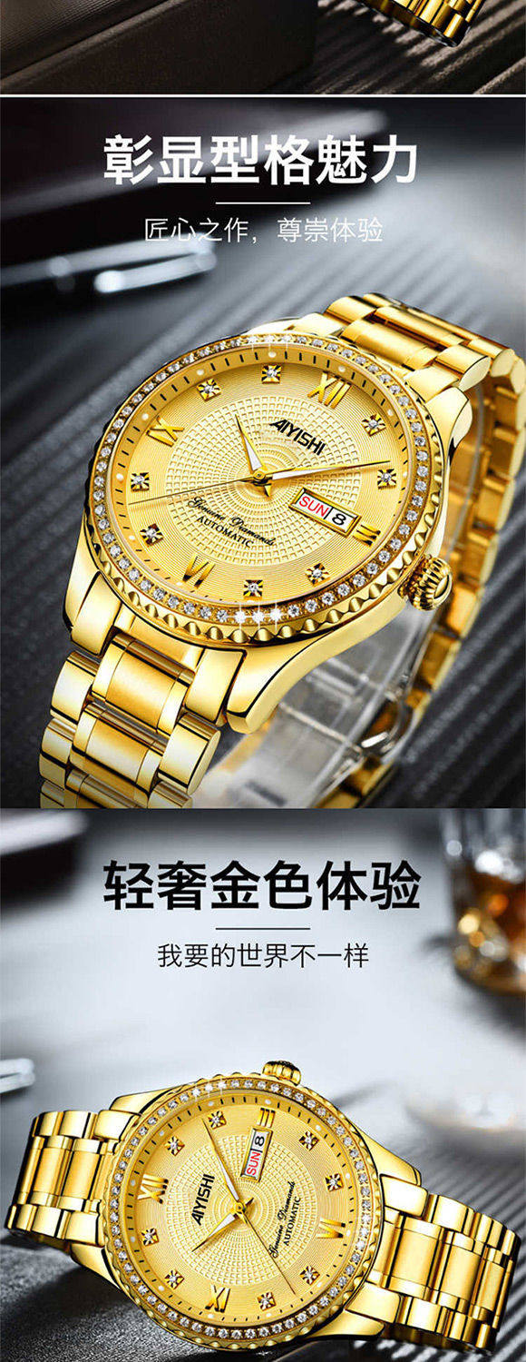 Автоматический календарь, водонепроницаемые швейцарские часы, механические механические часы, золотые часы, Швейцария, полностью автоматический
