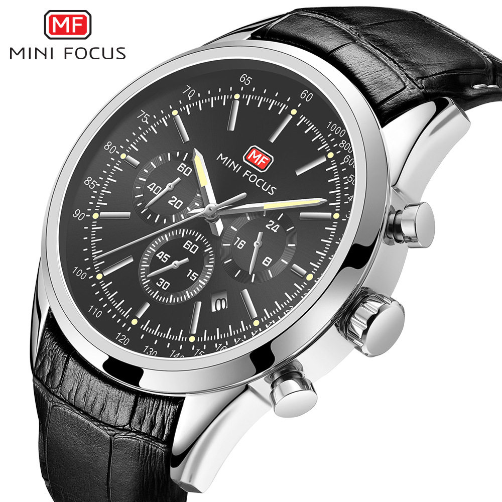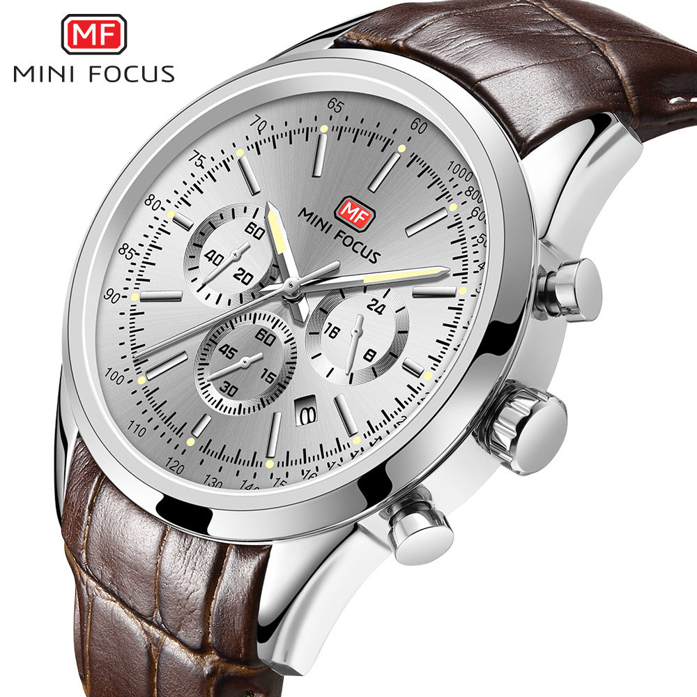 Mini Focus Brand Student Speed Men's Watch Men's Watch Simulation Calendar Calendar Night Light Водонепроницаемый кожаный подставка 0116G