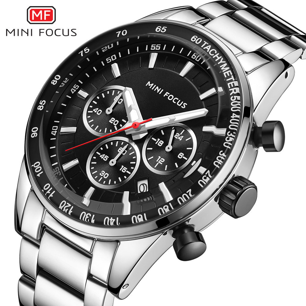 Mini Focus Brand Business Men's Watch Multifunctional Movement Night Light Водонепроницаемый ремешок из нержавеющей стали 0187G