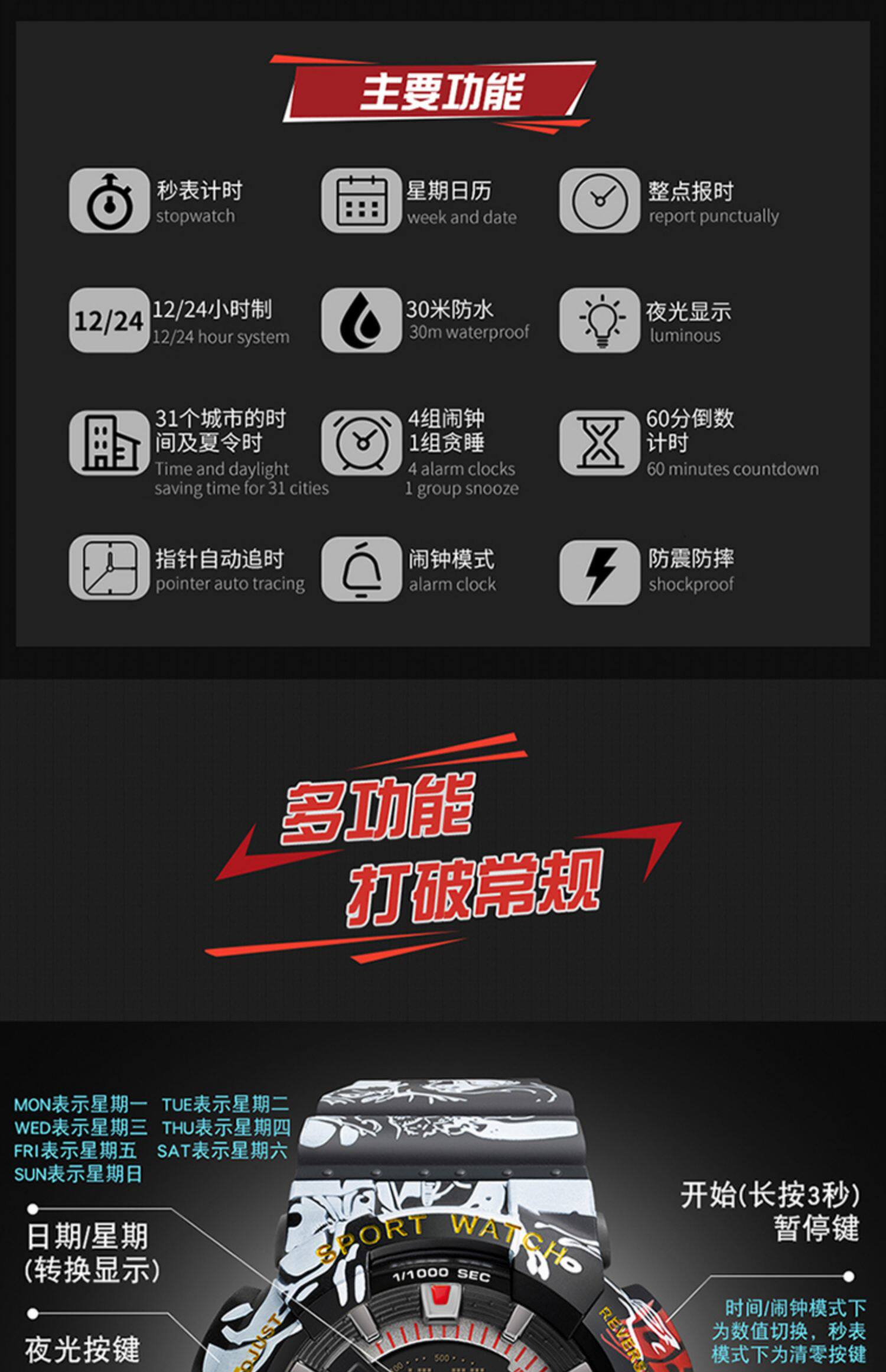 Электронные трендовые спортивные водонепроницаемые мужские часы, простой и элегантный дизайн