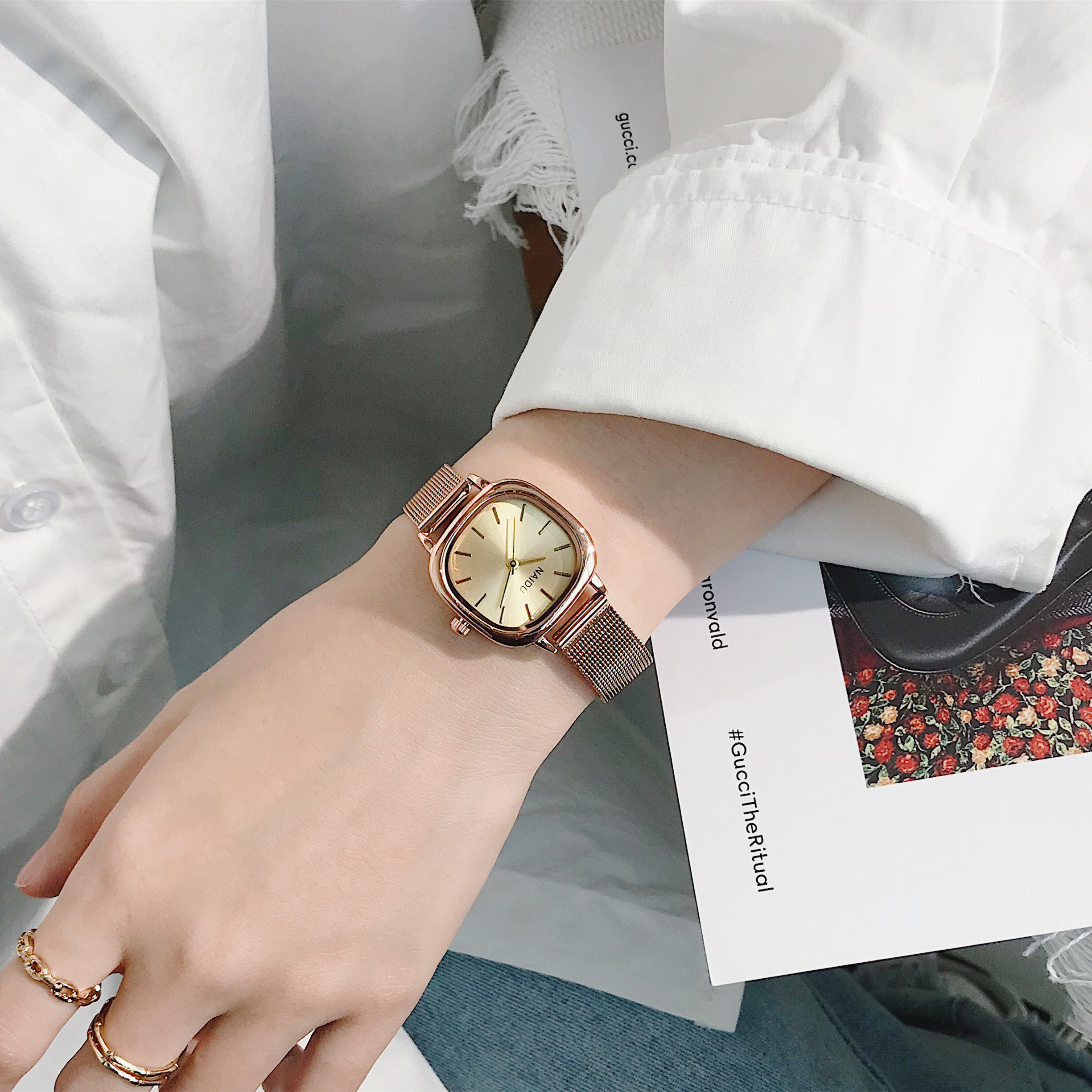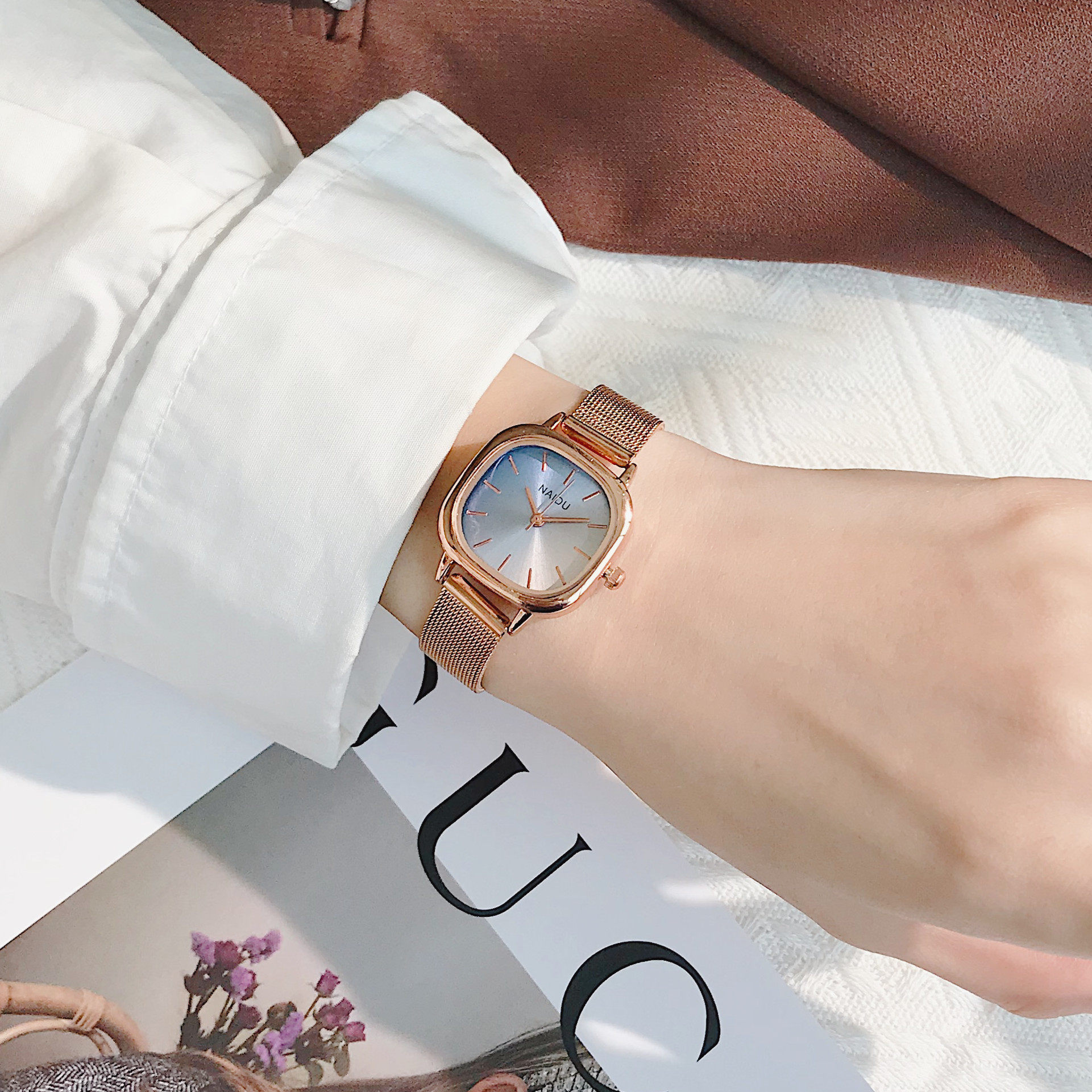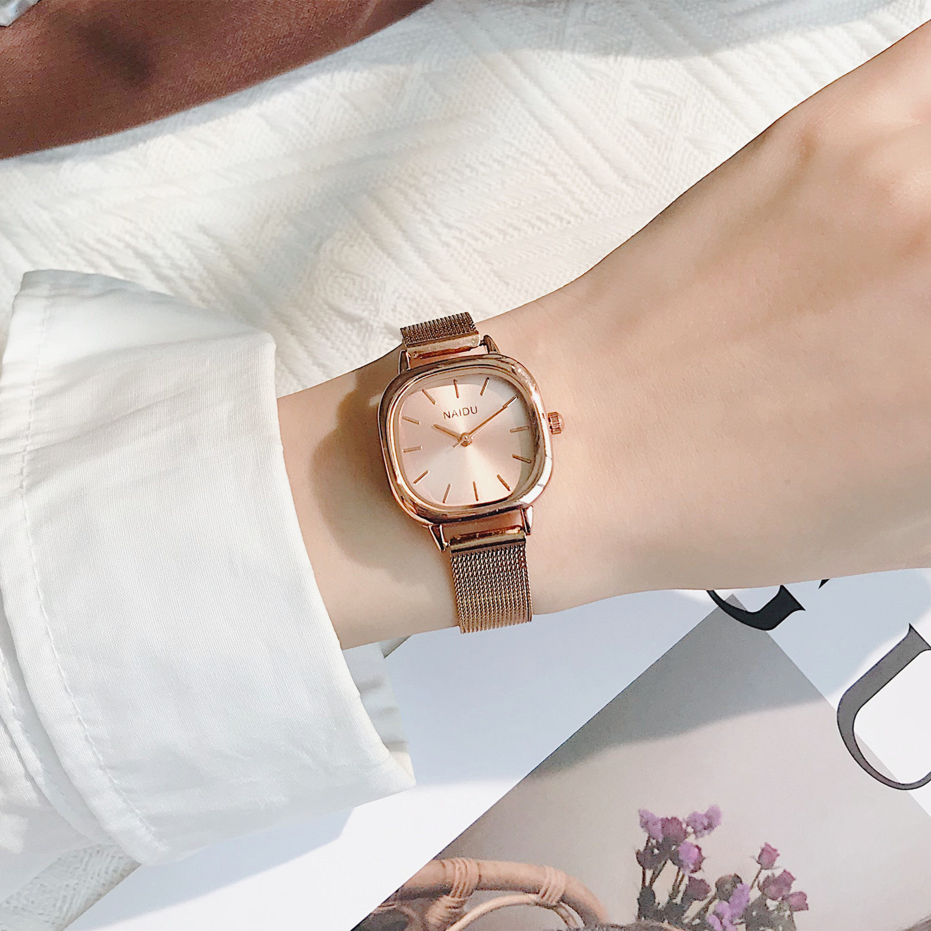 Водонепроницаемые небольшие дизайнерские брендовые кварцевые часы, коллекция 2022, простой и элегантный дизайн, легкий роскошный стиль, популярно в интернете