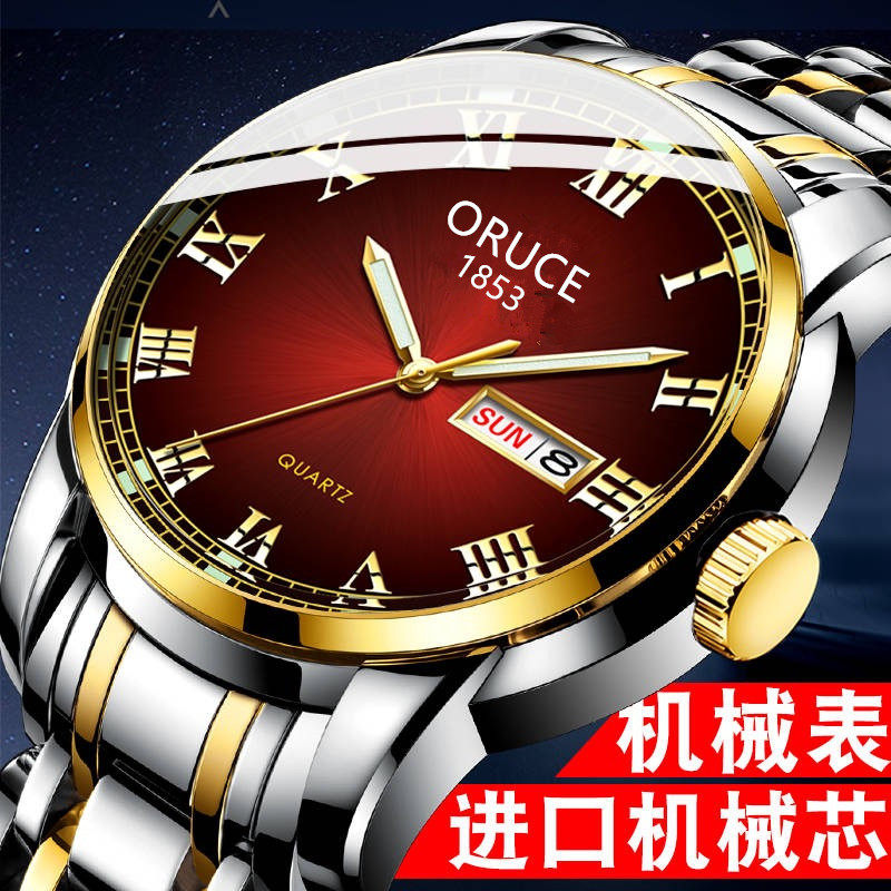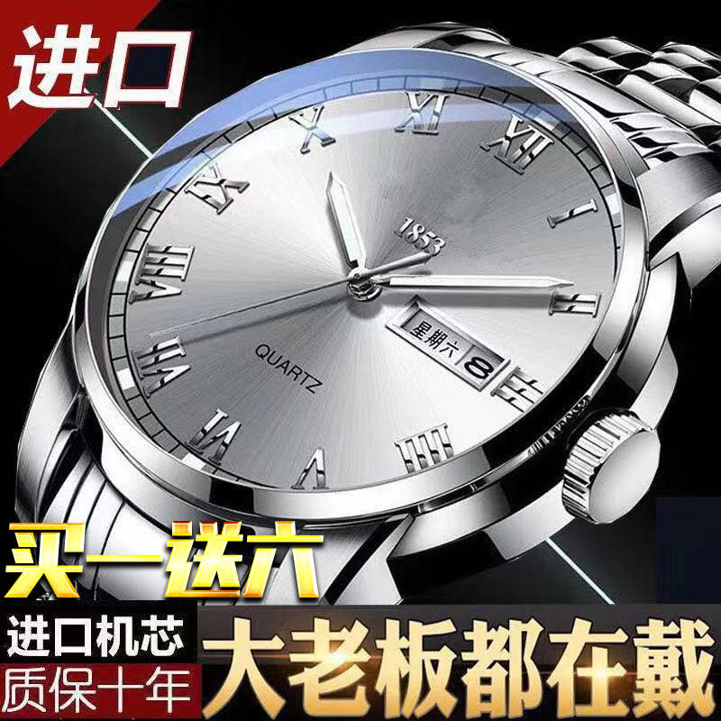 Механические мужские часы, кварцевые часы из нержавеющей стали, модный трендовый стальной ремешок, водонепроницаемый календарь, в корейском стиле