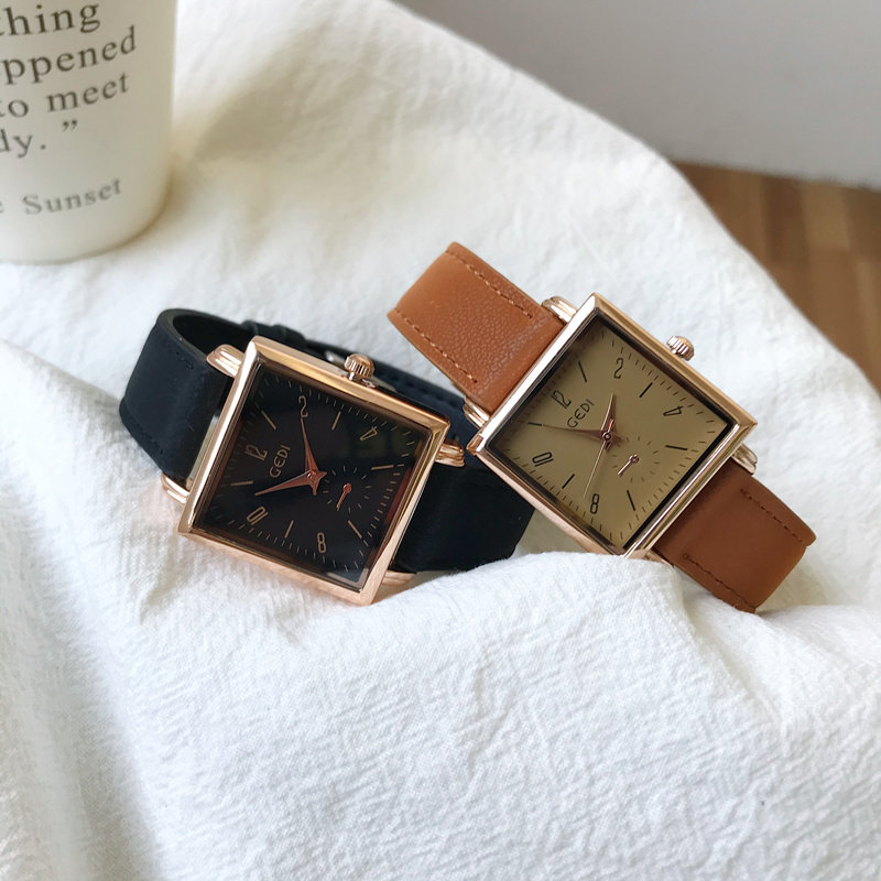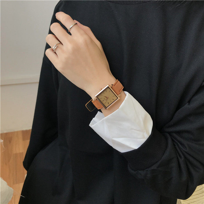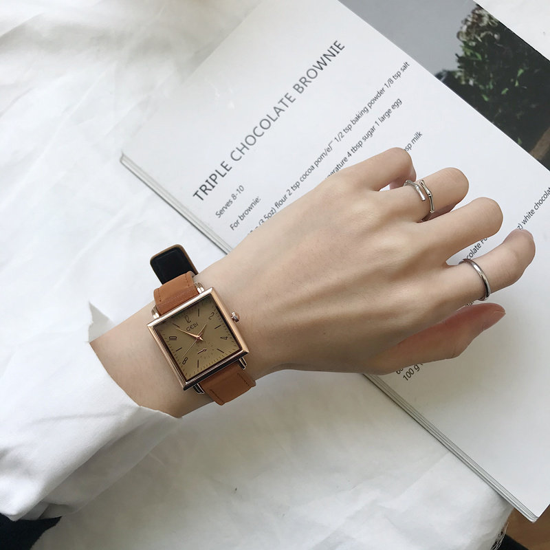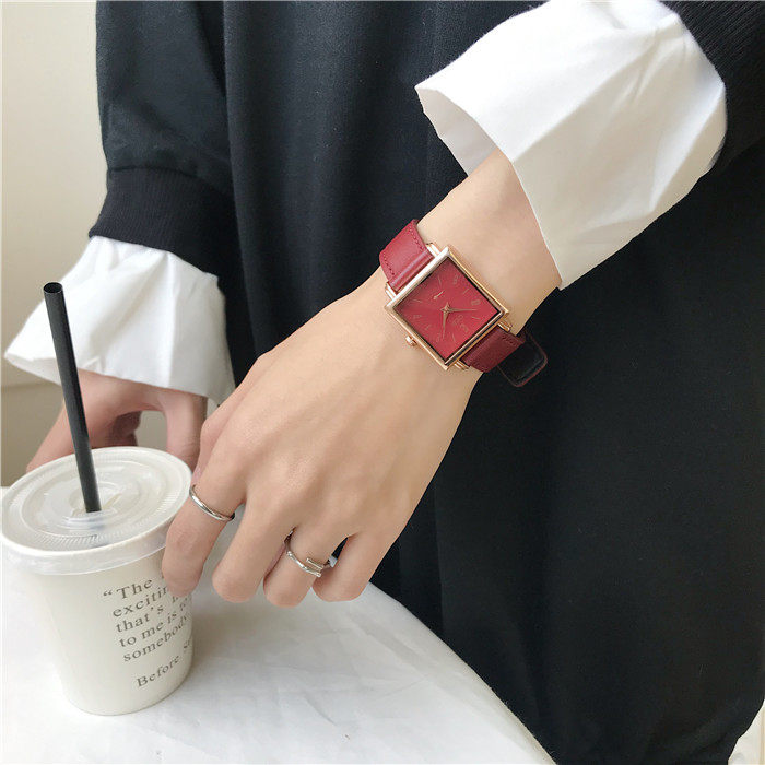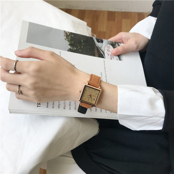 Трендовый кварцевый ретро квадратный брендовый модный ремень, женские часы, простой и элегантный дизайн, популярно в интернете, яркий броский стиль