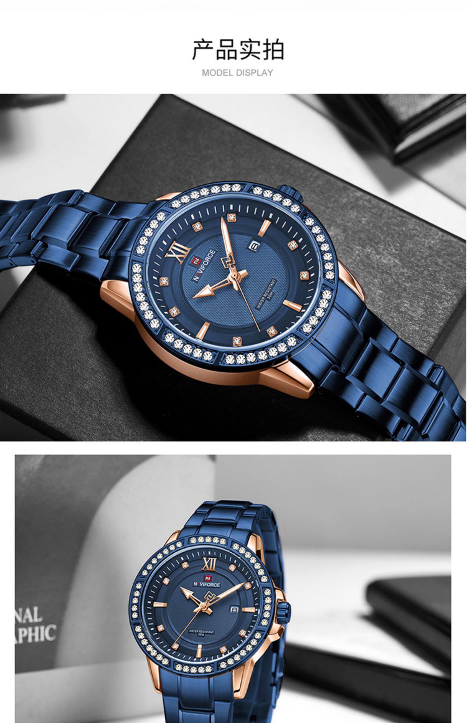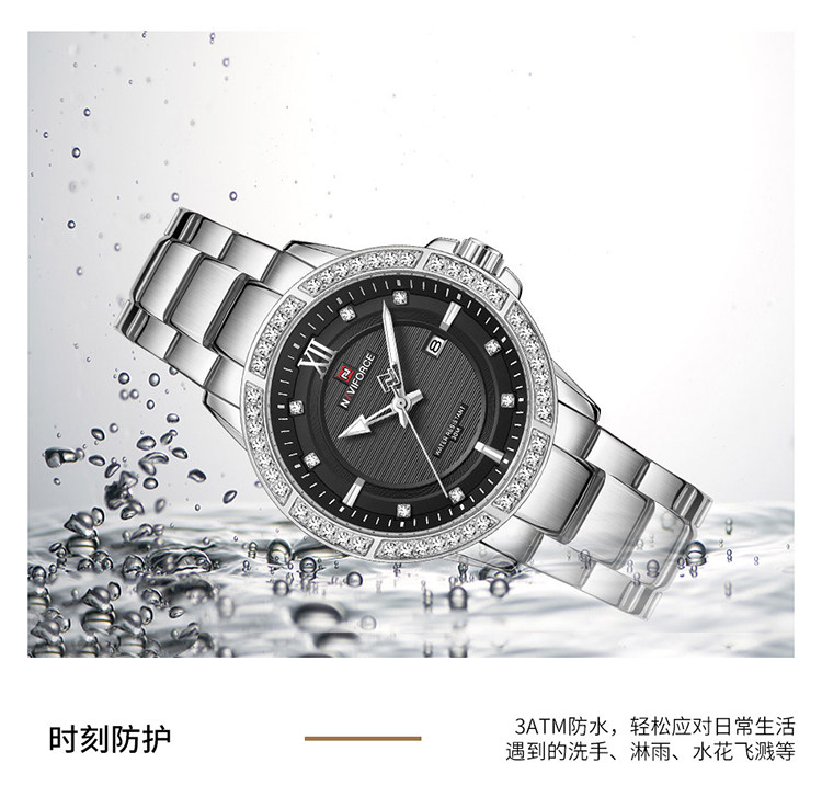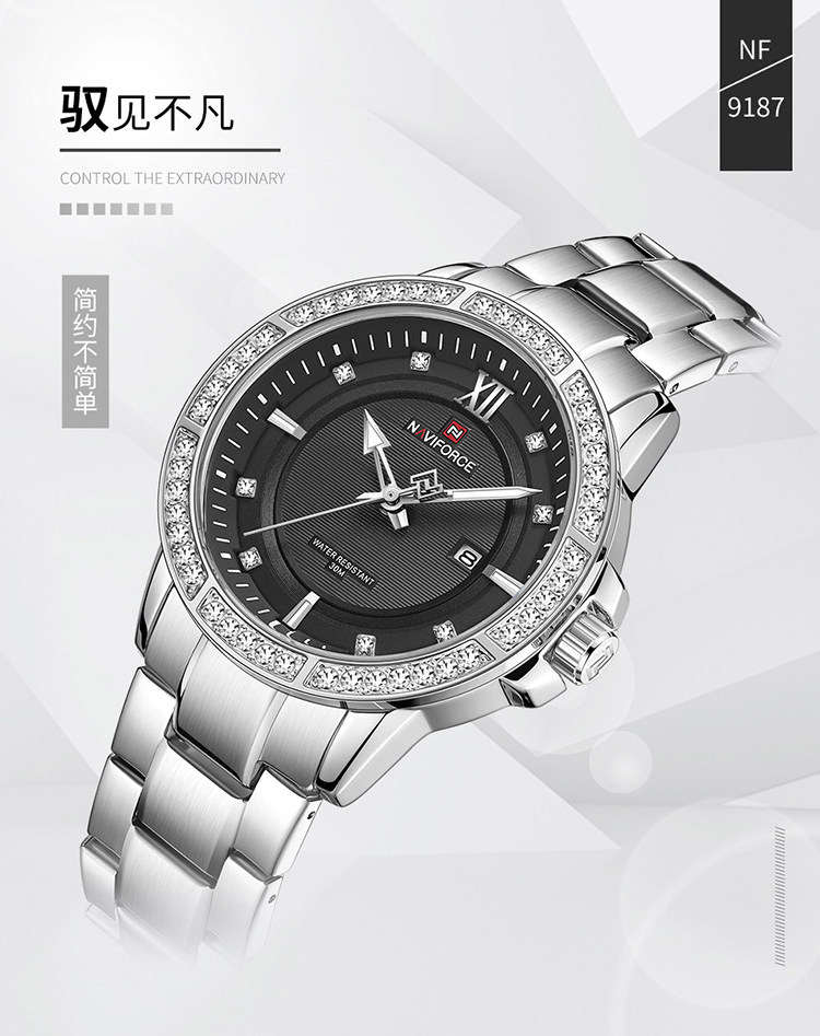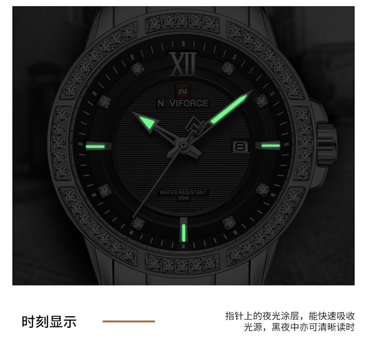 Naviforce Lingxiang 9187 Новая бриллиантовая мода Men's Watch Waterpronation Nights Lumin Dial