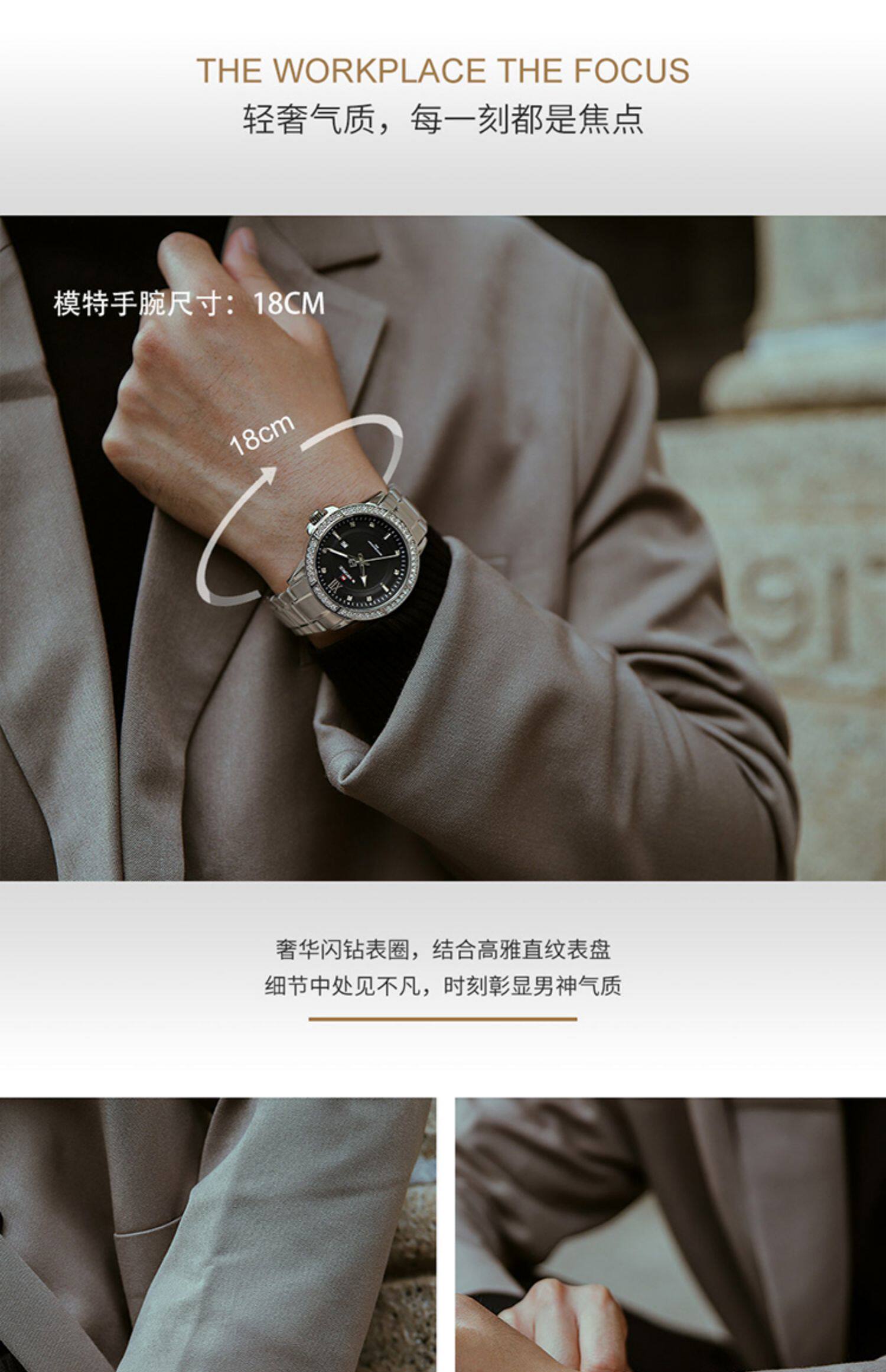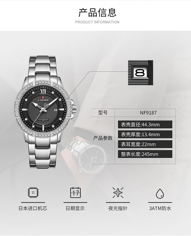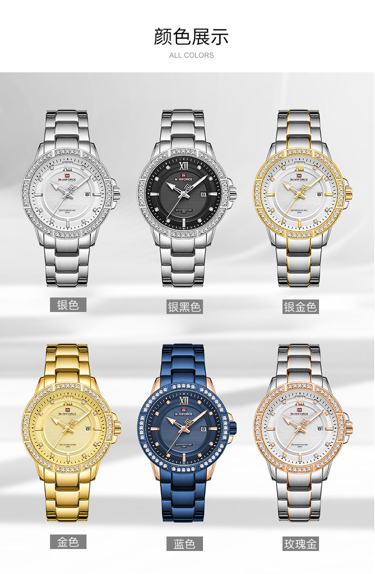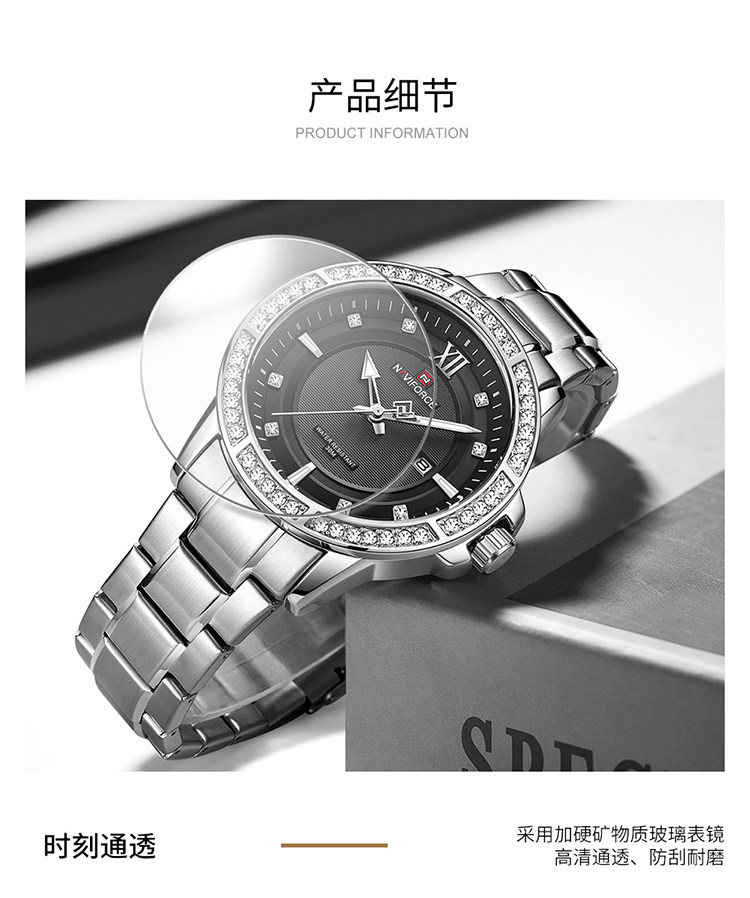 Naviforce Lingxiang 9187 Новая бриллиантовая мода Men's Watch Waterpronation Nights Lumin Dial