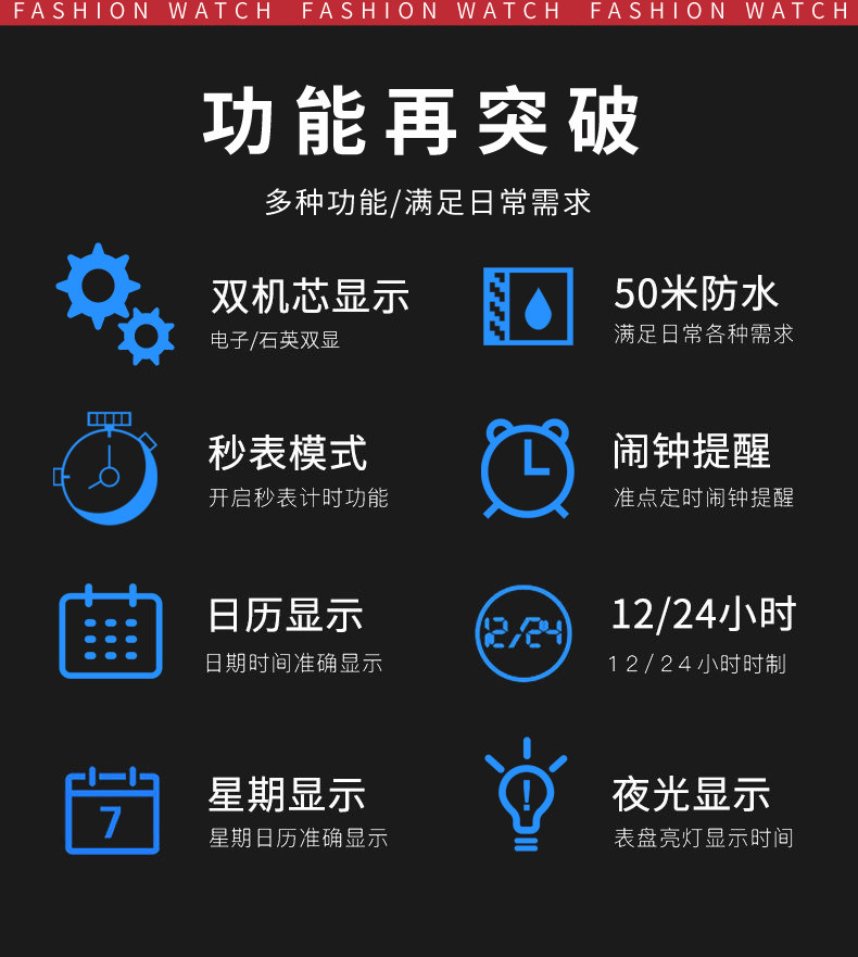 Универсальные трендовые водонепроницаемые цифровые часы