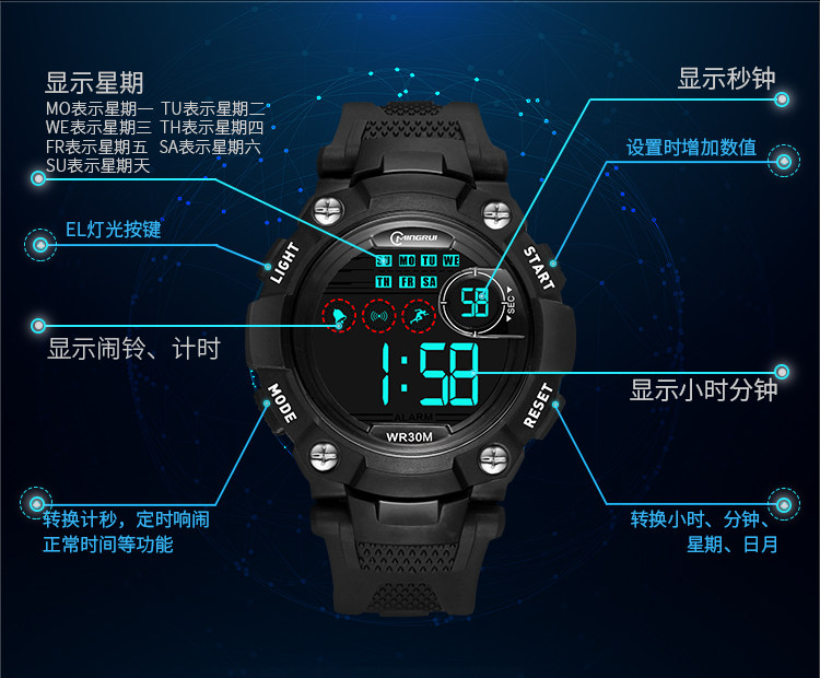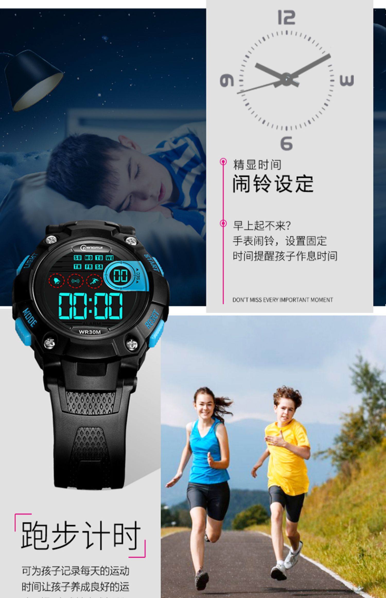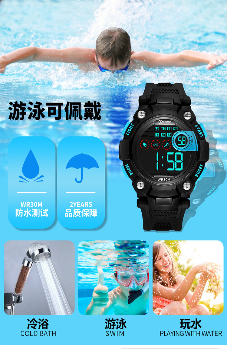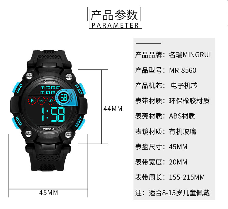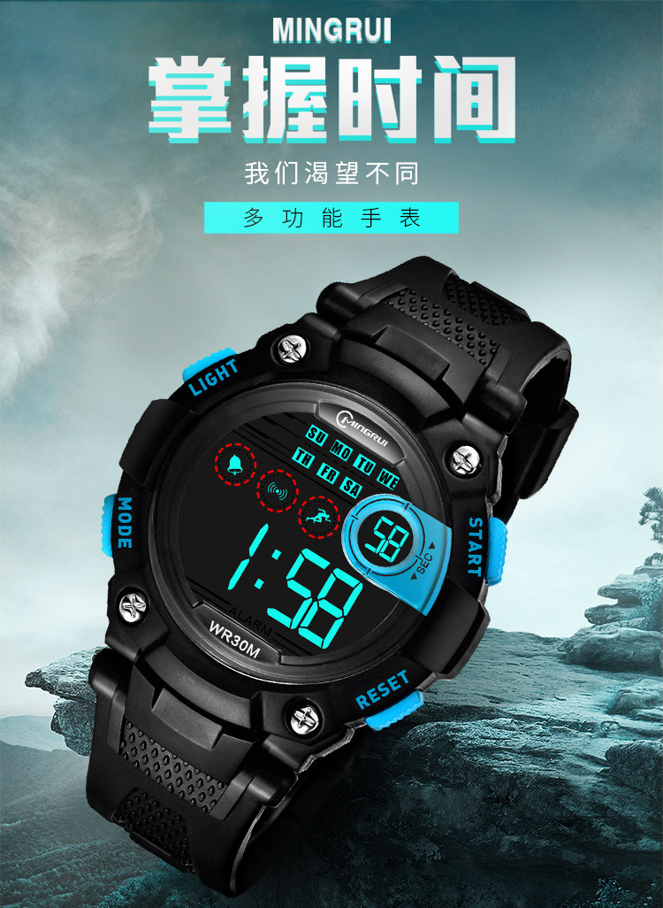 名瑞 Детские часы для мальчиков, мужские часы, водонепроницаемые универсальные цифровые часы