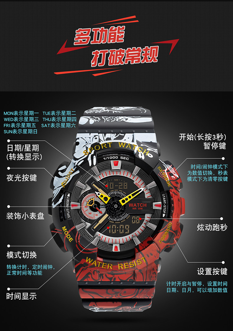 Dragon Ball, электронные трендовые водонепроницаемые мужские часы подходит для мужчин и женщин