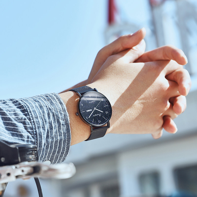 Звездное небо, водонепроницаемые мужские часы для школьников, трендовые механические ультратонкие японские минималистичные кварцевые часы, подходит для подростков