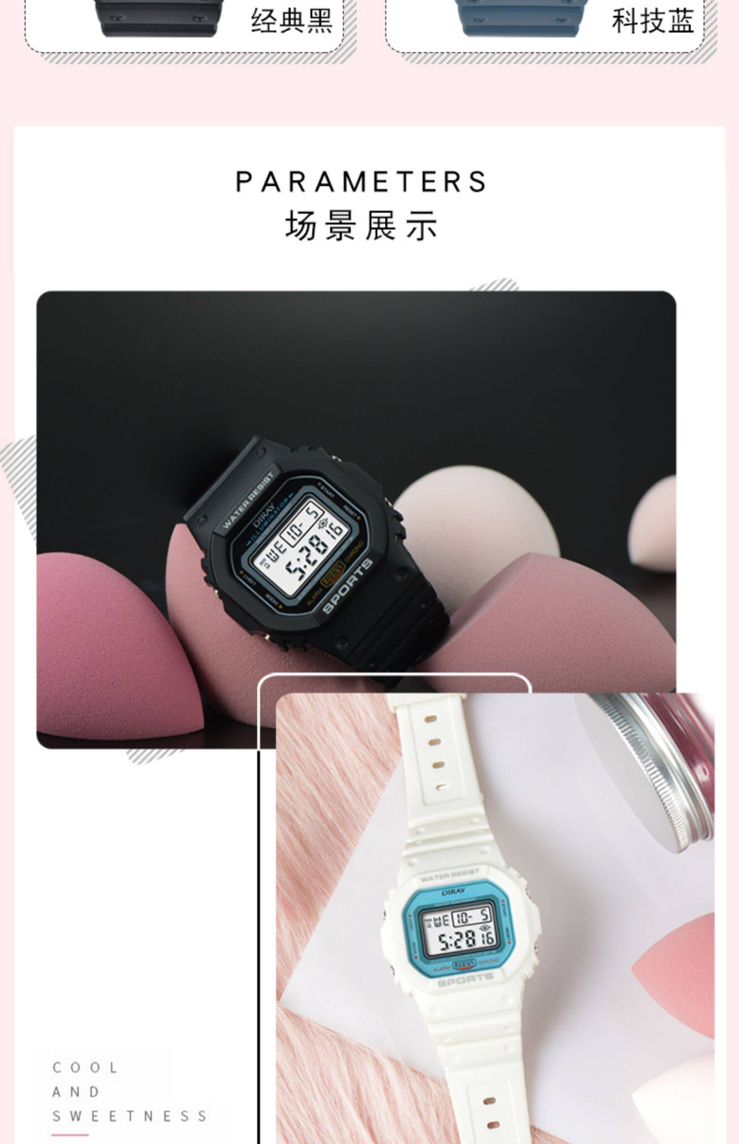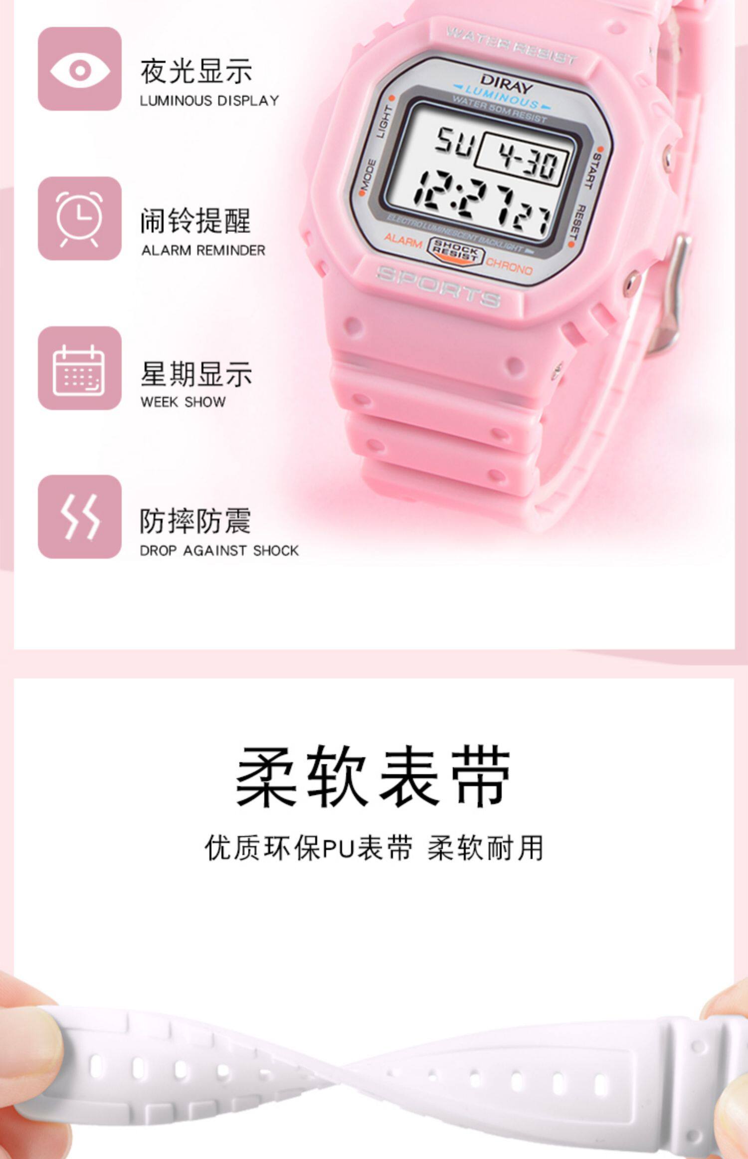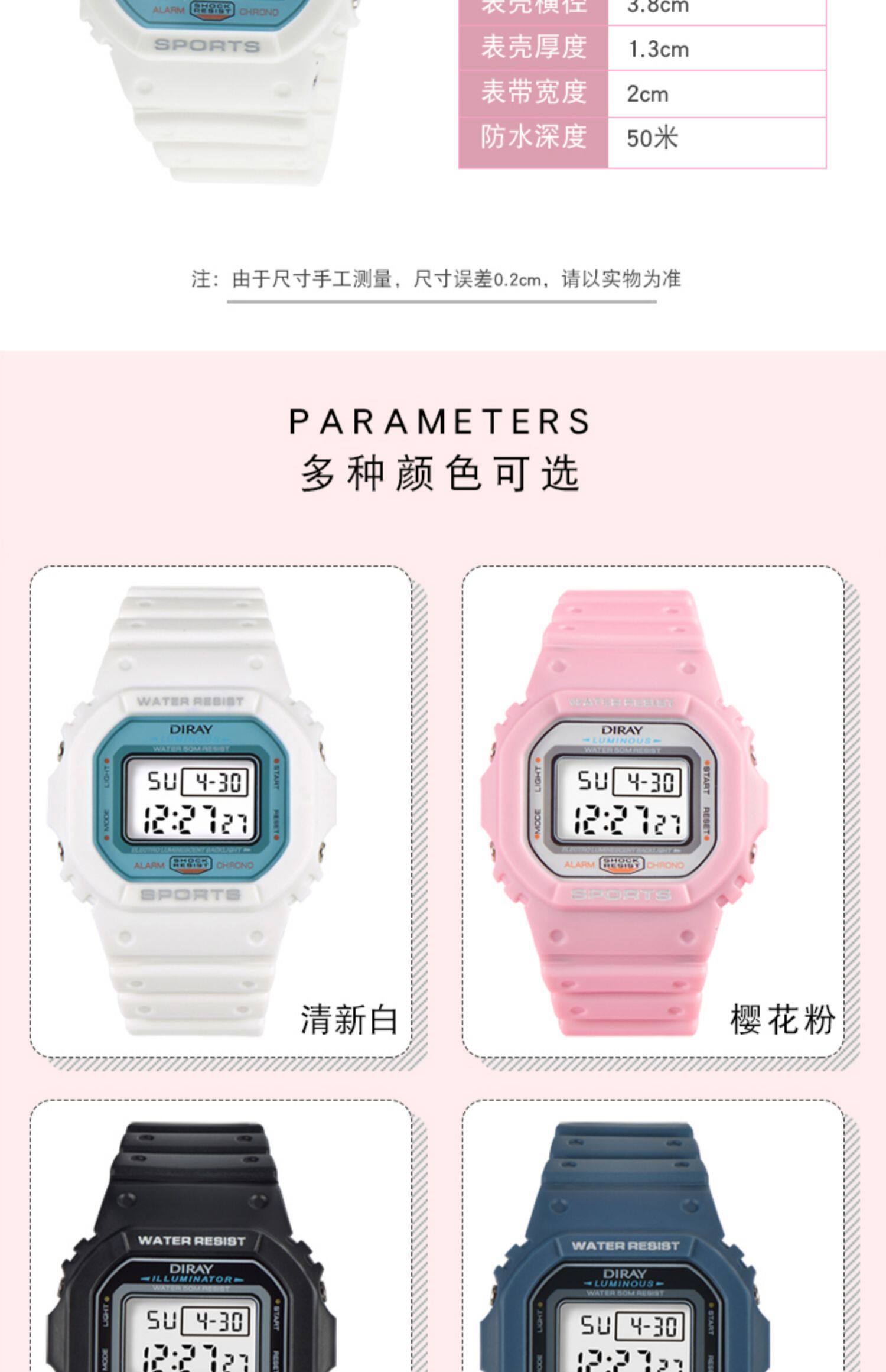 Электронные квадратные водонепроницаемые универсальные часы для плавания, в корейском стиле