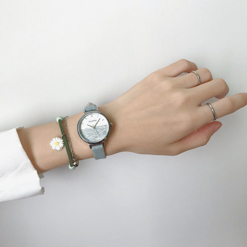 Свежие брендовые часы, простой и элегантный дизайн, из натуральной кожи, в корейском стиле, легкий роскошный стиль