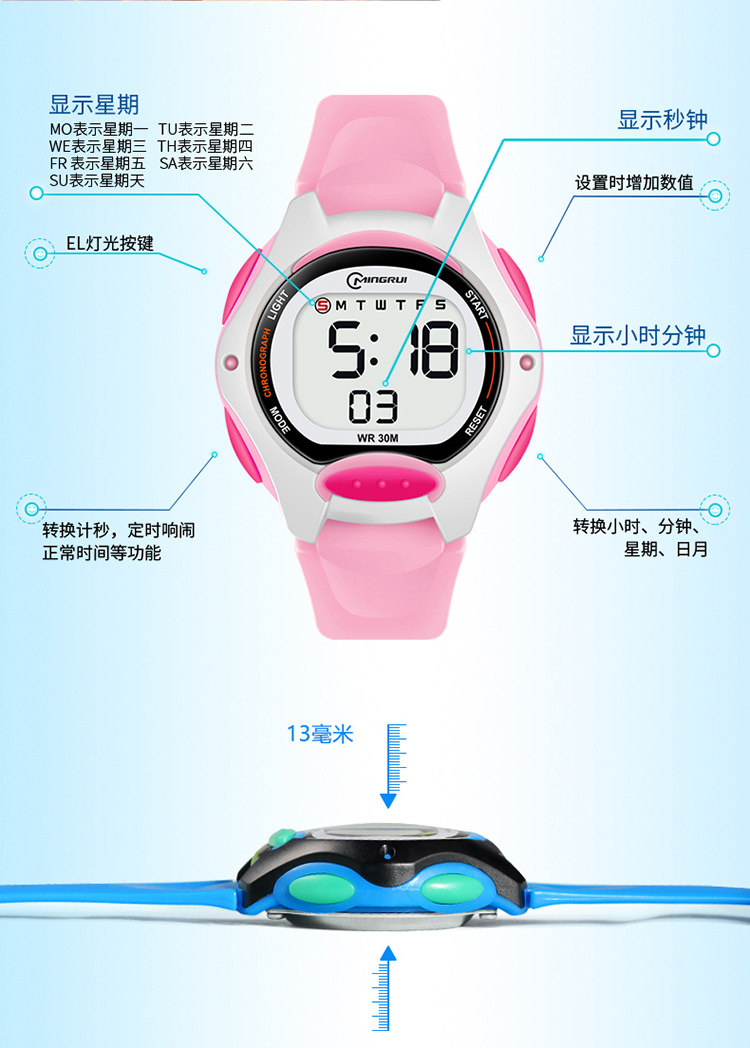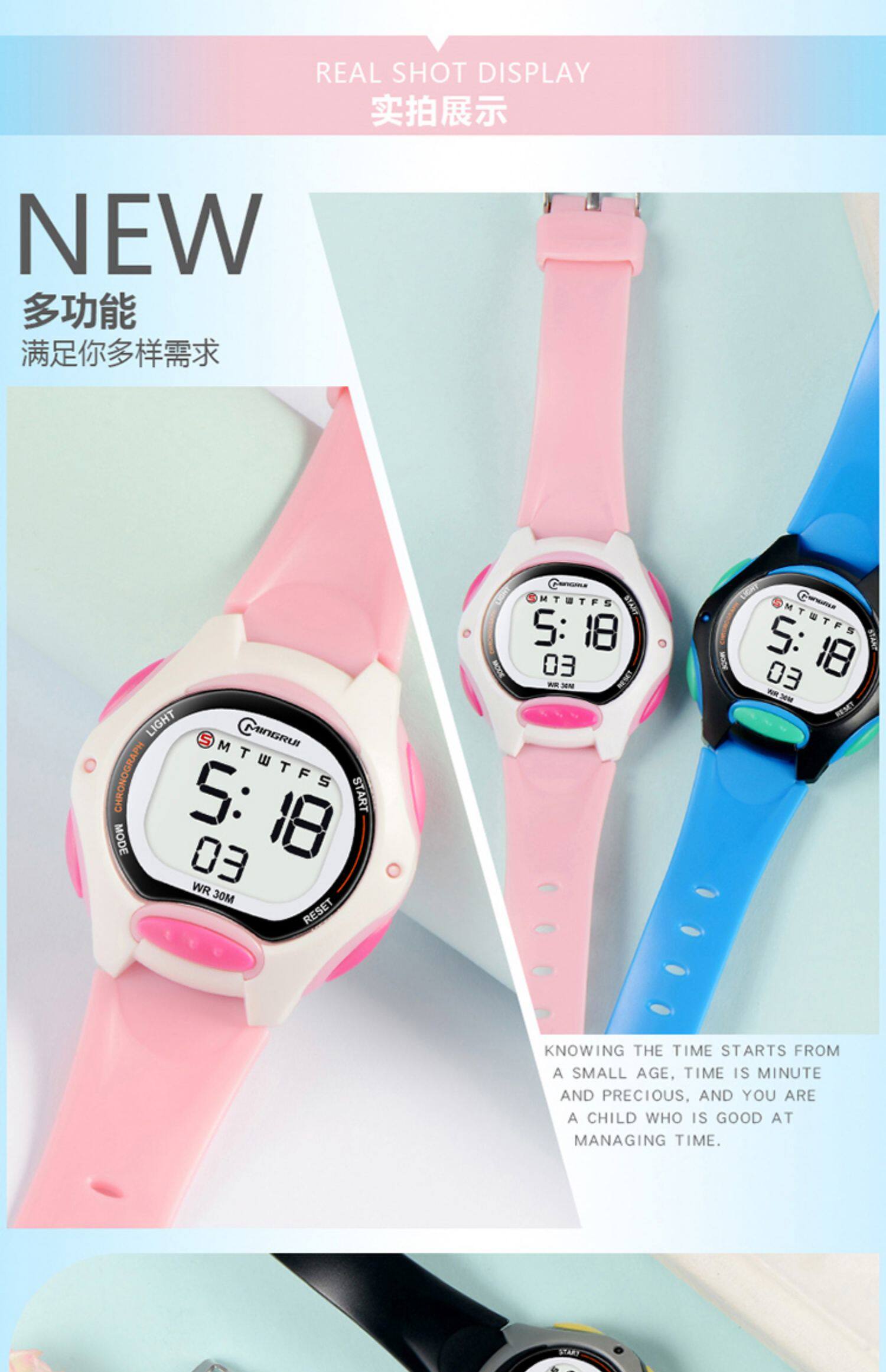 名瑞 Детские водонепроницаемые цифровые часы для мальчиков, с LED дисплеем