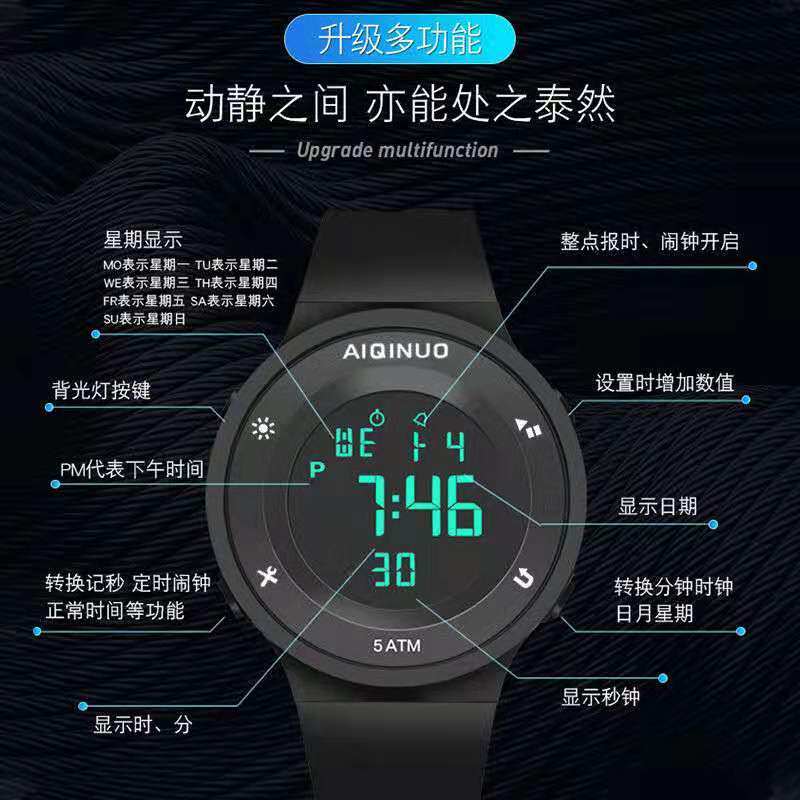 Водонепроницаемые цифровые часы подходит для мужчин и женщин для плавания, универсальный браслет для взрослых, 50м, для средней школы, подходит для подростков