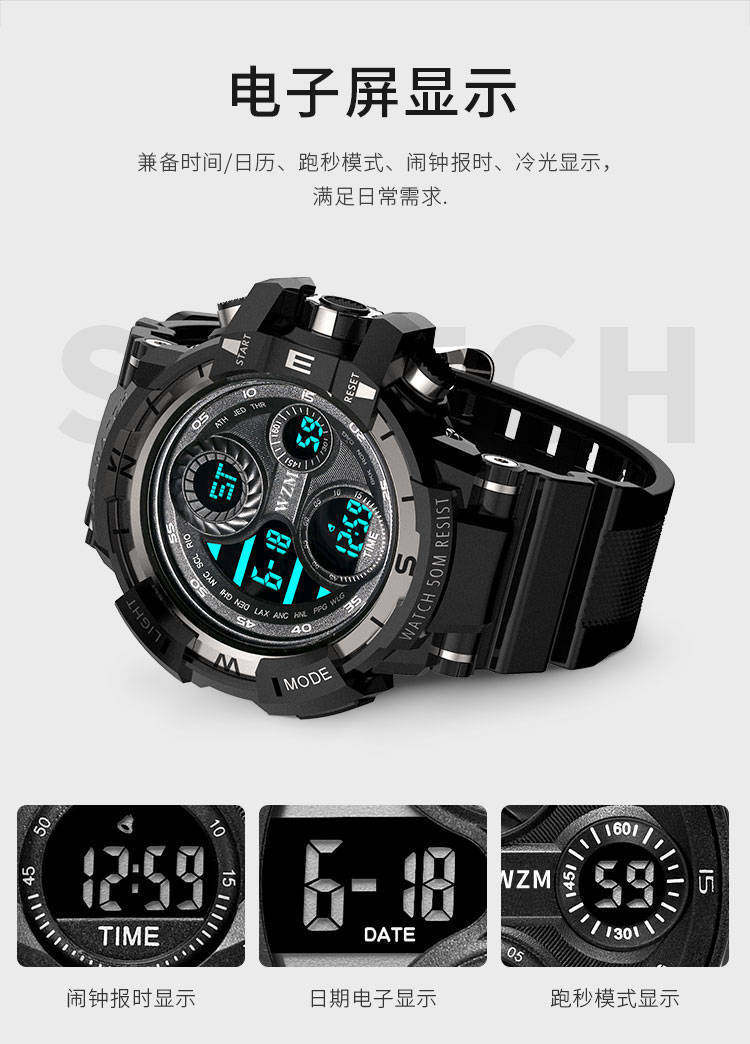 Мужские часы, детские трендовые цифровые часы для мальчиков, водонепроницаемые спортивные механические механические часы, для средней школы, подходит для подростков