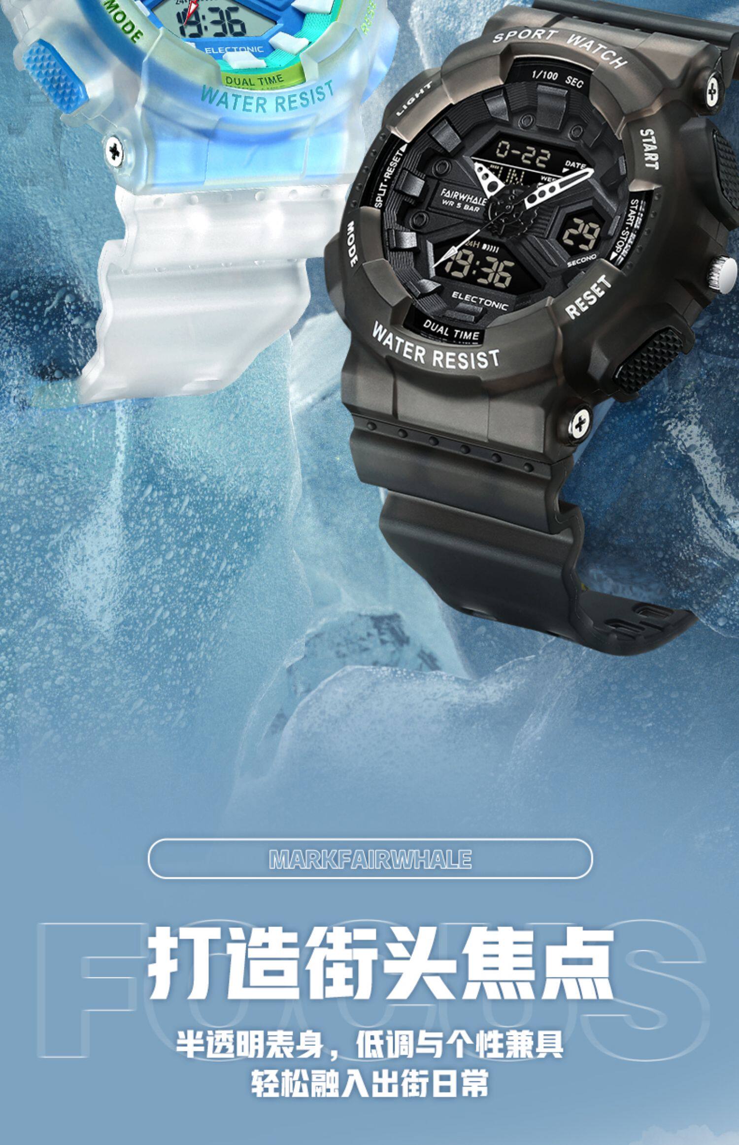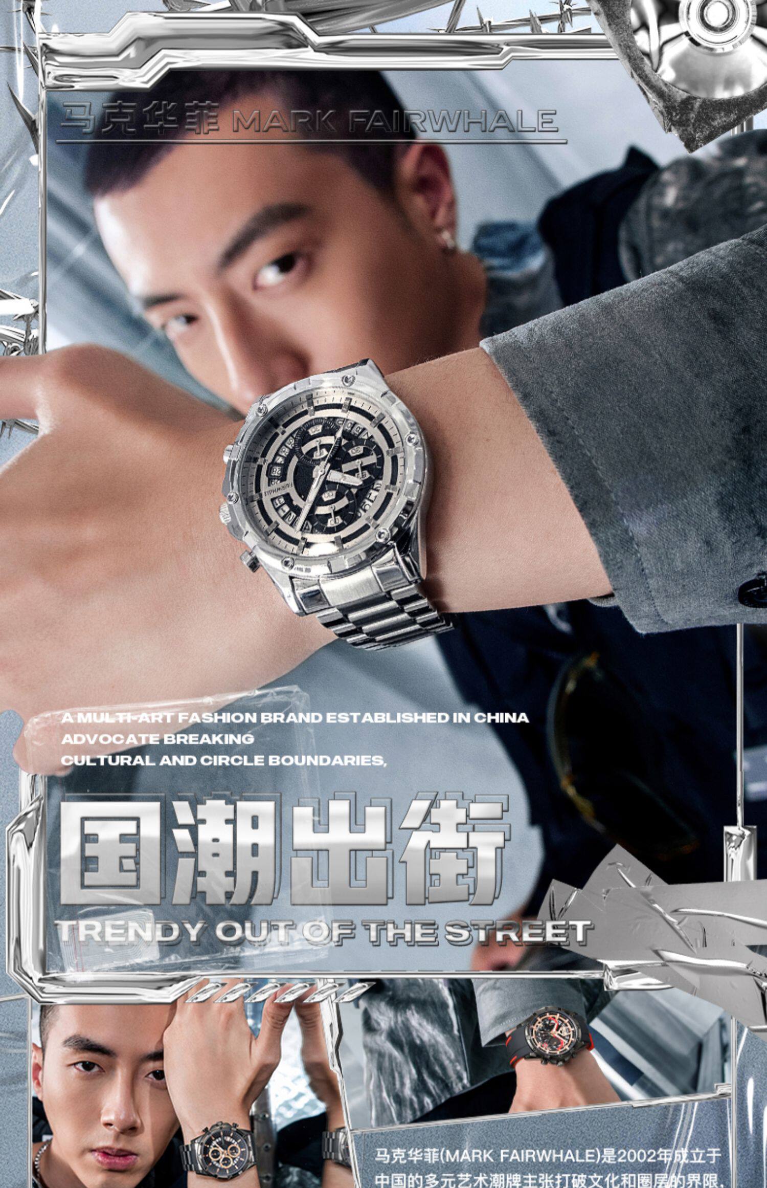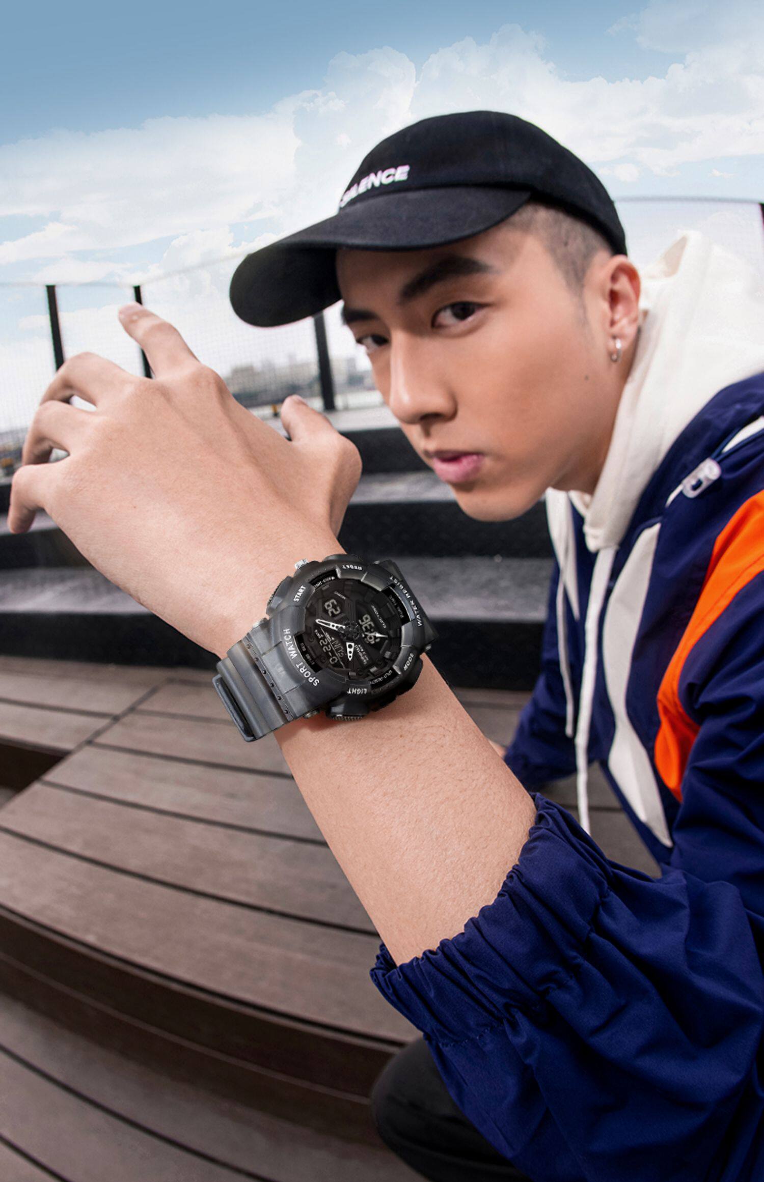 Мужские часы, трендовые спортивные водонепроницаемые кварцевые часы, полностью автоматический