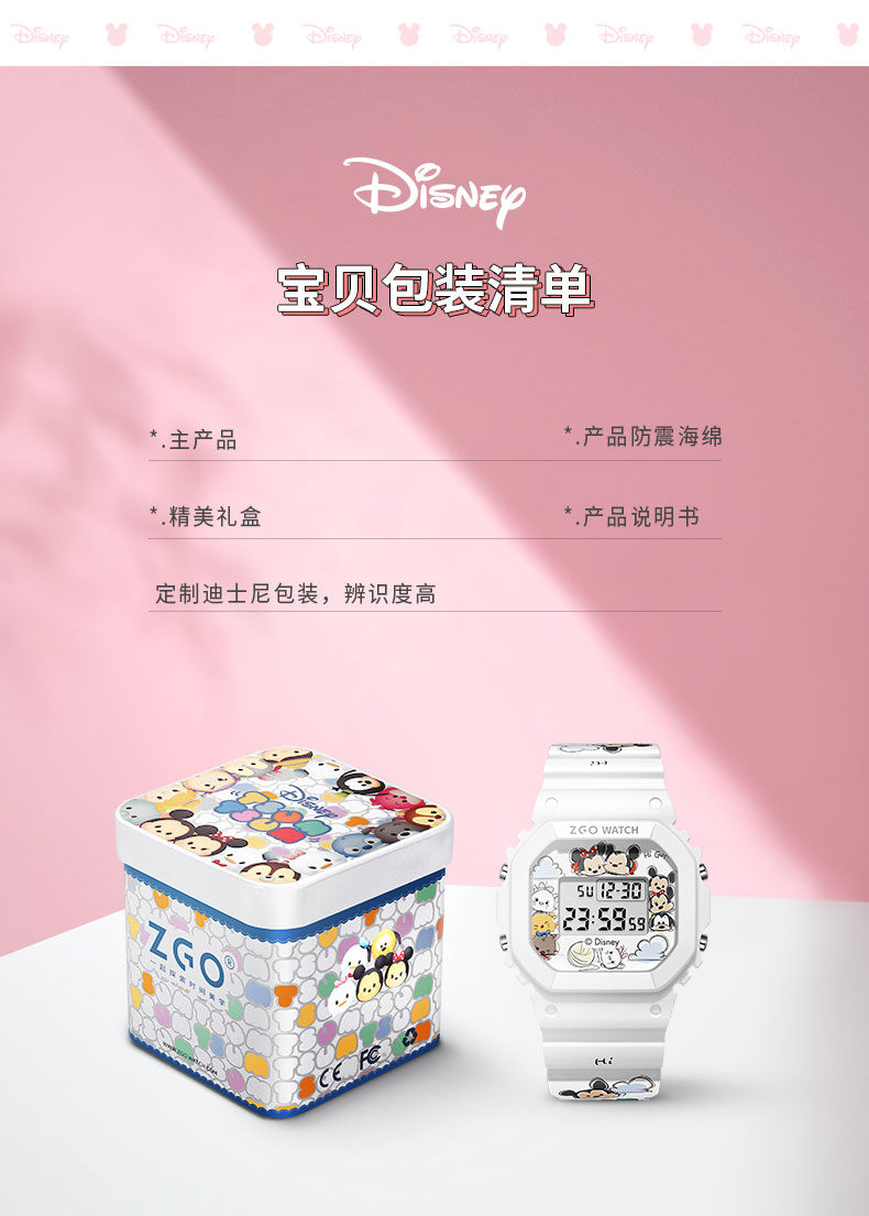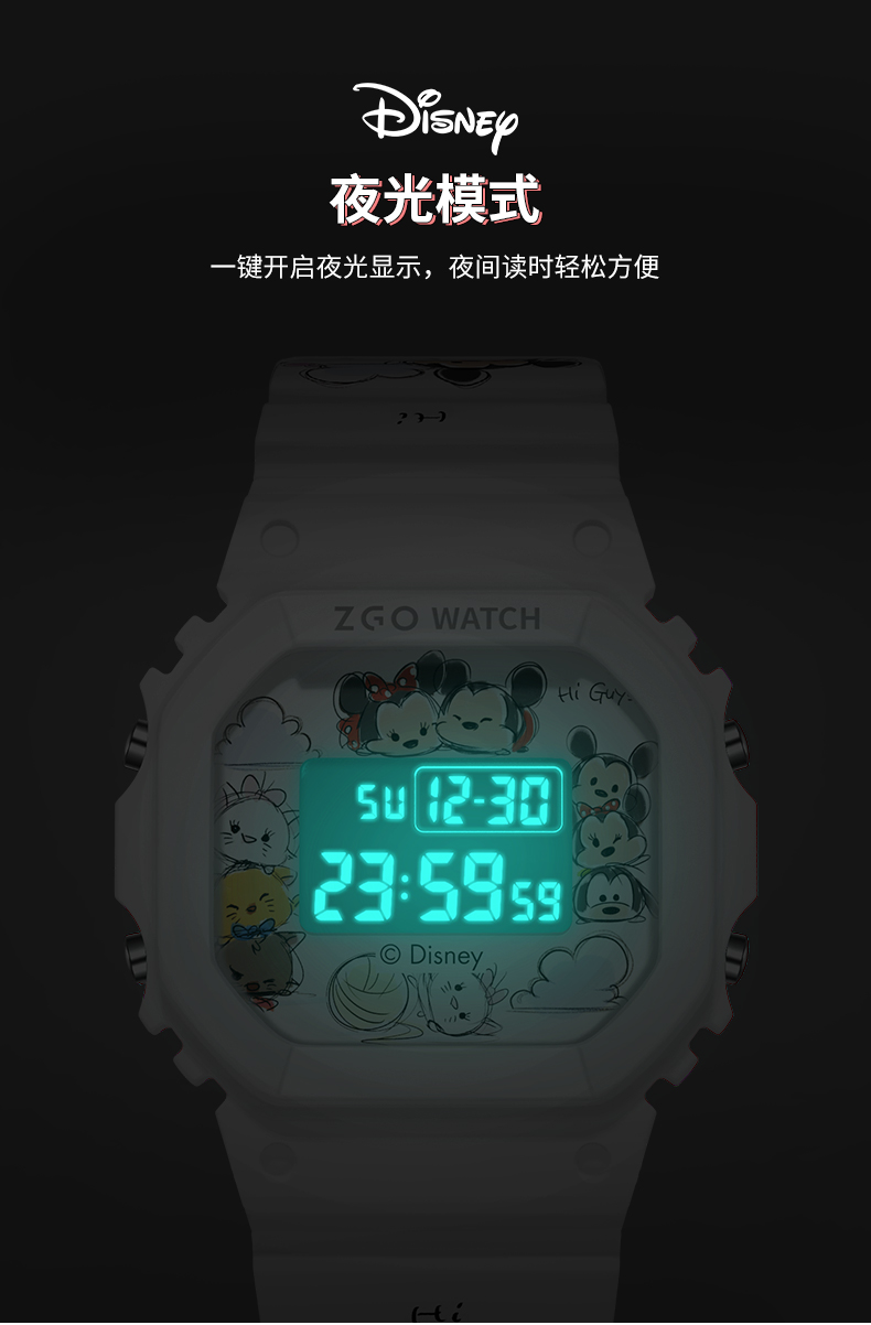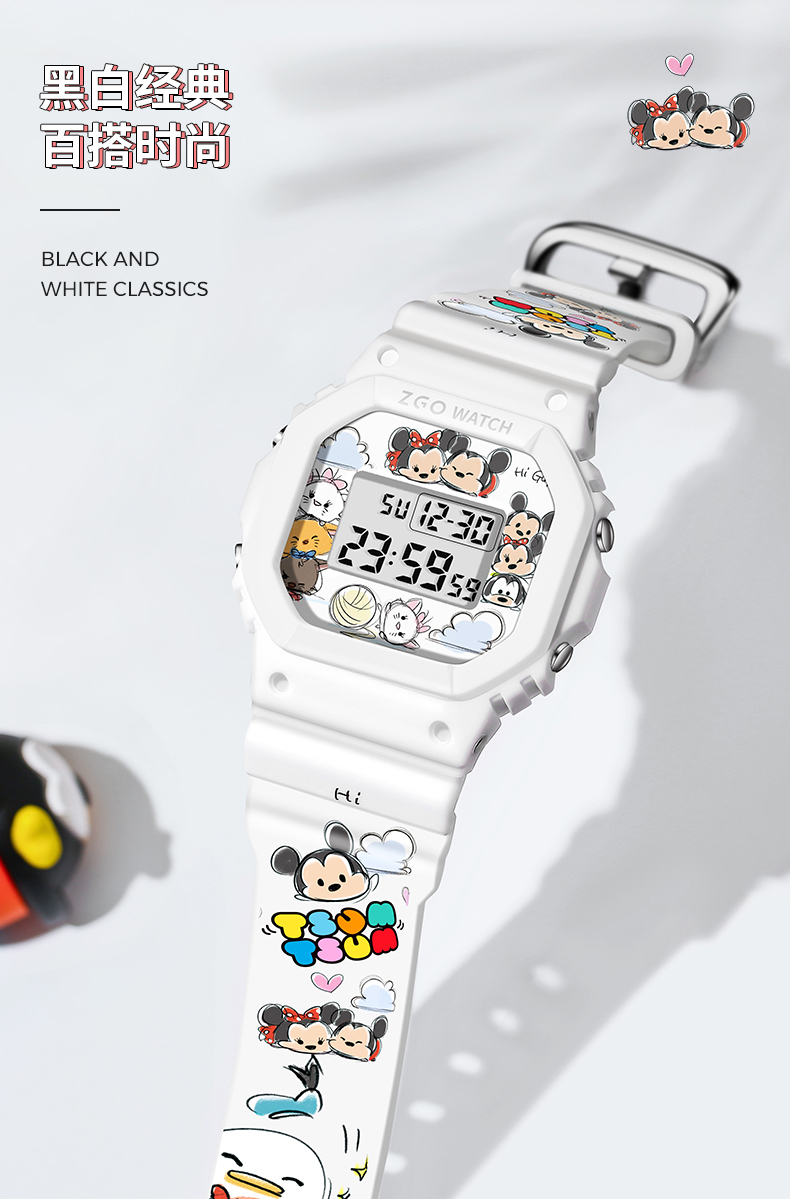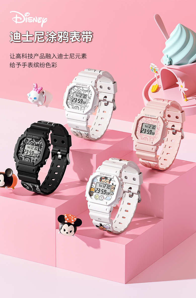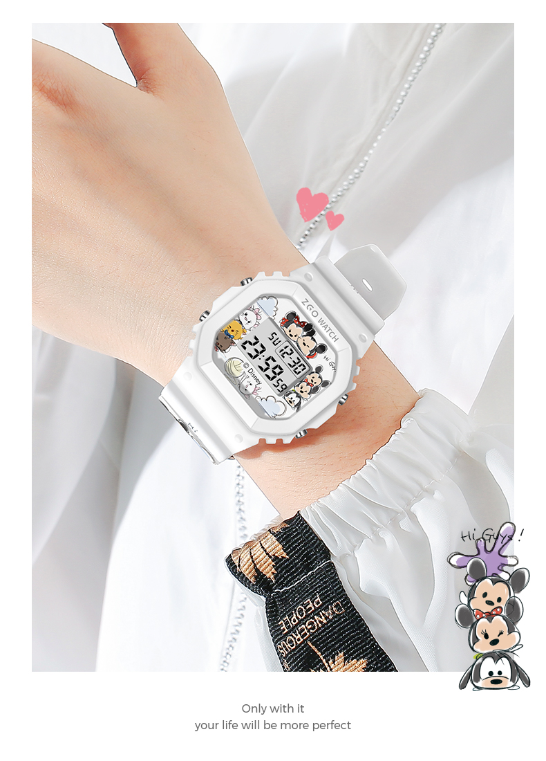 Дисней, трендовые водонепроницаемые цифровые часы, простой и элегантный дизайн