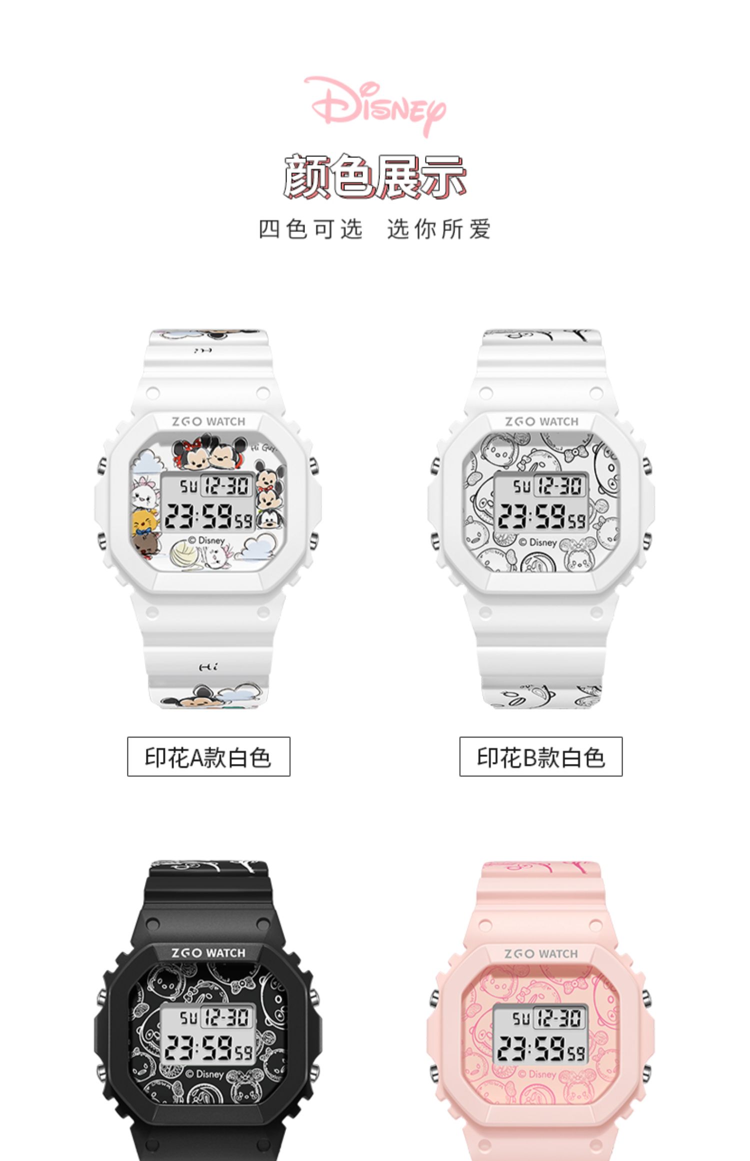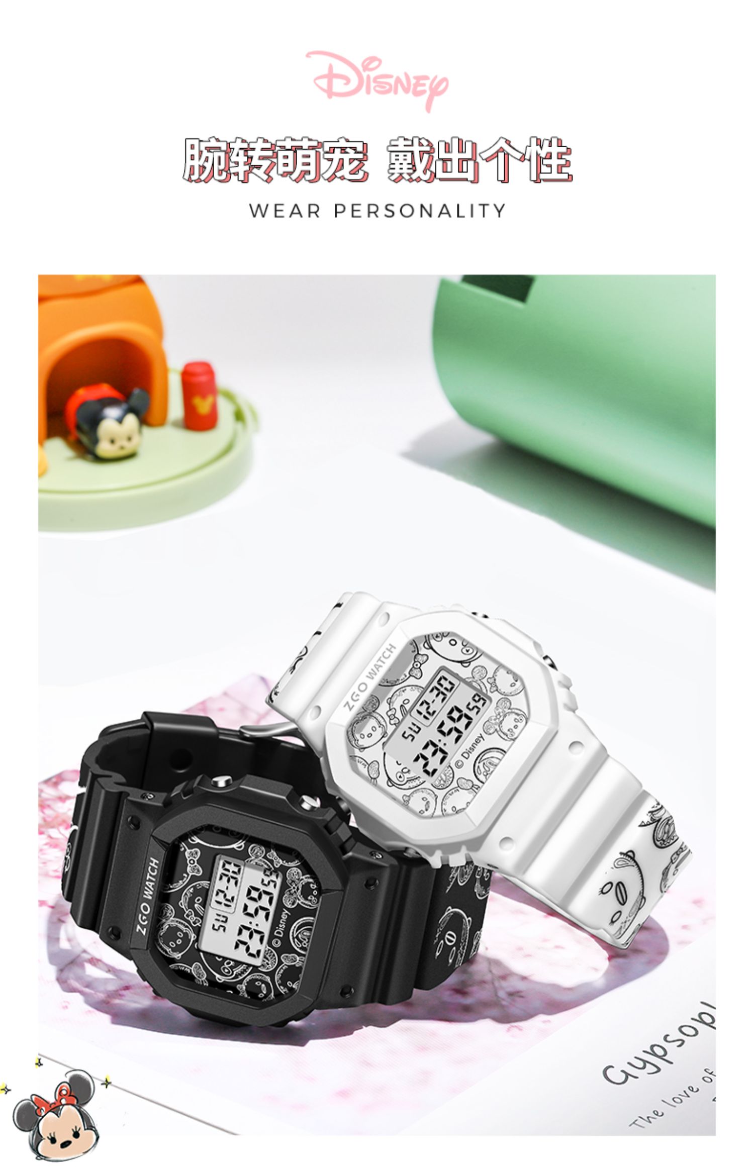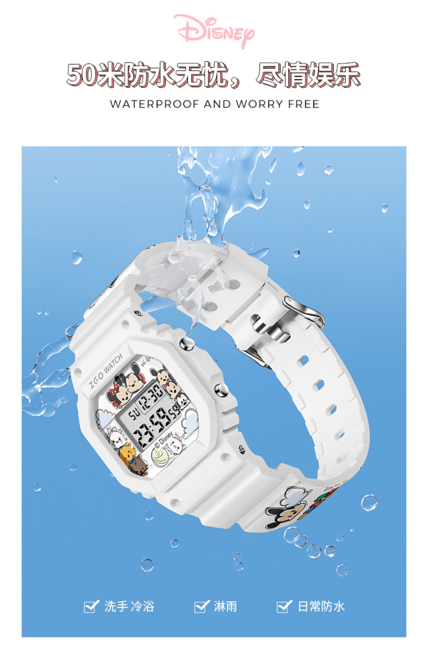 Дисней, трендовые водонепроницаемые цифровые часы, простой и элегантный дизайн