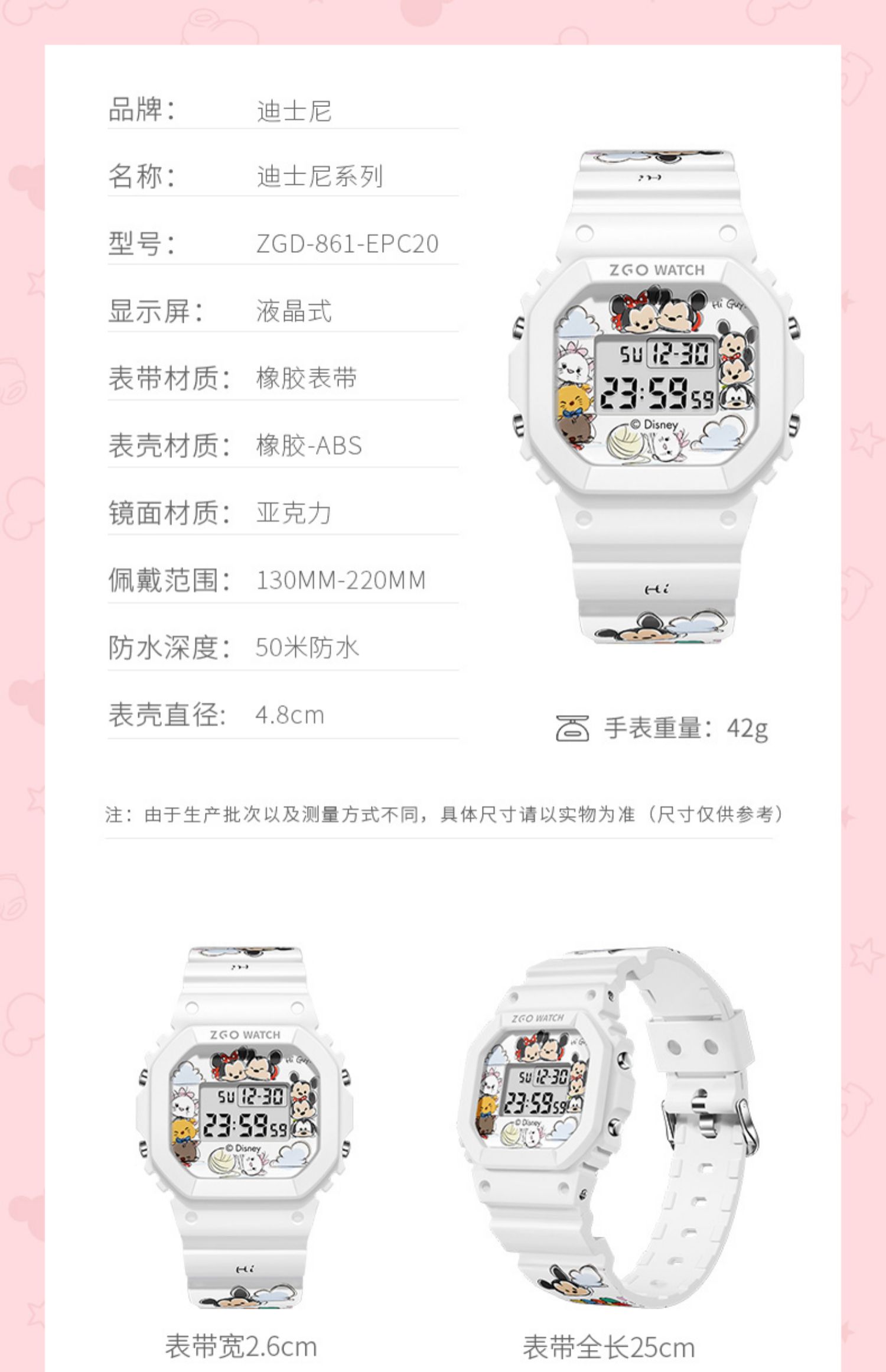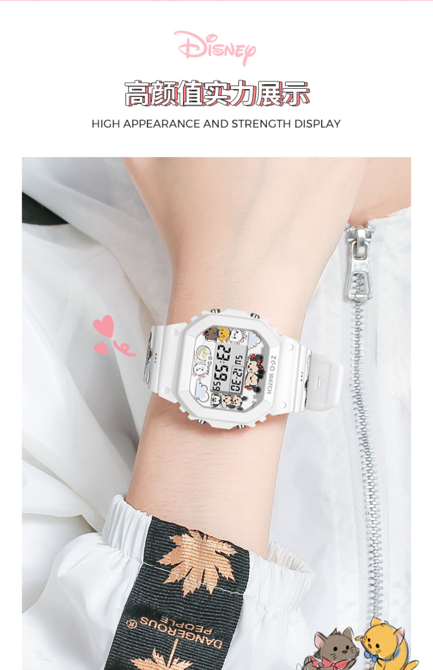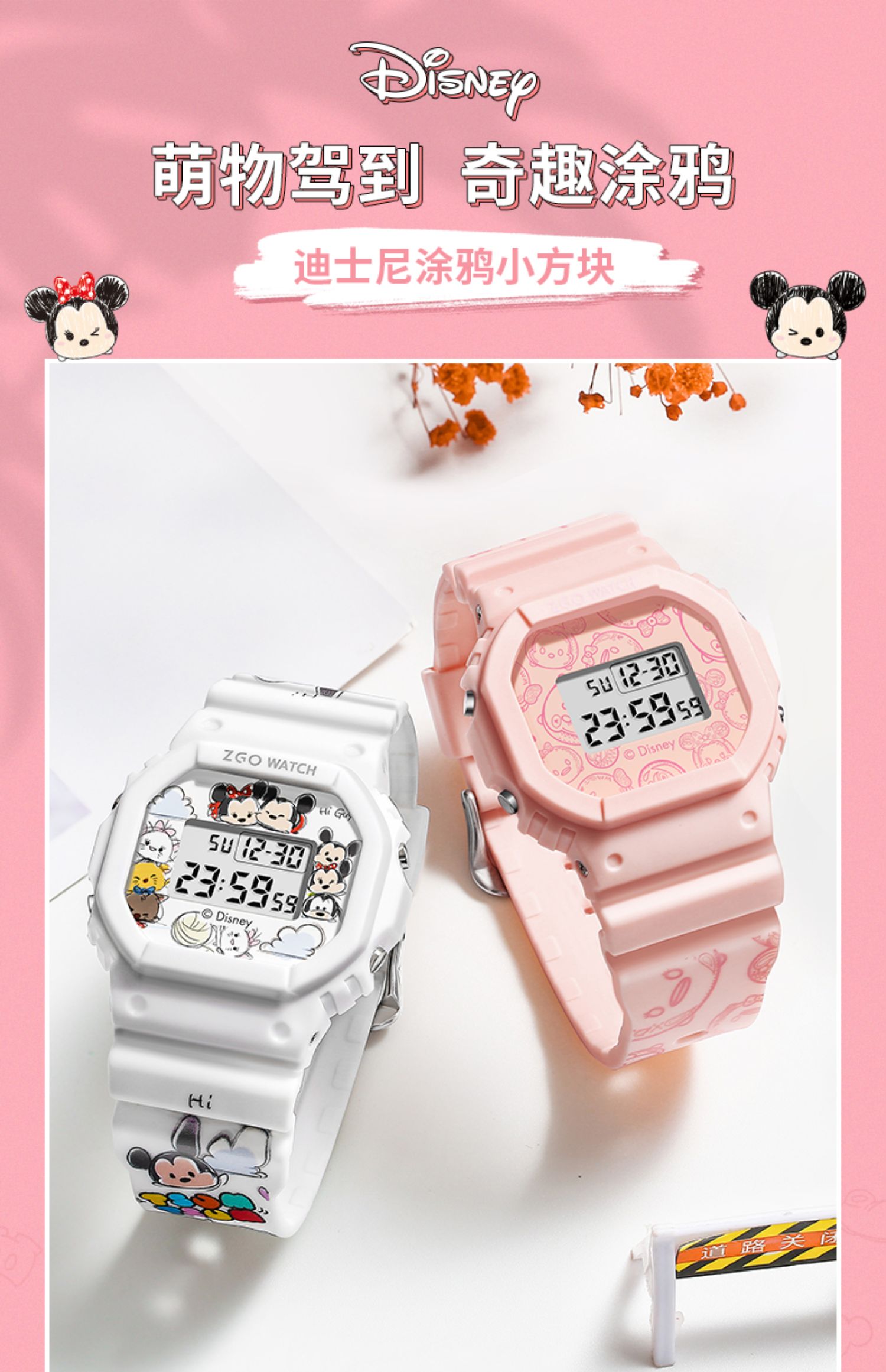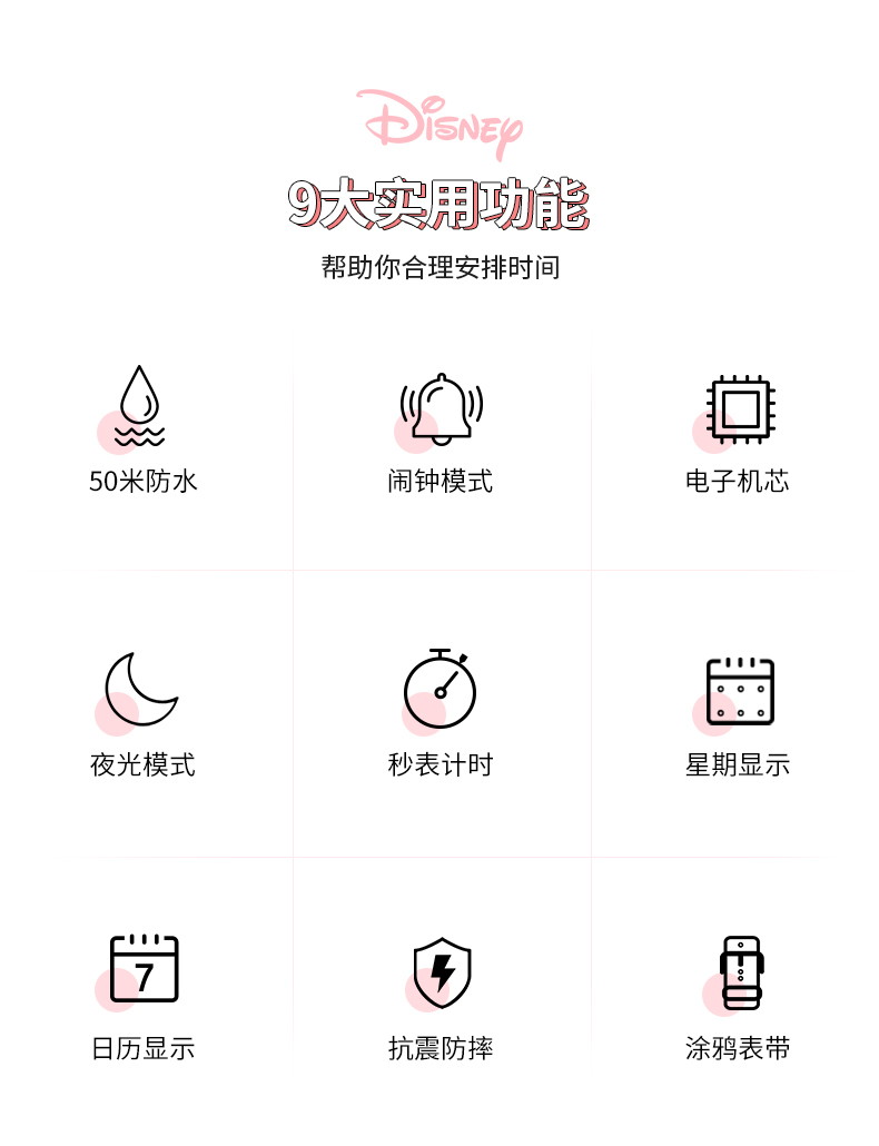 Дисней, трендовые водонепроницаемые цифровые часы, простой и элегантный дизайн