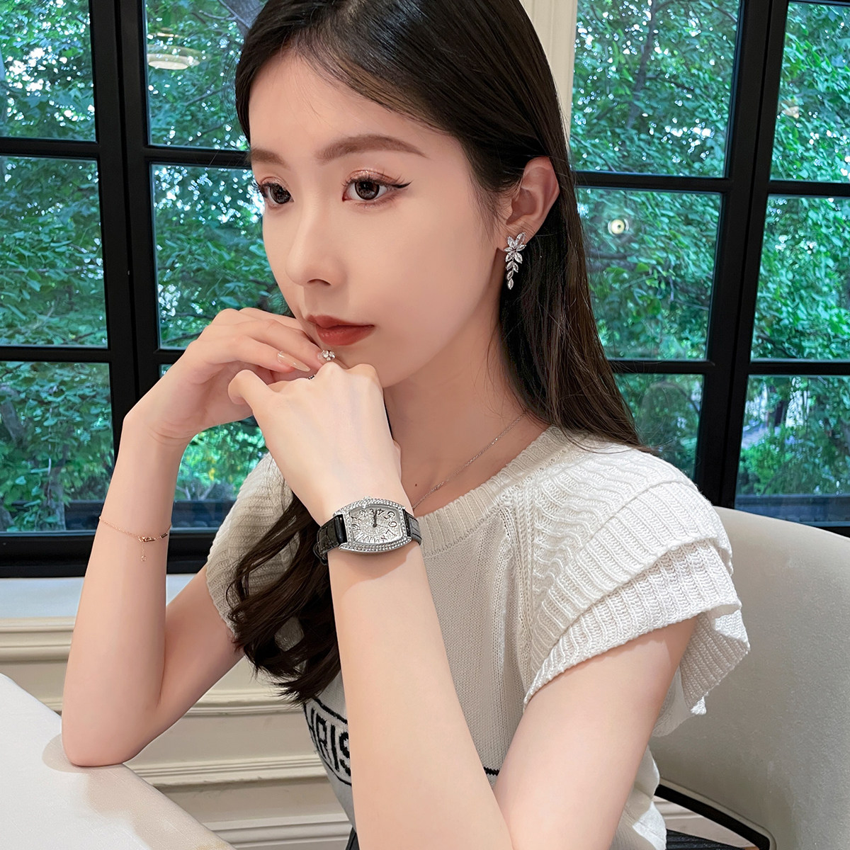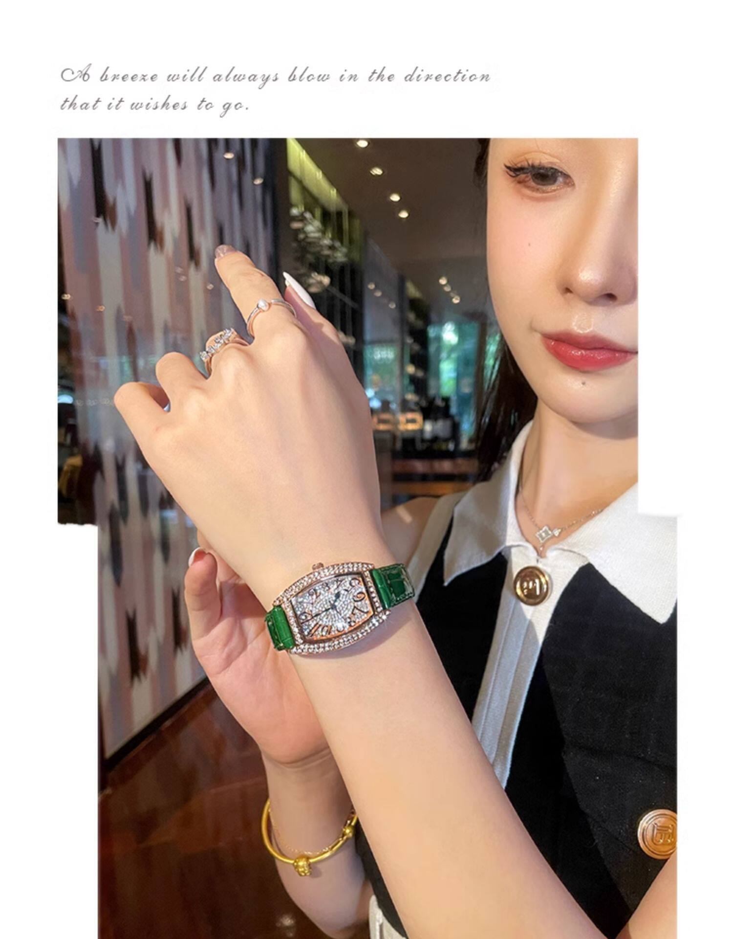 Механические механические часы, инкрустировано бриллиантами, легкий роскошный стиль, женский стиль