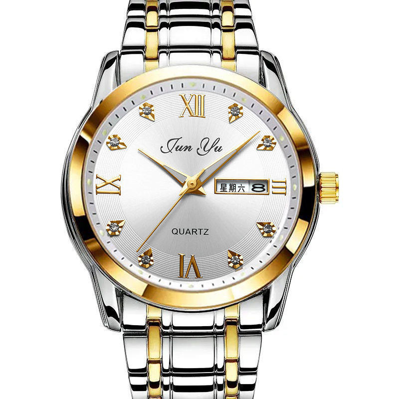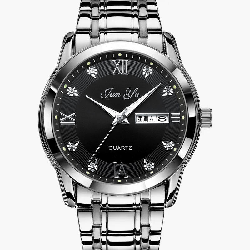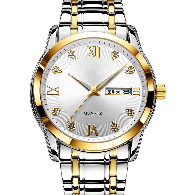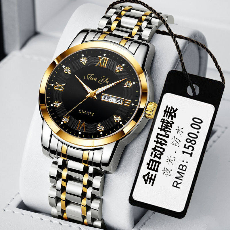 Механические кварцевые мужские часы, мужской водонепроницаемый календарь, стальной ремешок, Швейцария, в корейском стиле, простой и элегантный дизайн
