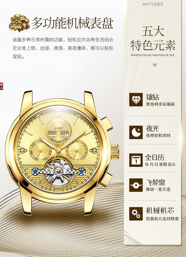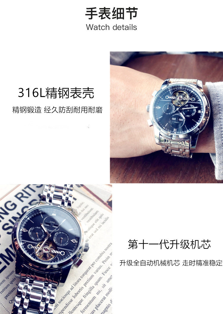 Швейцарские часы, механические мужские часы, водонепроницаемые универсальные механические часы, Швейцария, полностью автоматический