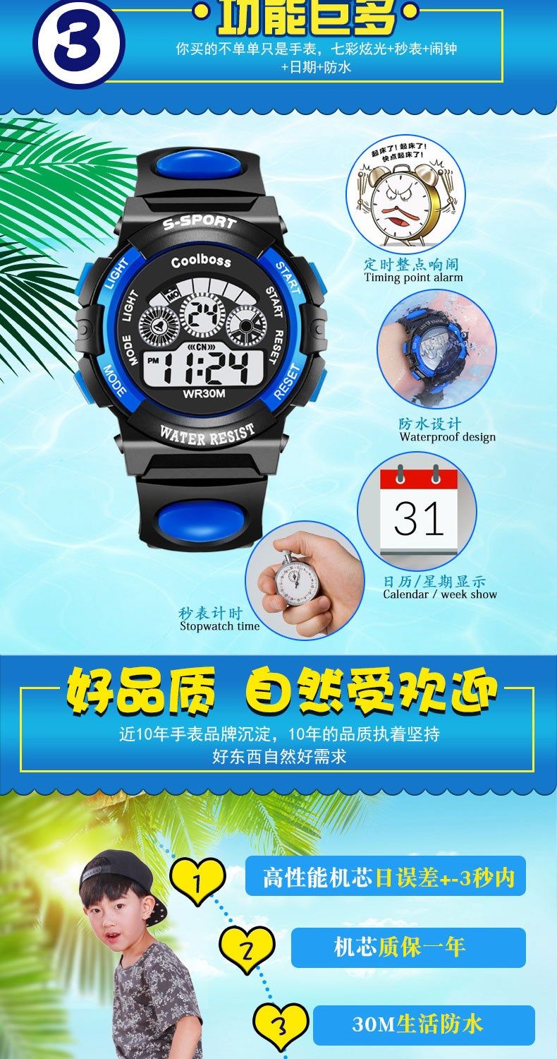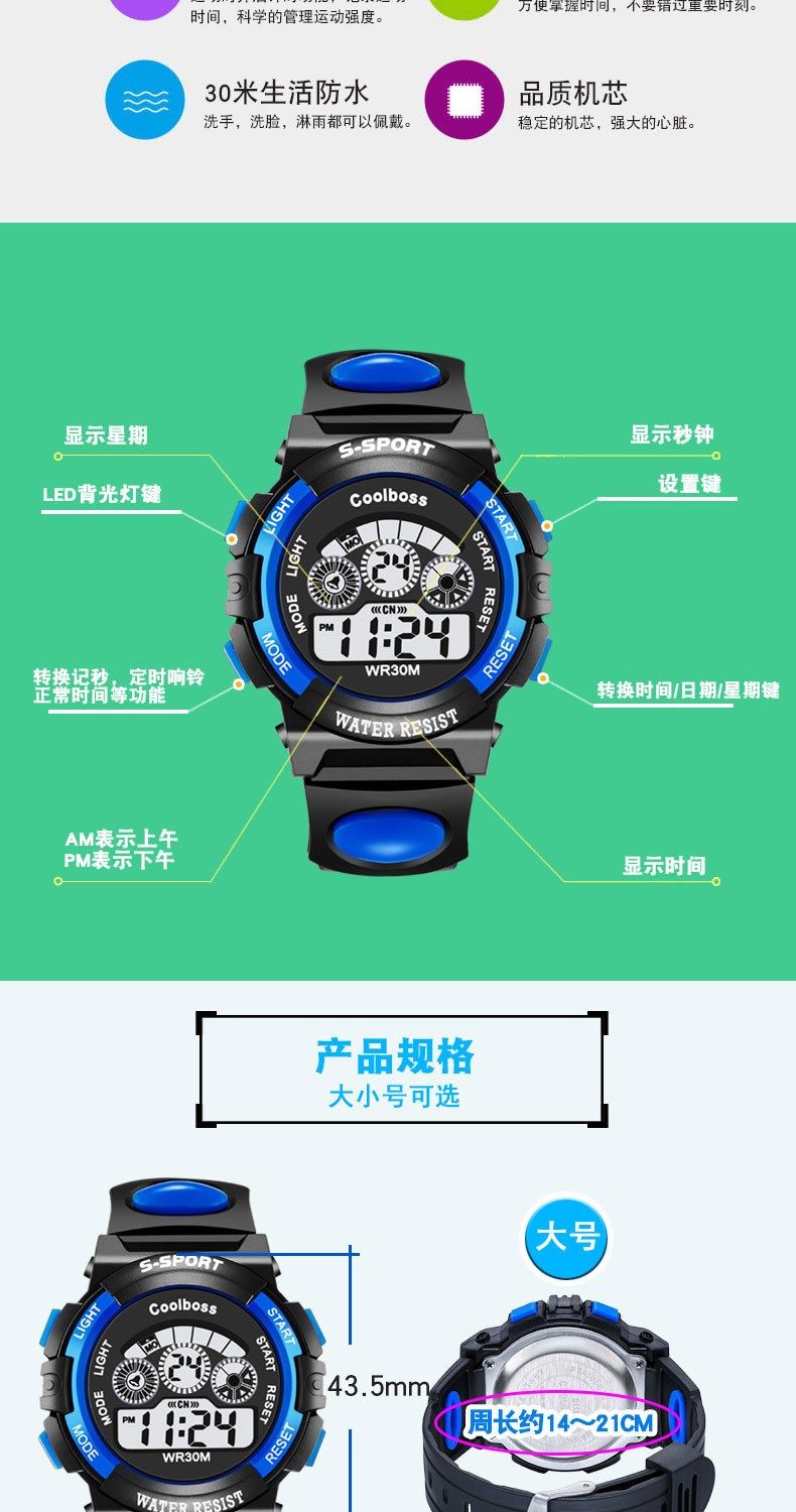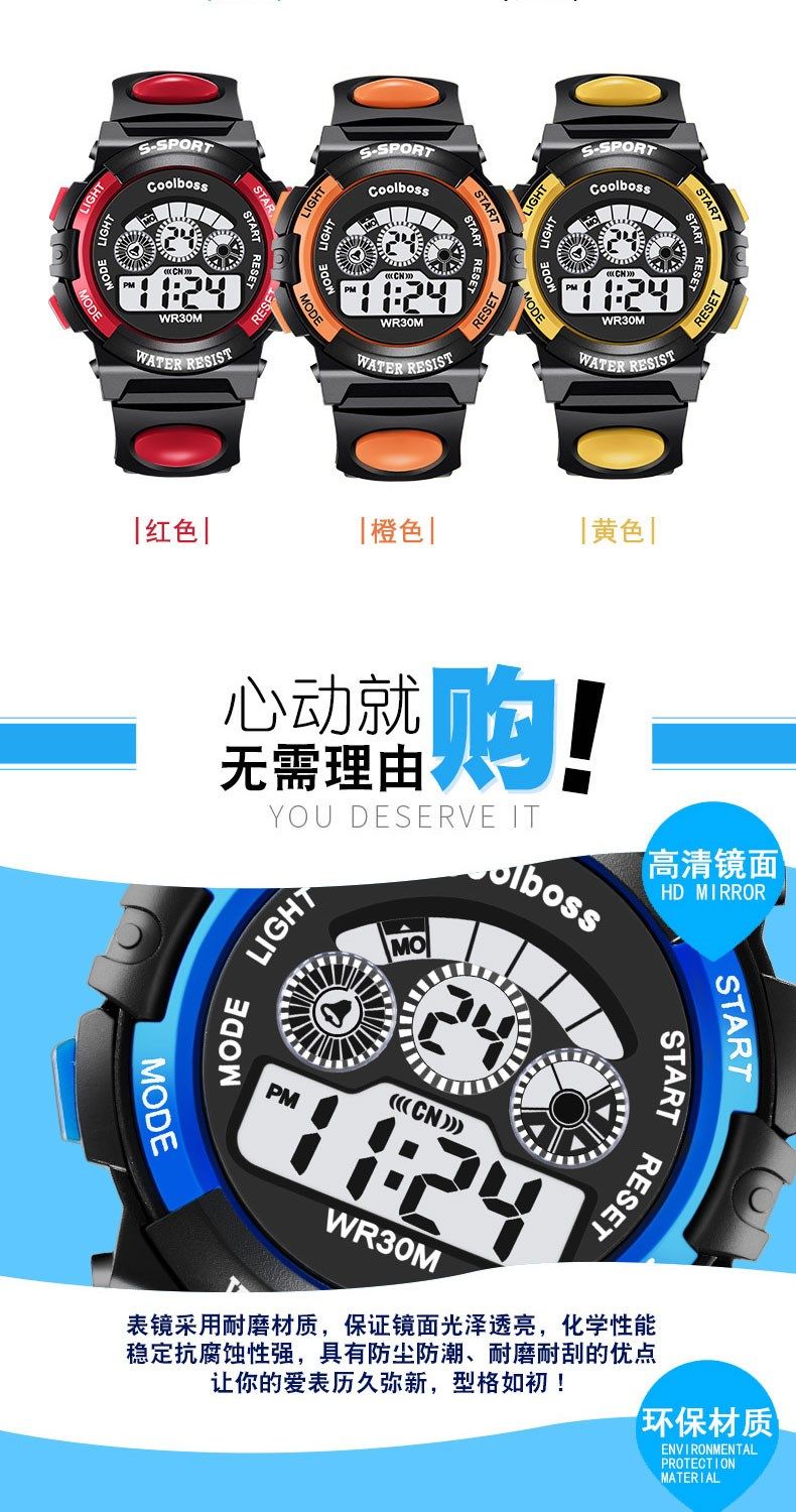 Детские часы для мальчиков и девочек, мужские часы, водонепроницаемые модные цифровые часы для мальчиков