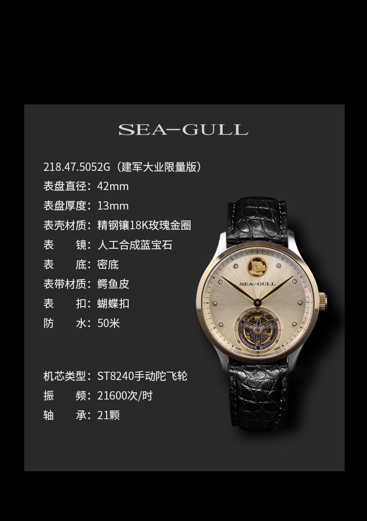 Seagull Seagull Watch Men's Hand -Flying Wheel Machine Watch 218.47.5052G Series