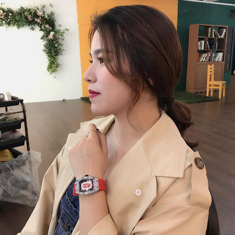 Модные брендовые часы, резиновый календарь, механическая лента, популярно в интернете, инкрустировано бриллиантами, в корейском стиле