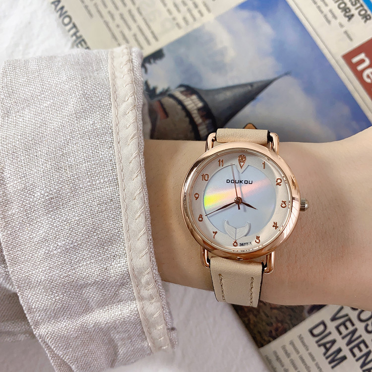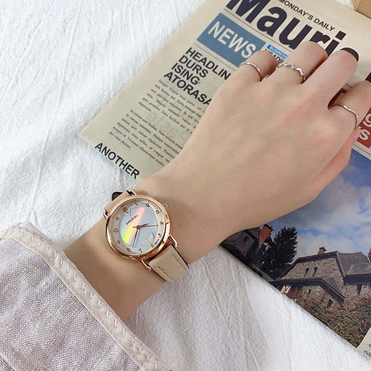 Светоотражающие радужные брендовые женские часы, изысканный стиль, легкий роскошный стиль, простой и элегантный дизайн
