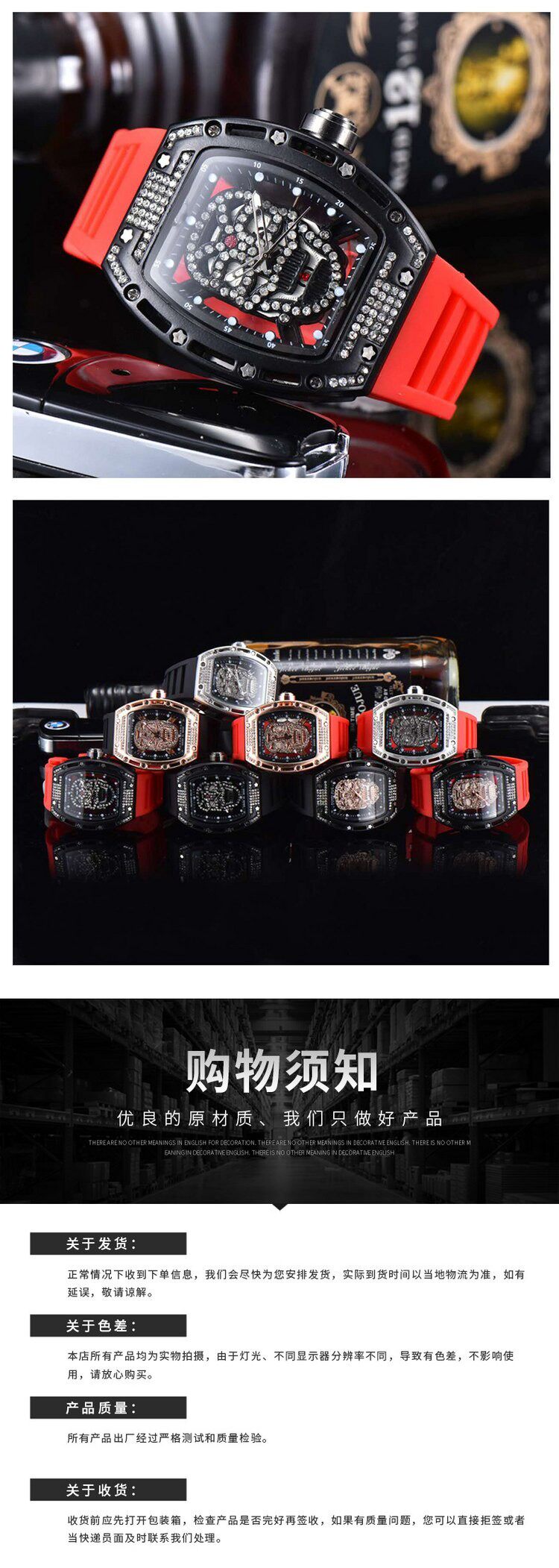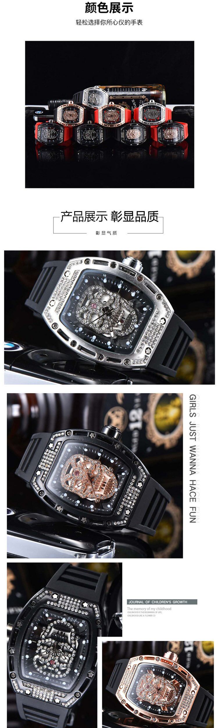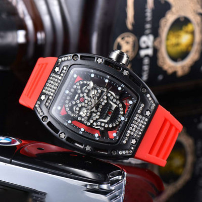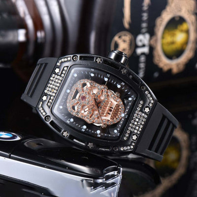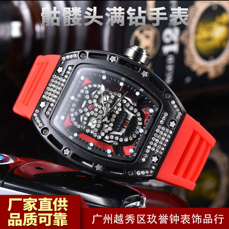 Pan Weibai Hiphop Skull Watch Men's Wine Barrel Inlaid Diamond Skull Quartz Watch Hollow Sports Watch Tide