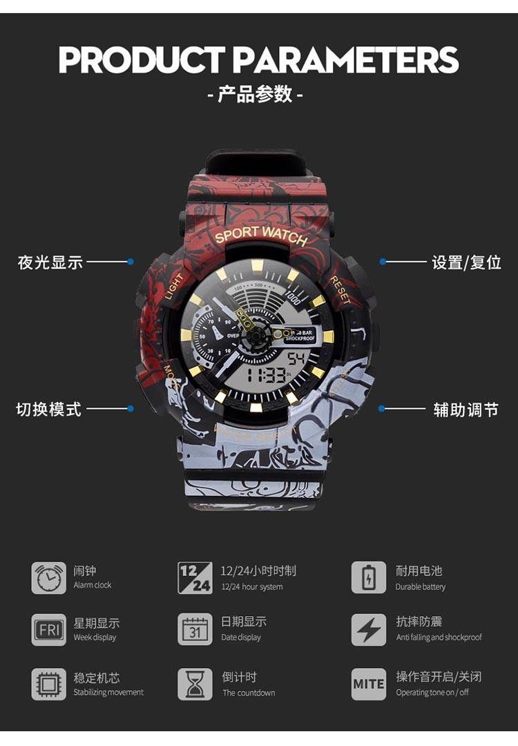 Мужские часы, детские водонепроницаемые трендовые цифровые часы, подходит для подростков, для средней школы, защита при падении