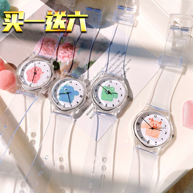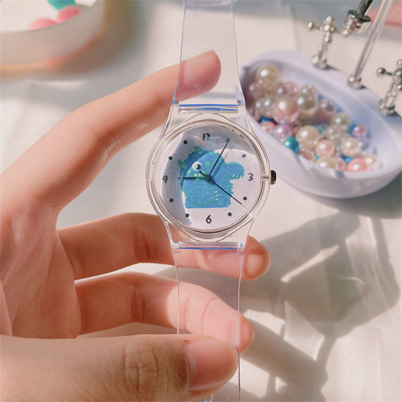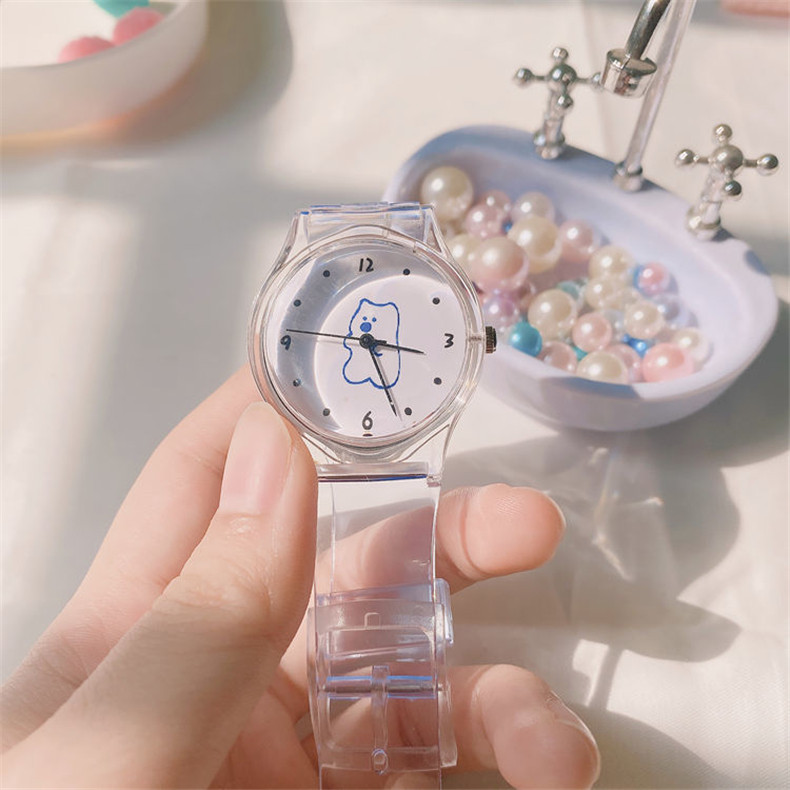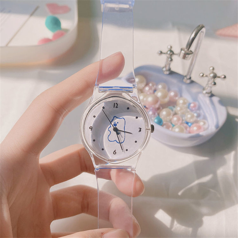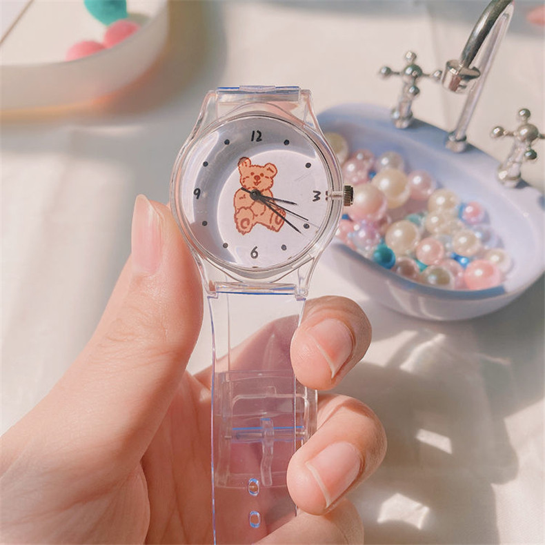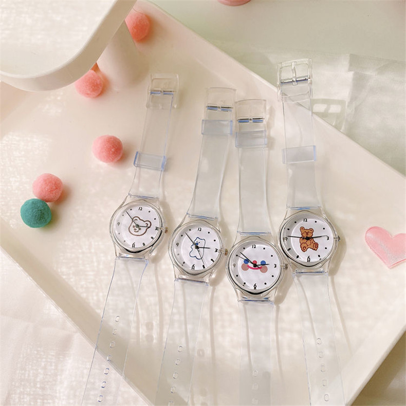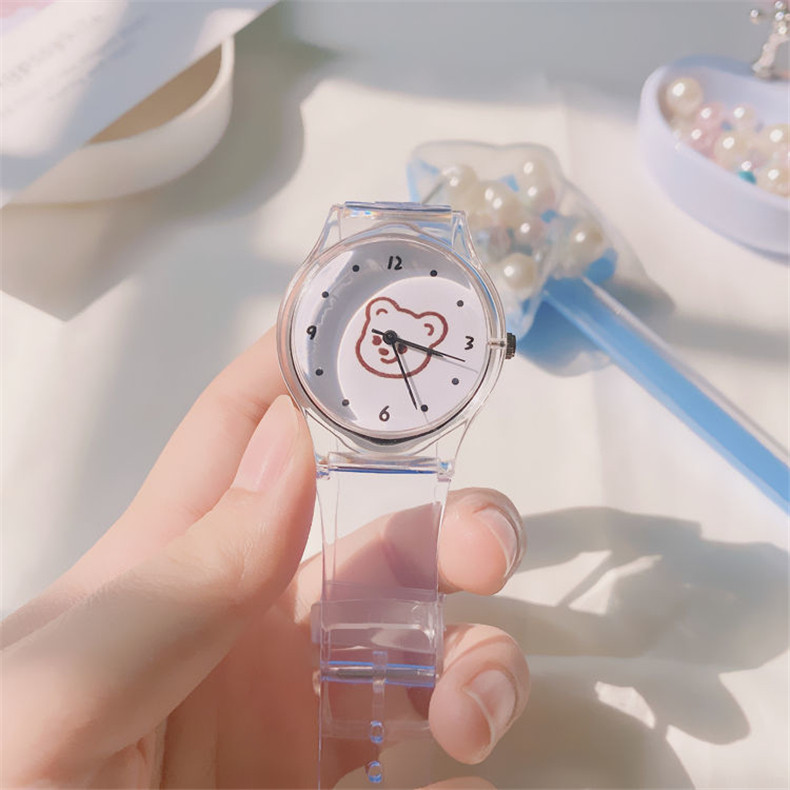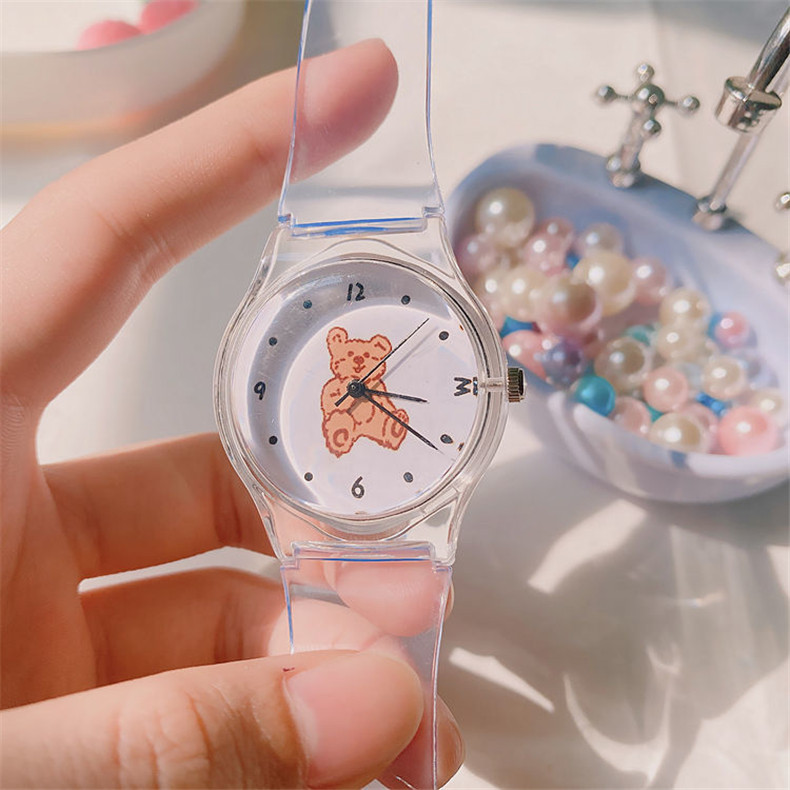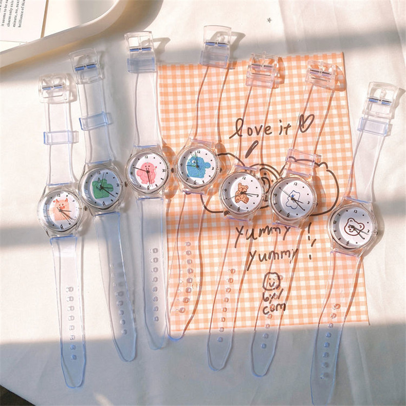 Прозрачные брендовые милые универсальные мягкие японские часы для мальчиков, с медвежатами, популярно в интернете, простой и элегантный дизайн