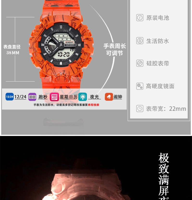Мужские часы подходит для мужчин и женщин для влюбленных, водонепроницаемый универсальный трендовый циферблат, в корейском стиле