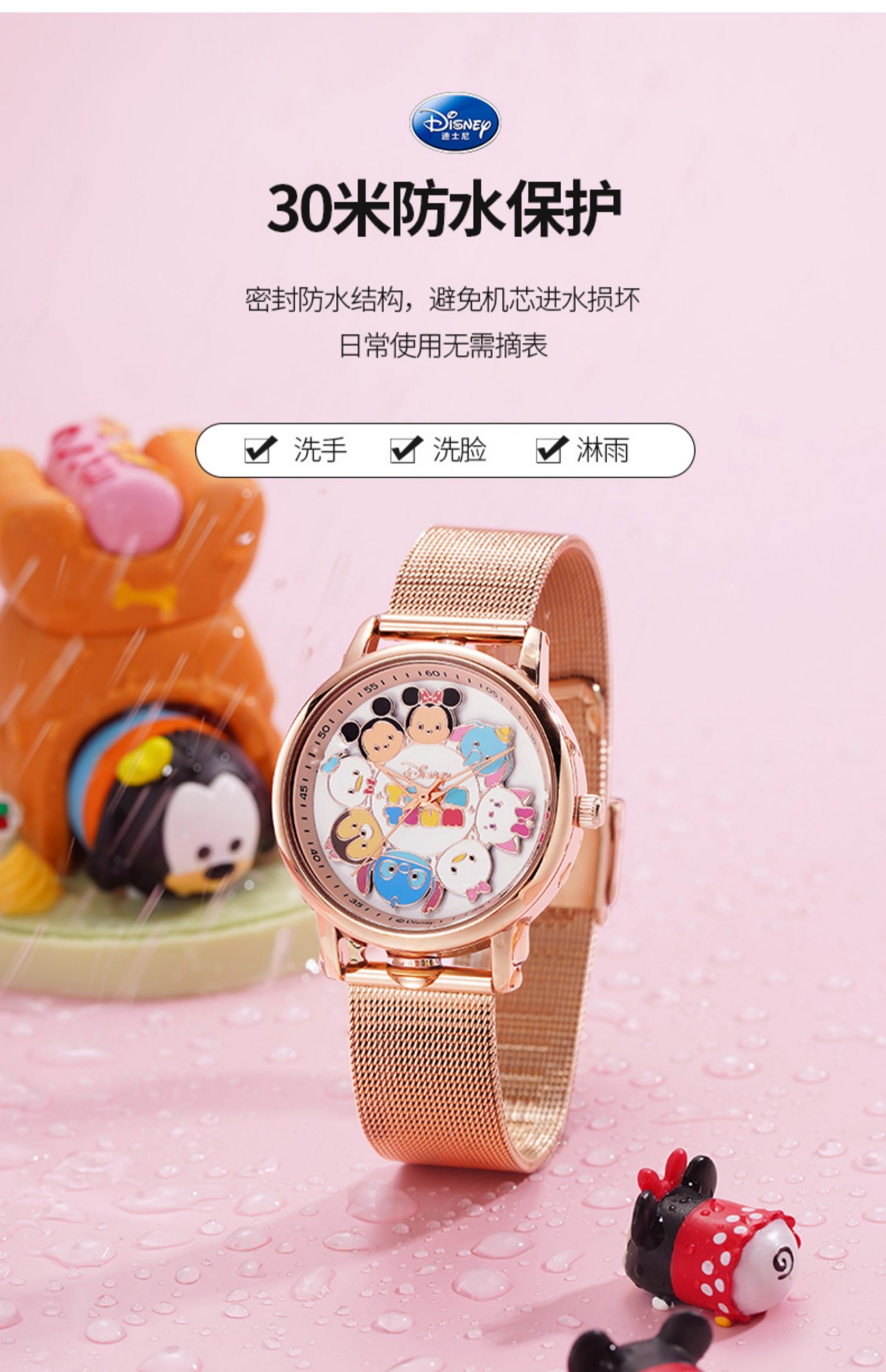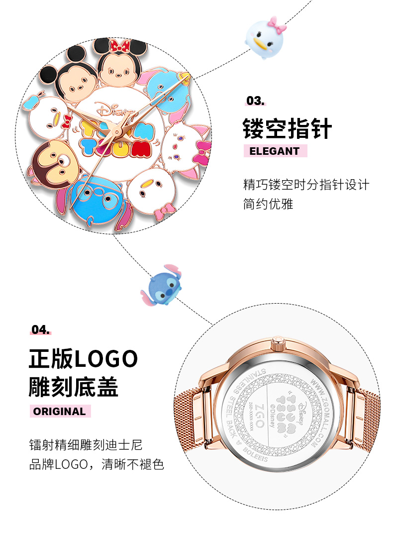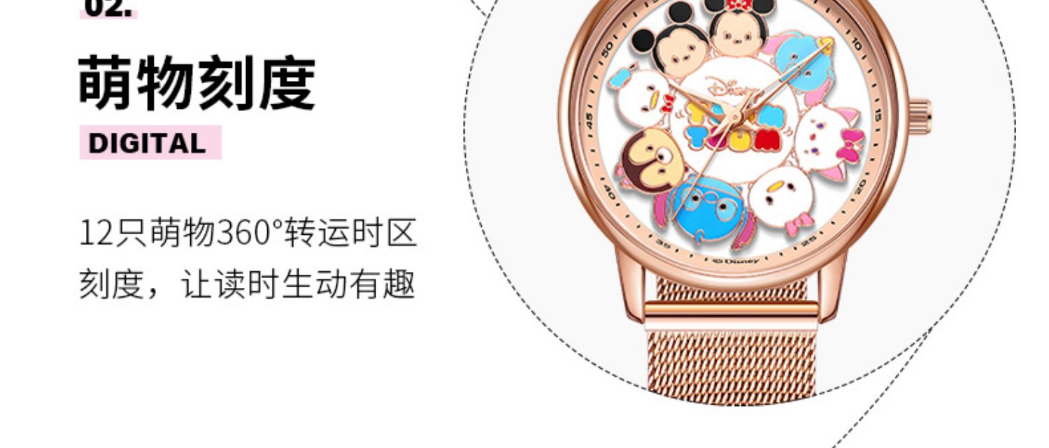 Дисней, водонепроницаемые брендовые милые кварцевые часы, простой и элегантный дизайн