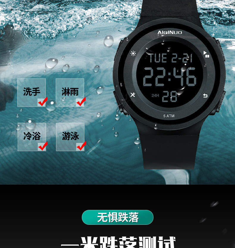 Водонепроницаемые цифровые часы подходит для мужчин и женщин для влюбленных для плавания, универсальный браслет для взрослых, подходит для подростков