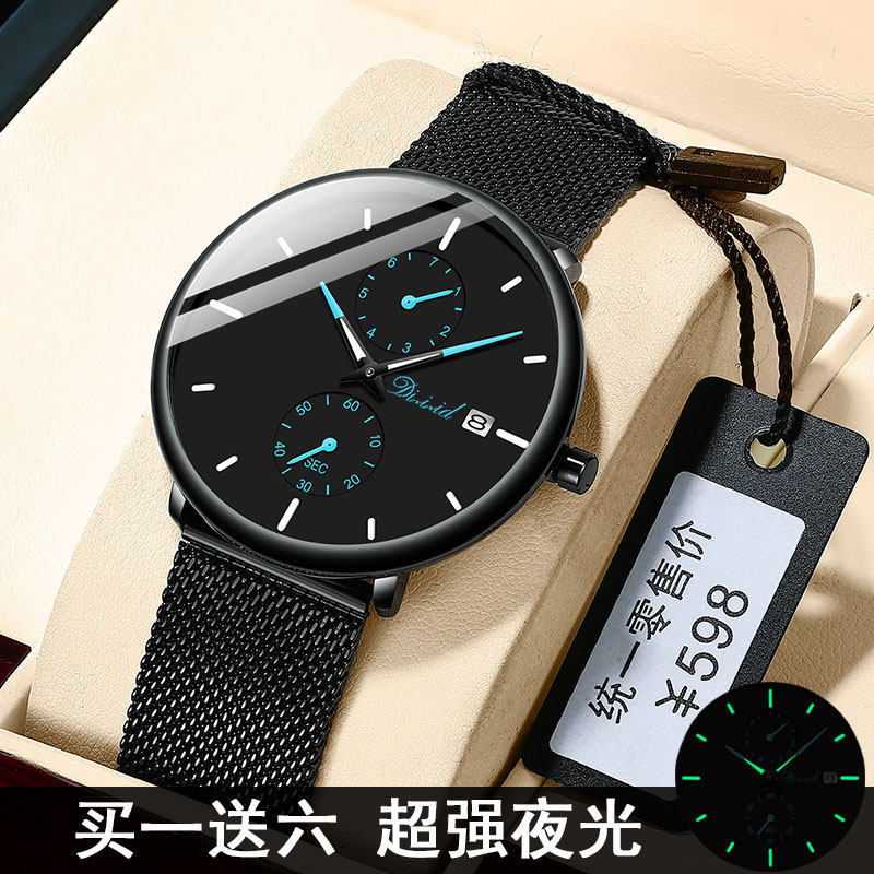 Механические ультратонкие спортивные трендовые водонепроницаемые электронные кварцевые мужские часы, Швейцария