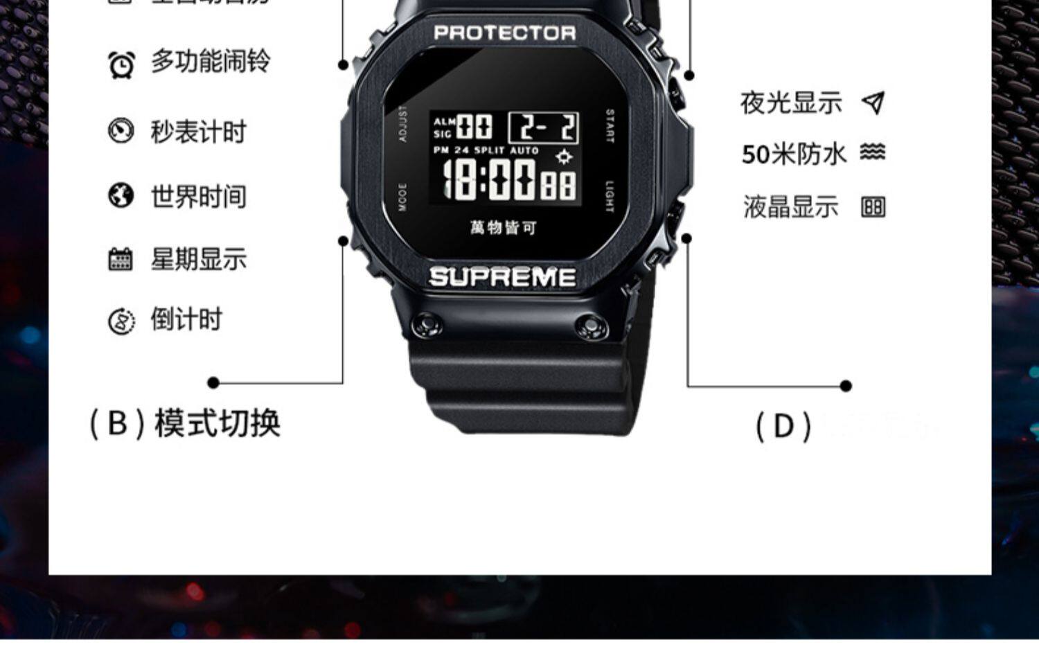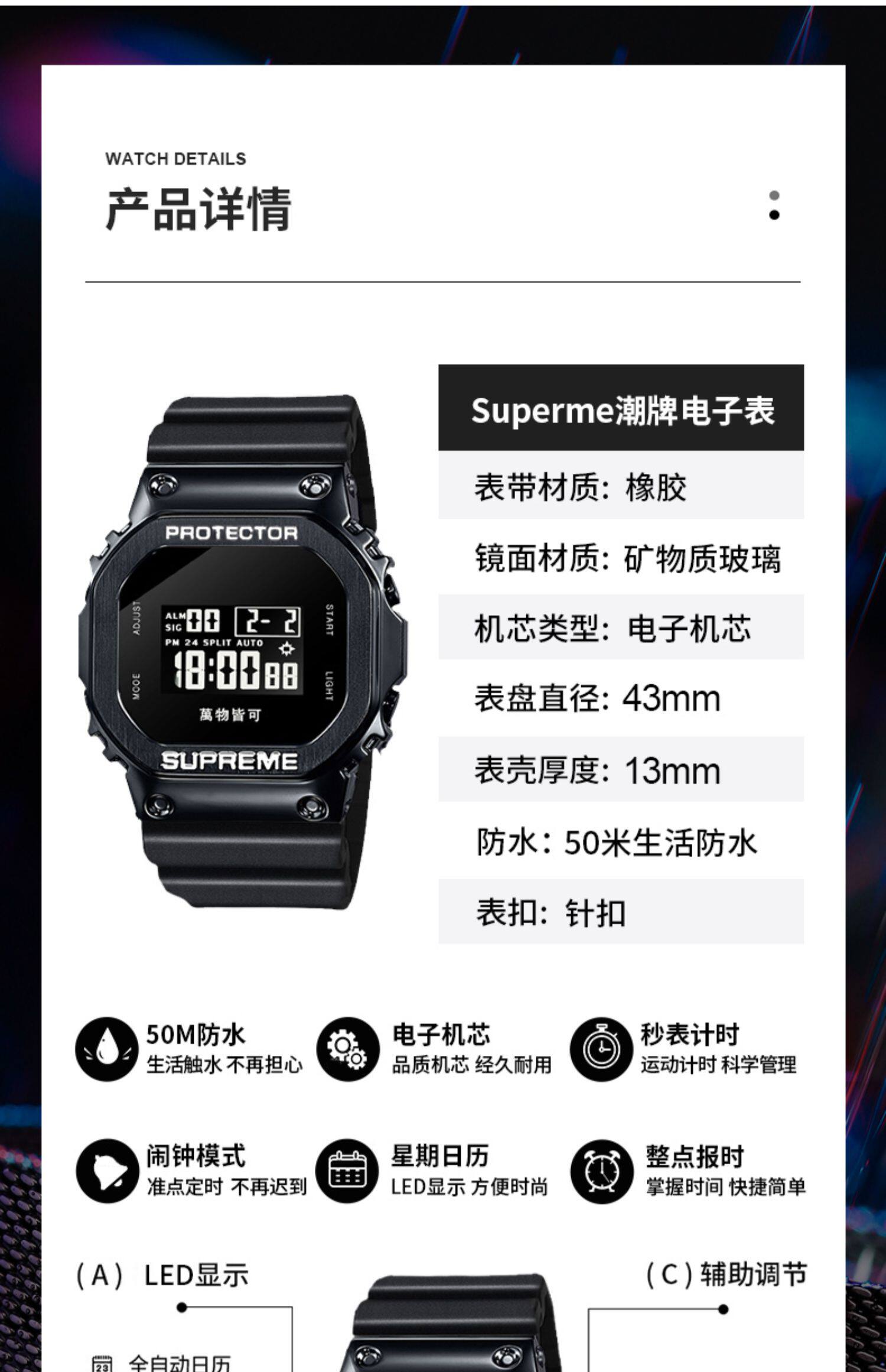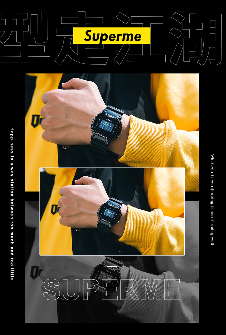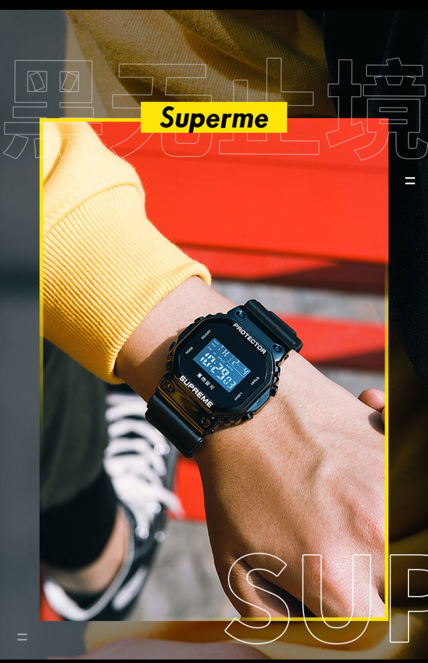 Superme Watch Men's Simple Demprament Coint Unicorn Ins Style Спортивно -спортивные водонепроницаемые девушки Электронные часы