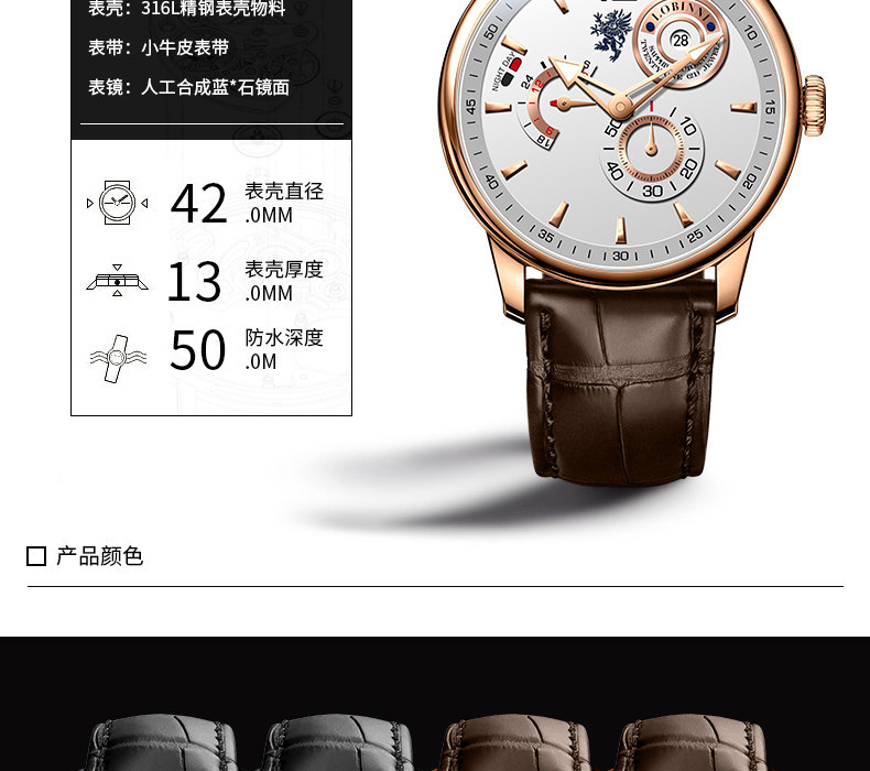 Механические механические часы, мужские часы, циферблат для отдыха, швейцарские часы, полностью автоматический