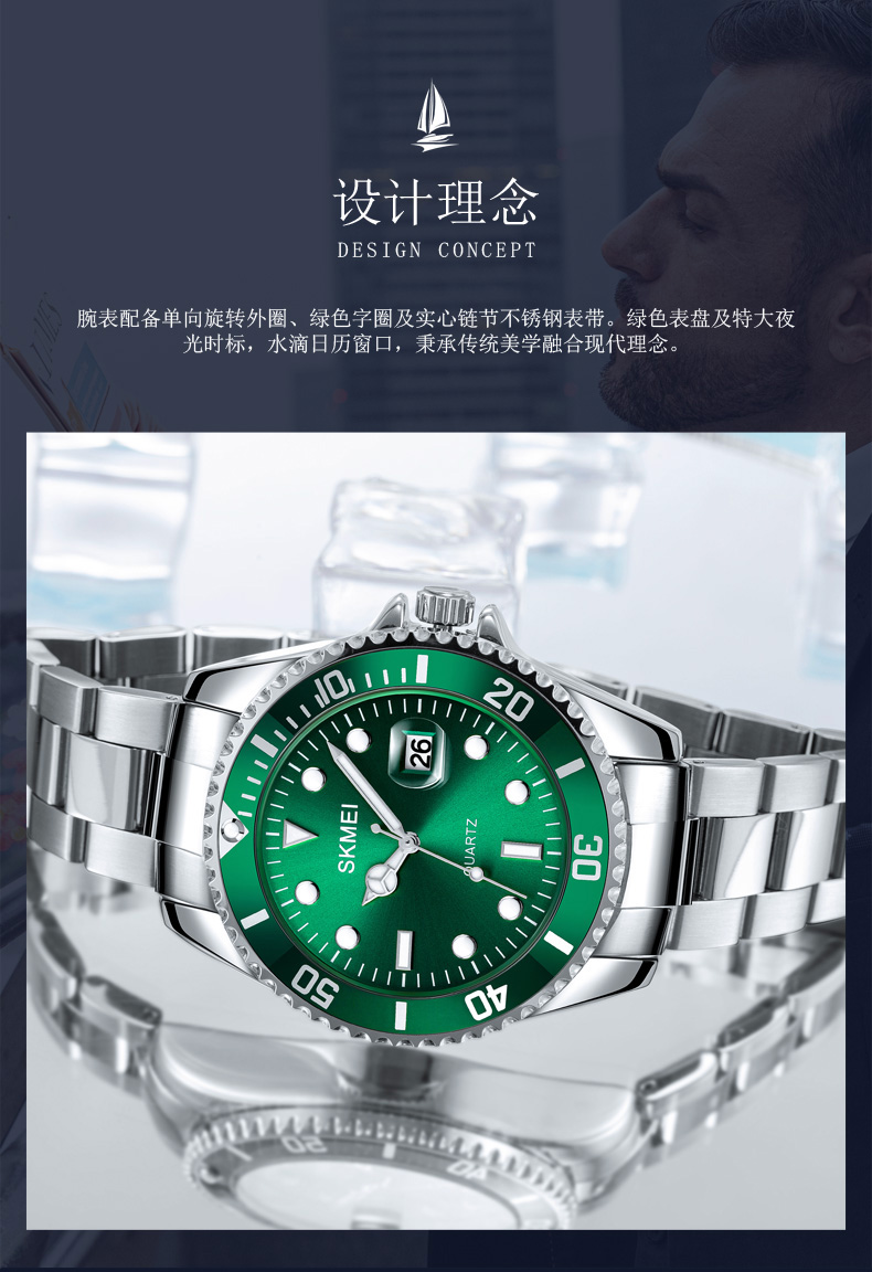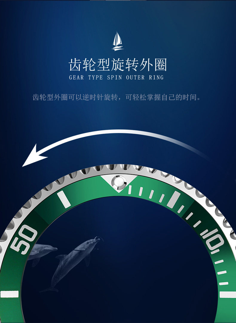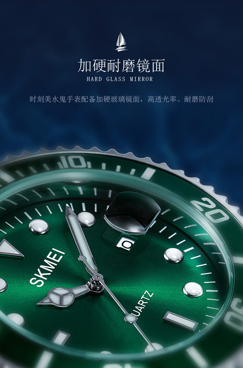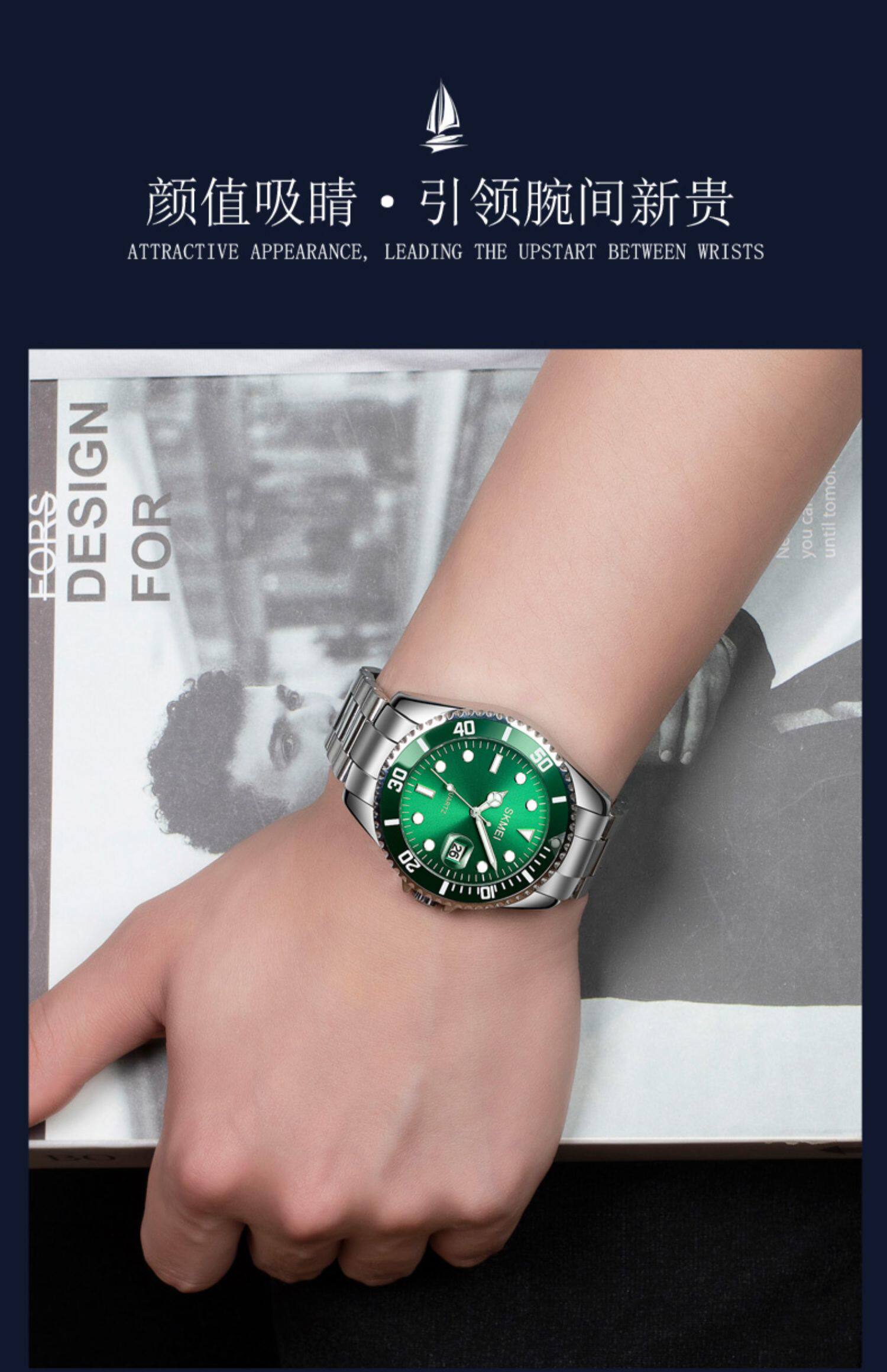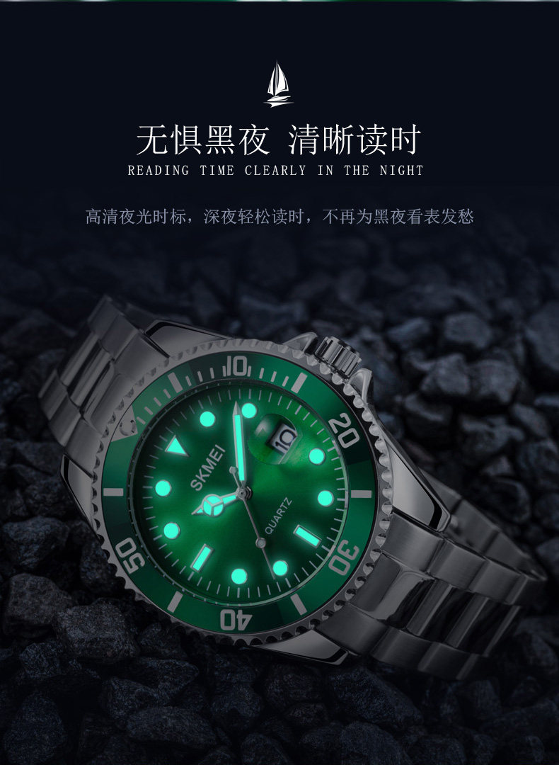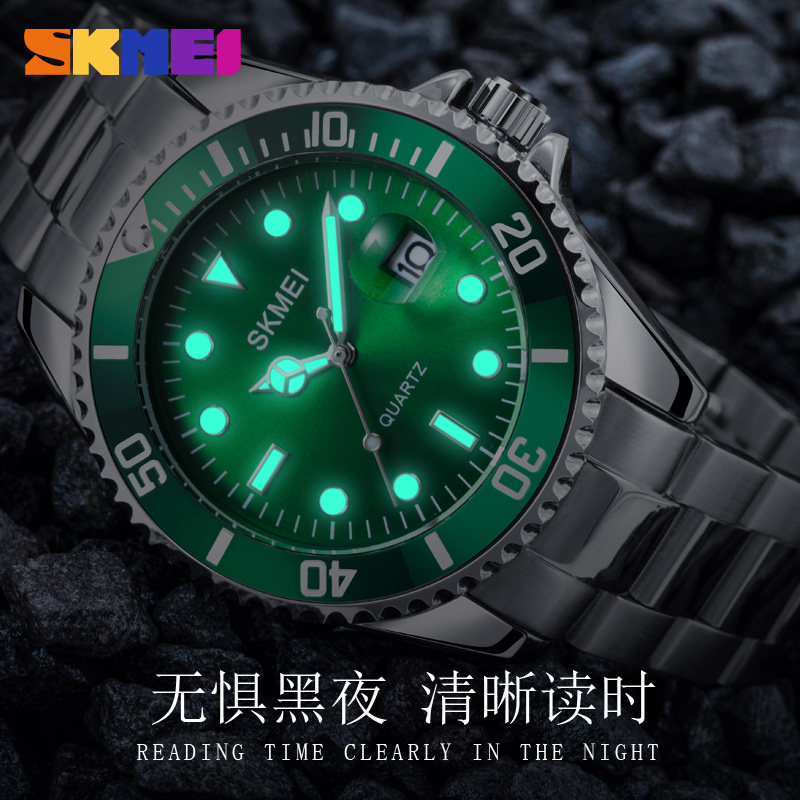 Подлинная трудовая земля Автоматическая легкая энергия ночи светло -зеленая вода Странная вода призрачные мужские часы Водонепроницаемый бизнес -календарь лучшие десятки крупных брендов