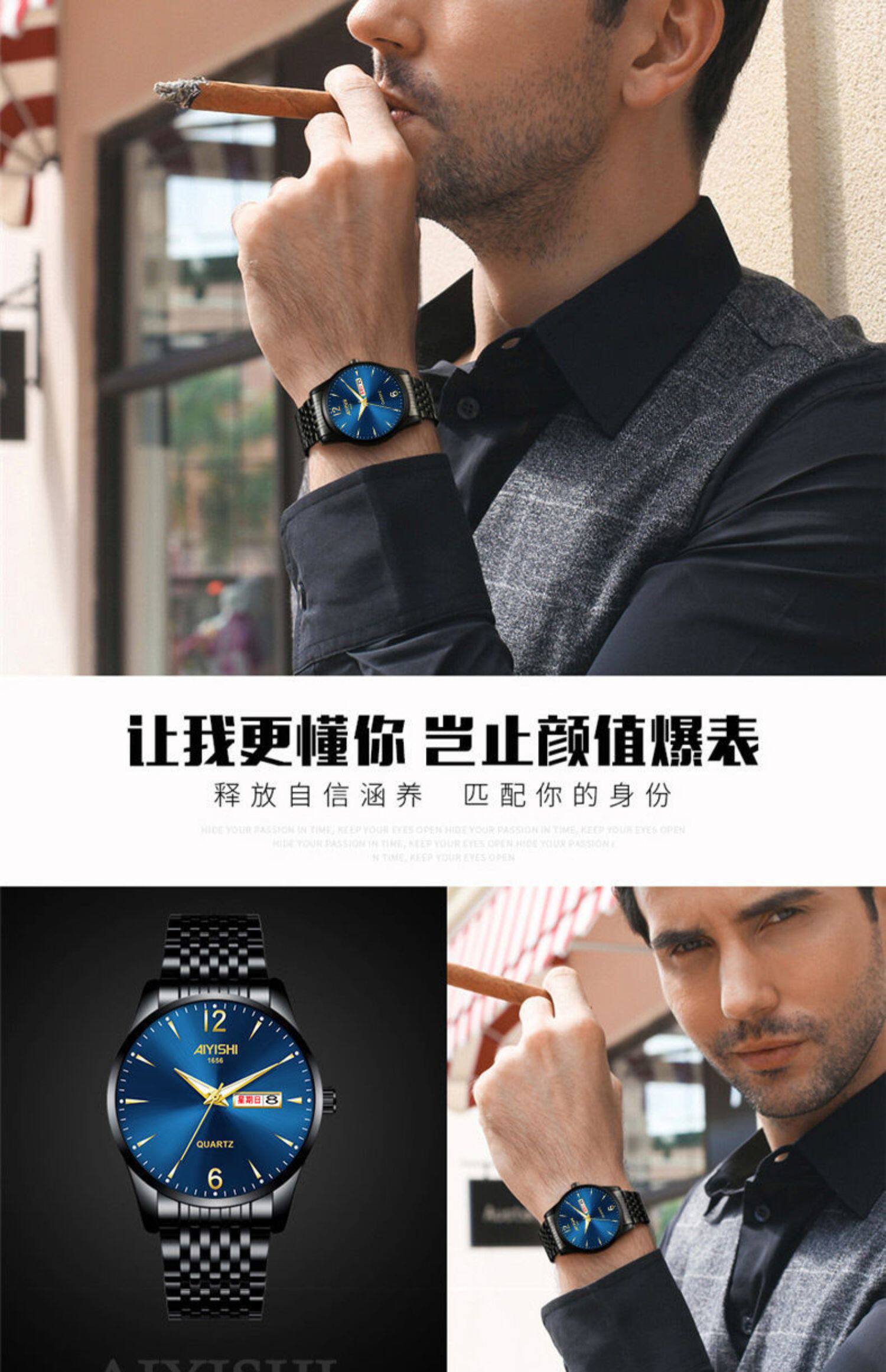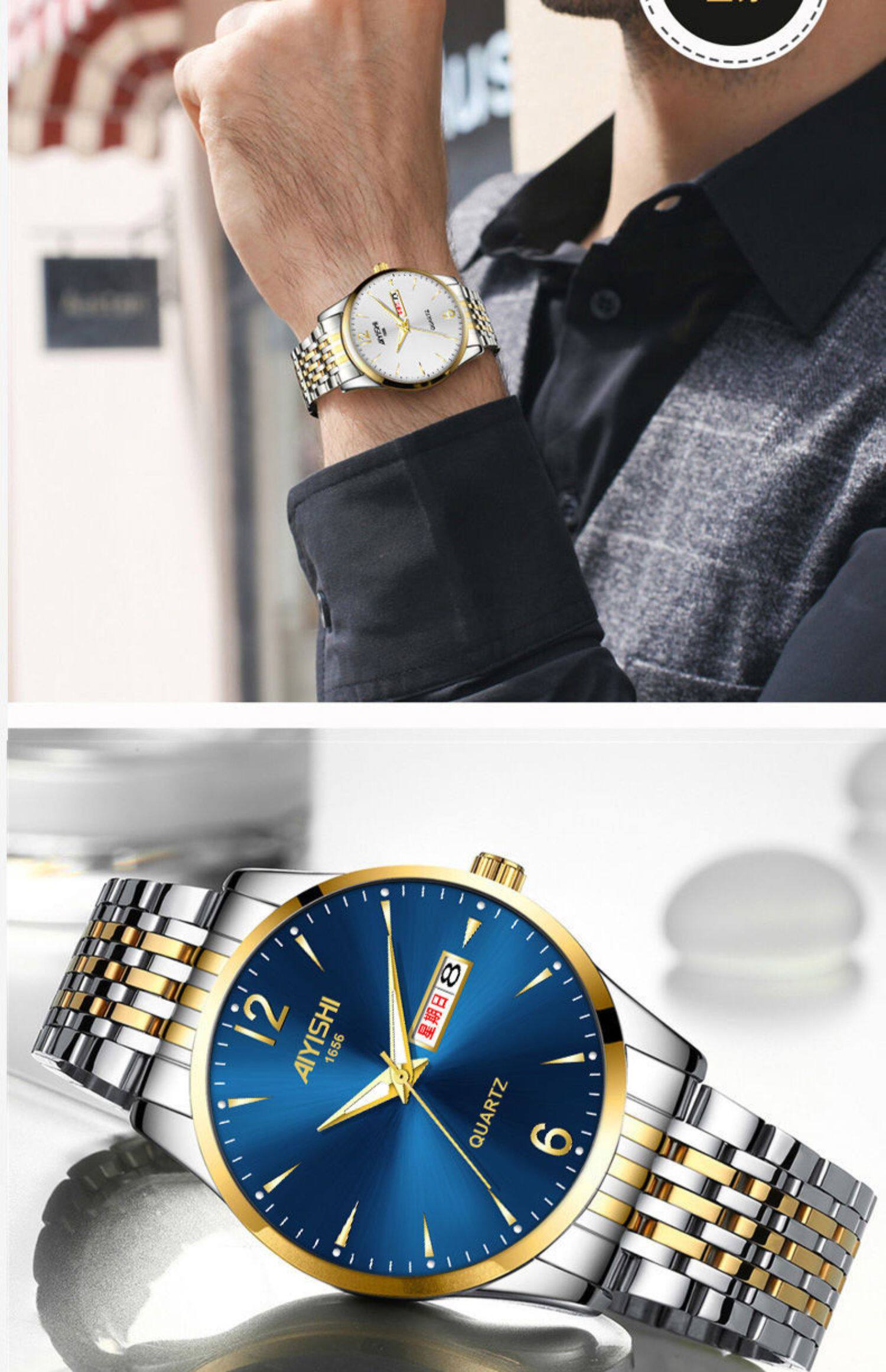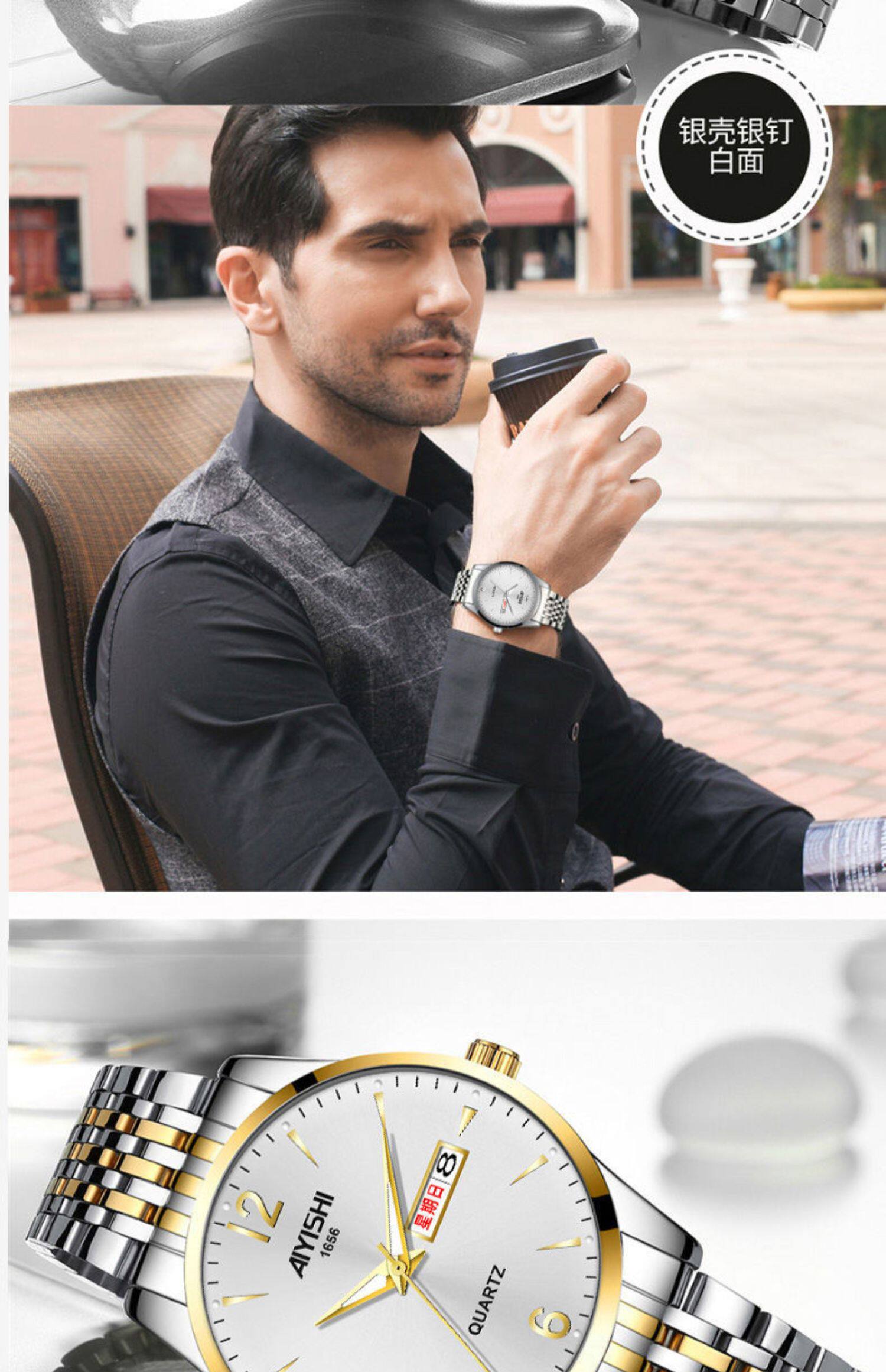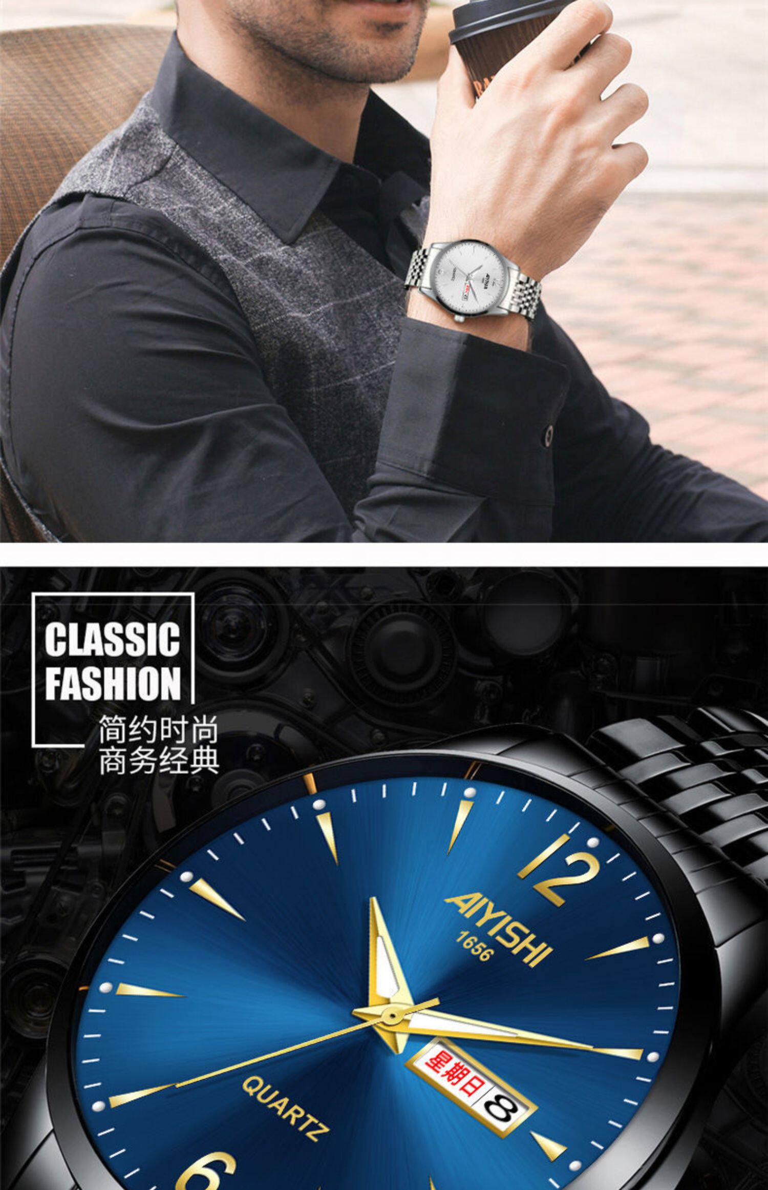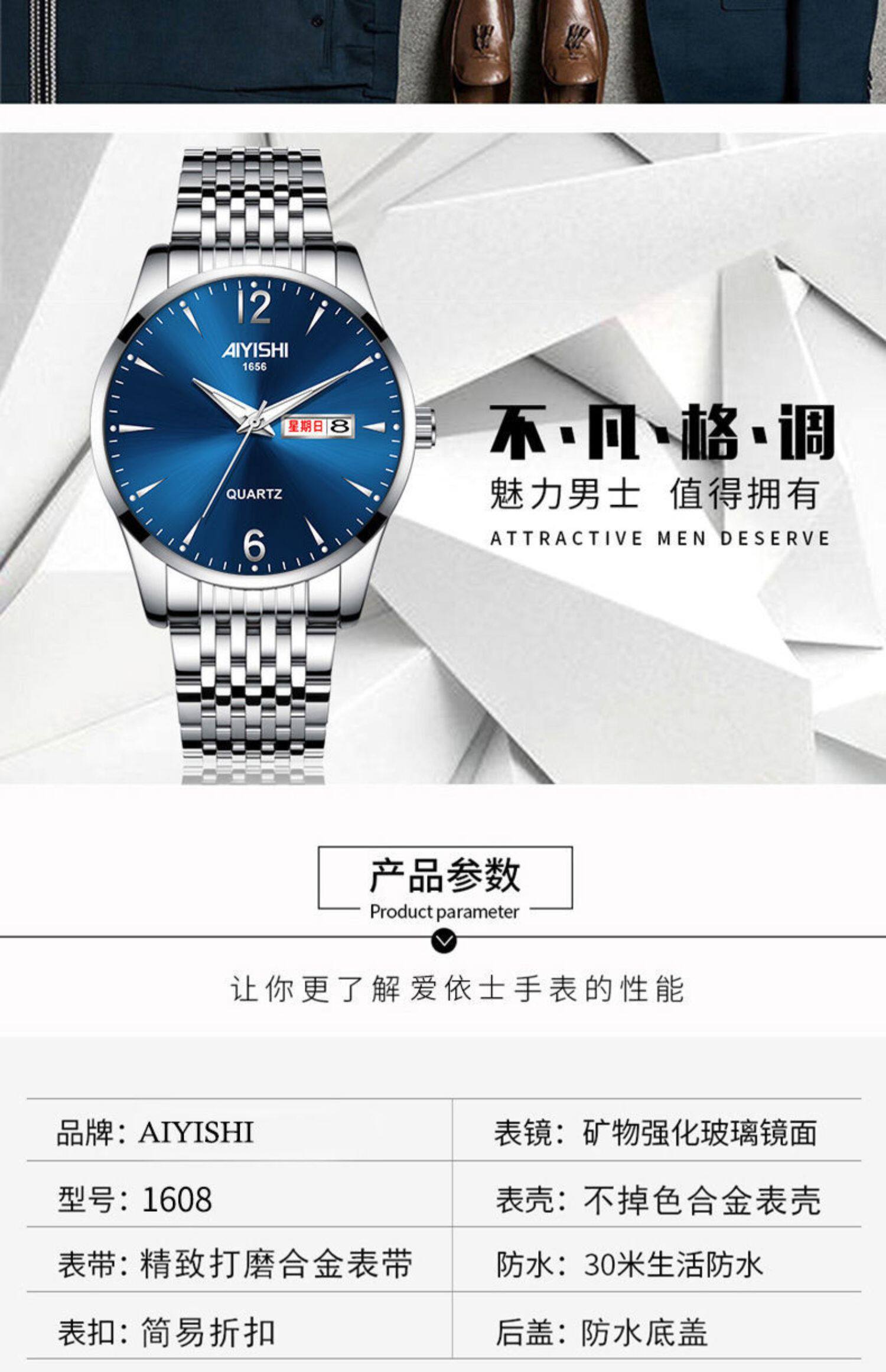 Швейцарские часы, механические водонепроницаемые кварцевые часы, стальной ремешок, черный календарь, Швейцария, полностью автоматический
