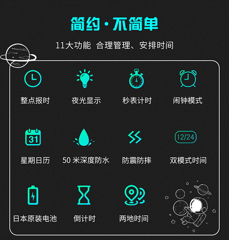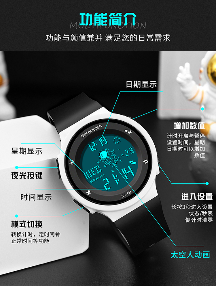 Космические трендовые водонепроницаемые мужские часы для мальчиков, детские цифровые часы, подходит для подростков, для средней школы, защита при падении, простой и элегантный дизайн