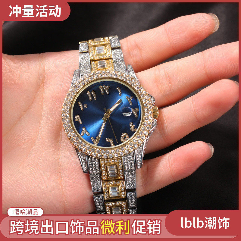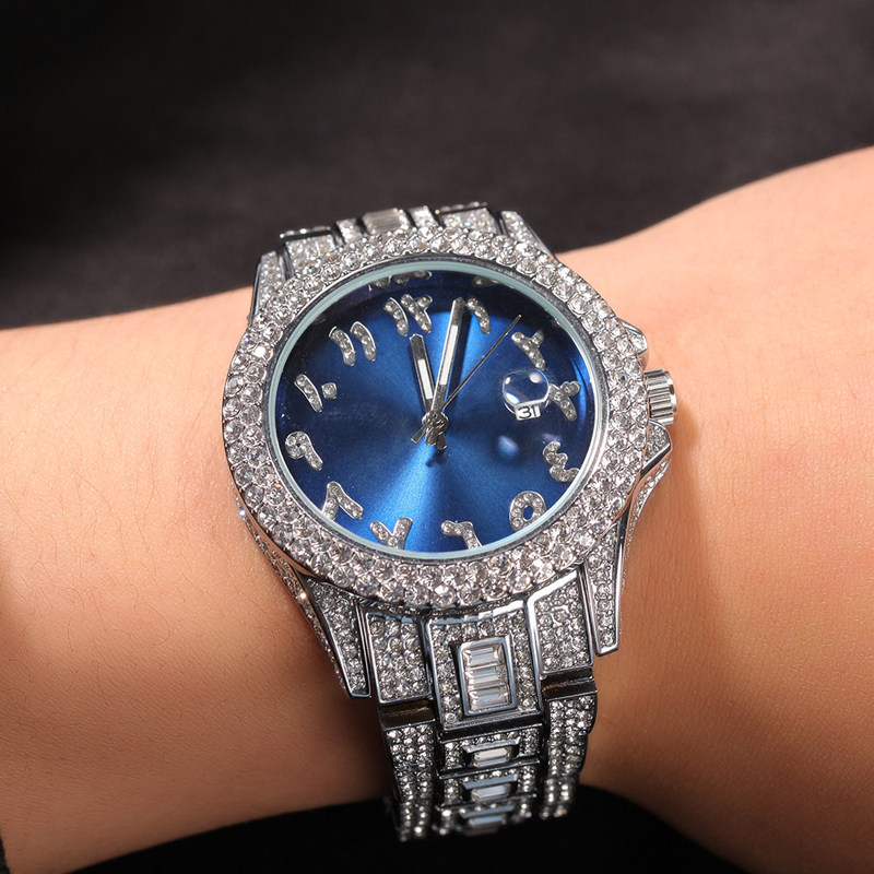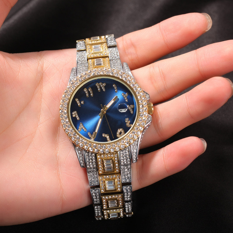 Модный циферблат в стиле хип-хоп, кварцевые часы из нержавеющей стали, ремешок для часов, бриллиантовые швейцарские часы, европейский стиль, не выцветает
