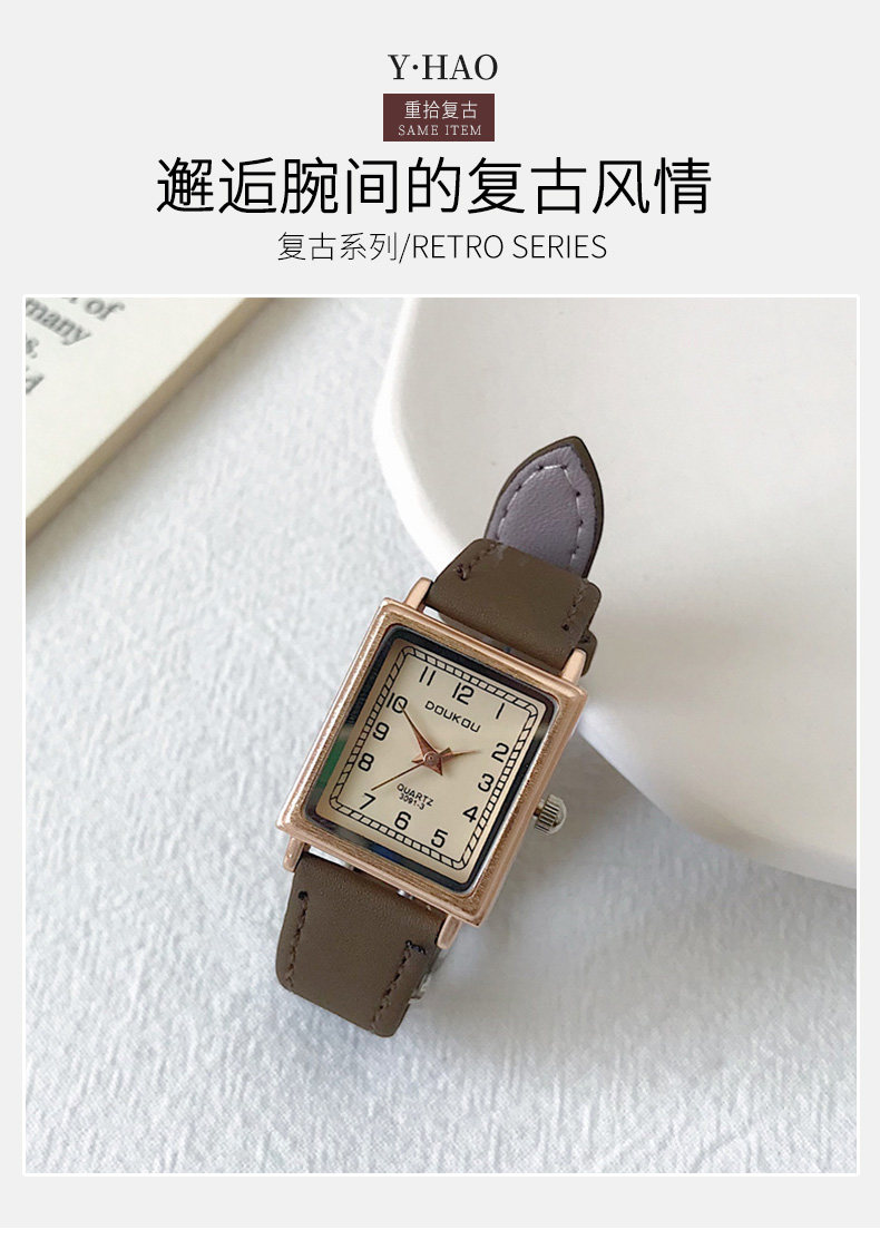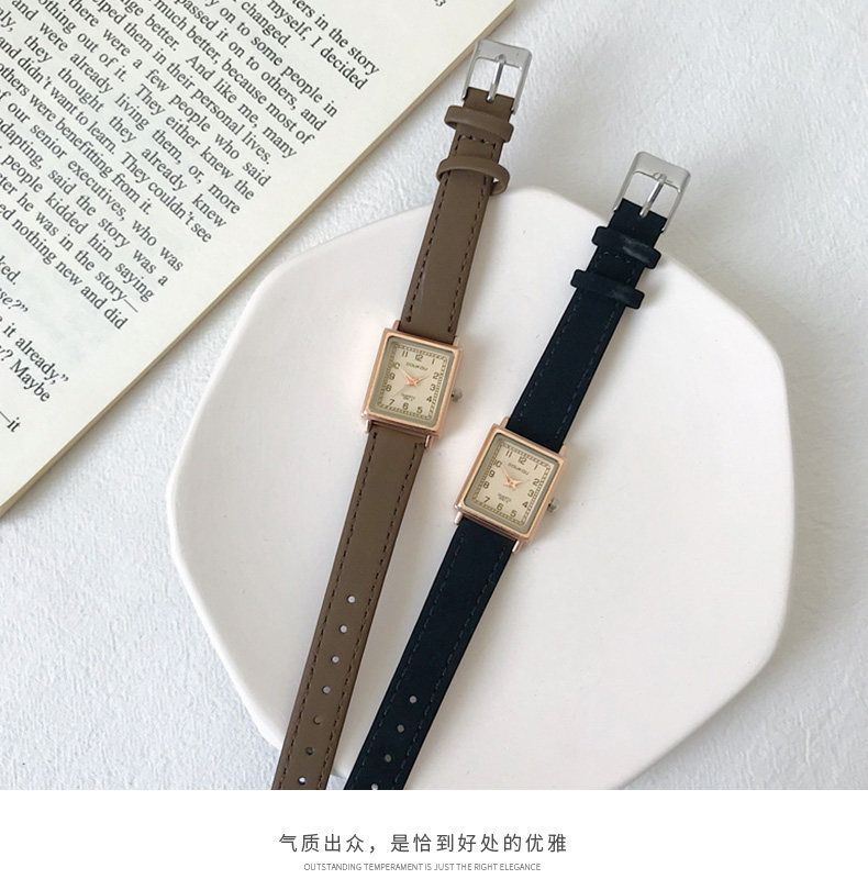 Маленькие брендовые квадратные часы, ретро водонепроницаемый ремень, легкий роскошный стиль, простой и элегантный дизайн, в стиле «Мори»