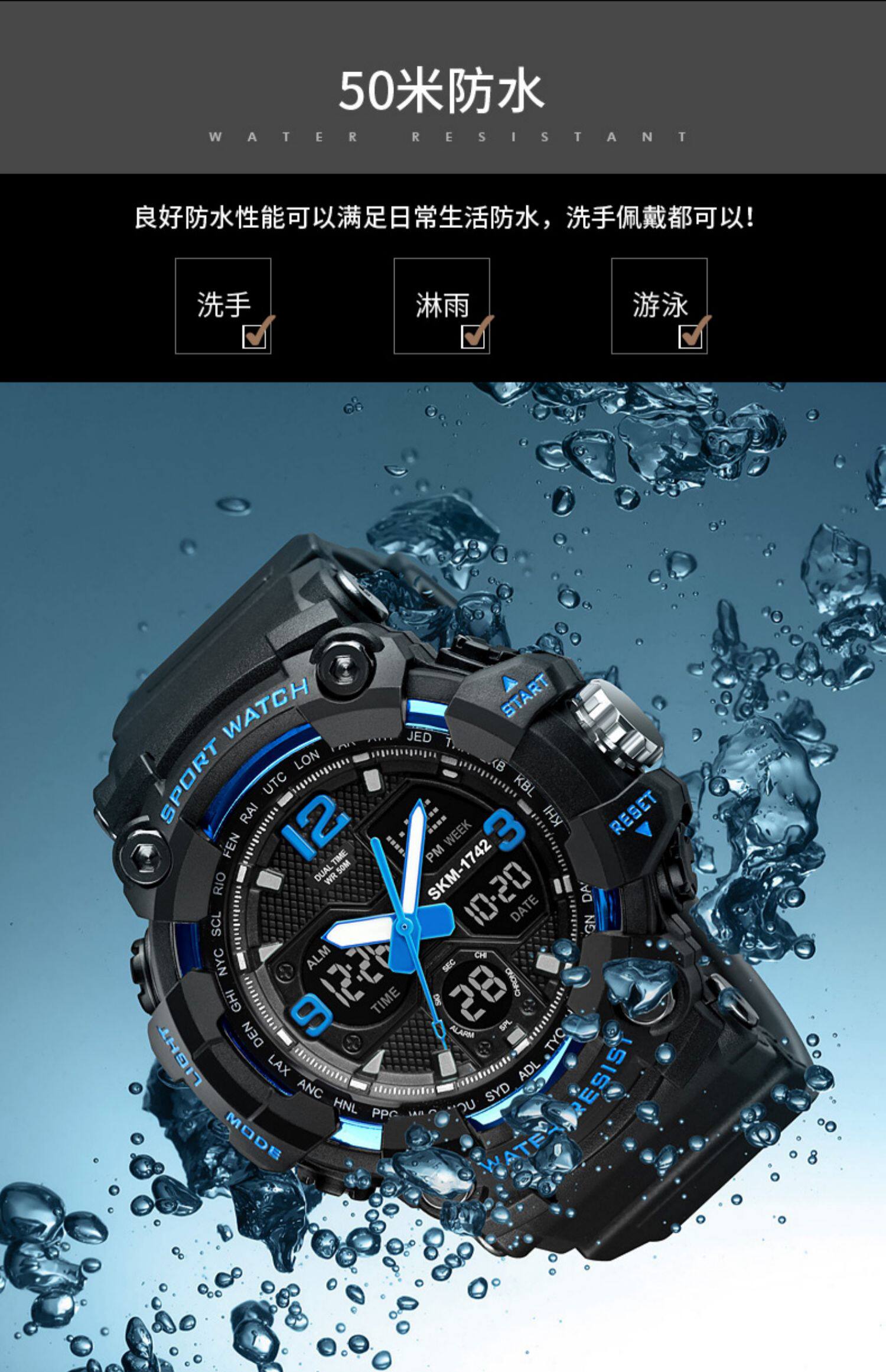 Мужские модные дорожные спортивные цифровые часы, водонепроницаемые швейцарские часы