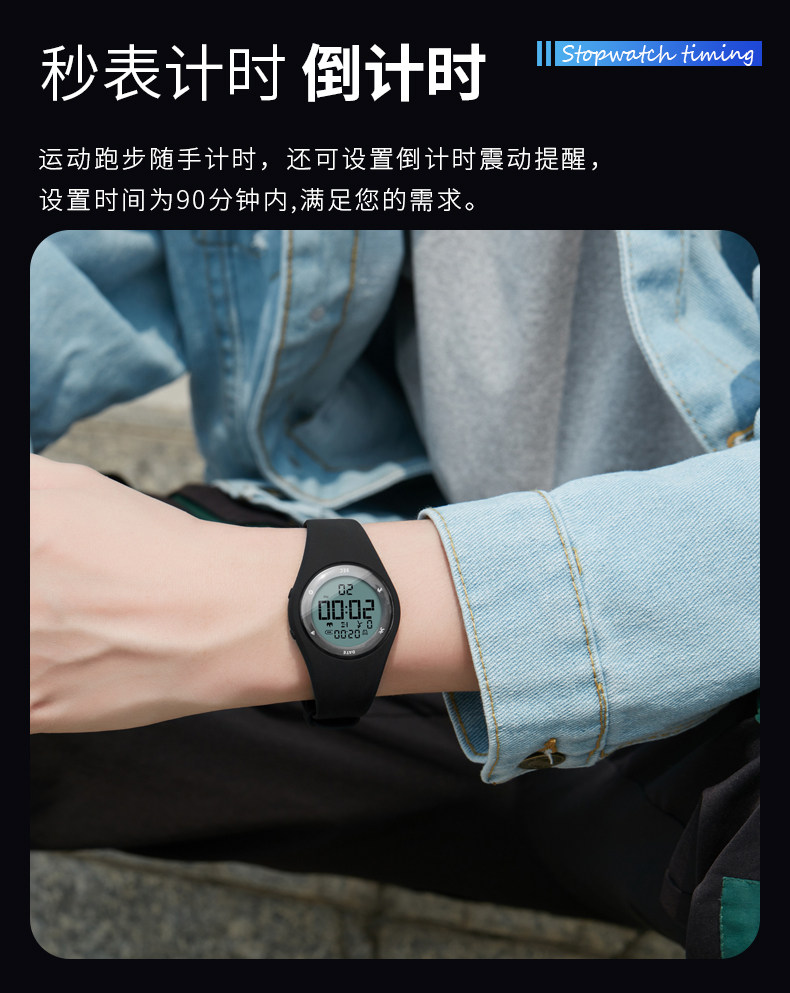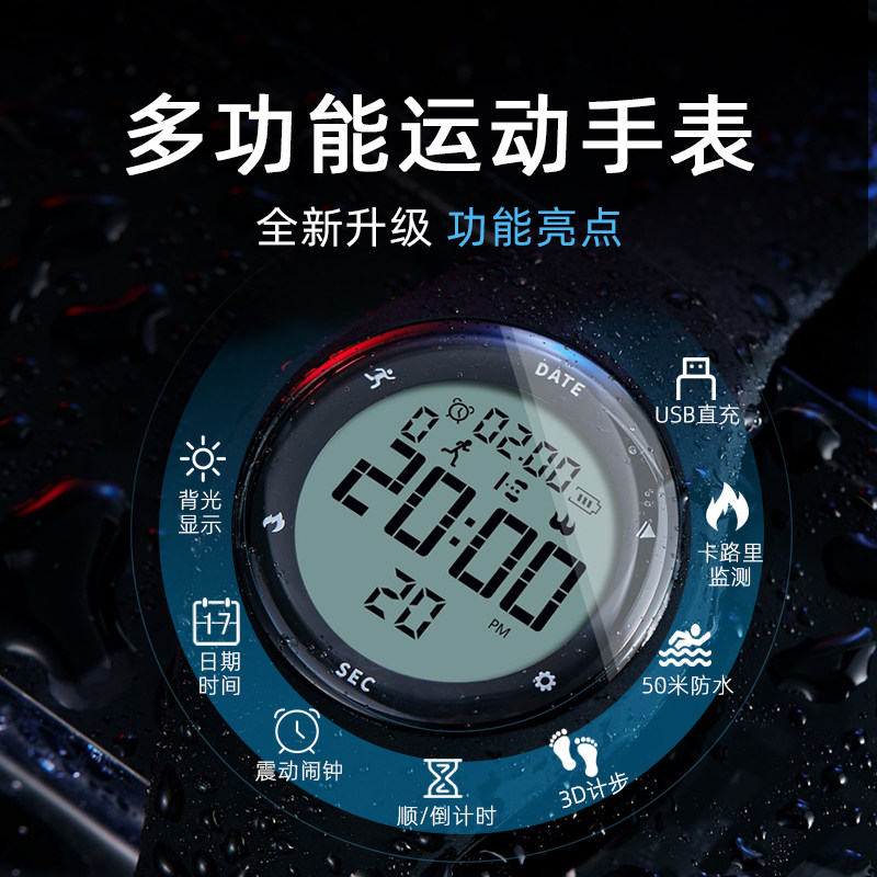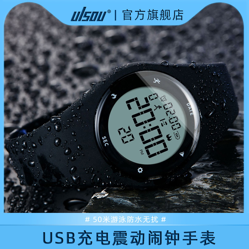 Бесшумные мужские часы с зарядкой, универсальные цифровые часы, подходит для подростков, вибрация, для средней школы, простой и элегантный дизайн