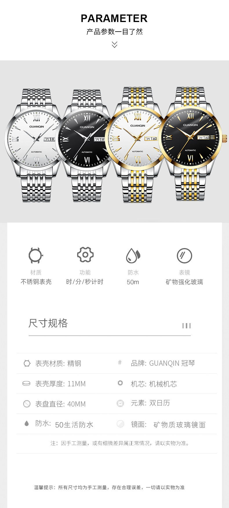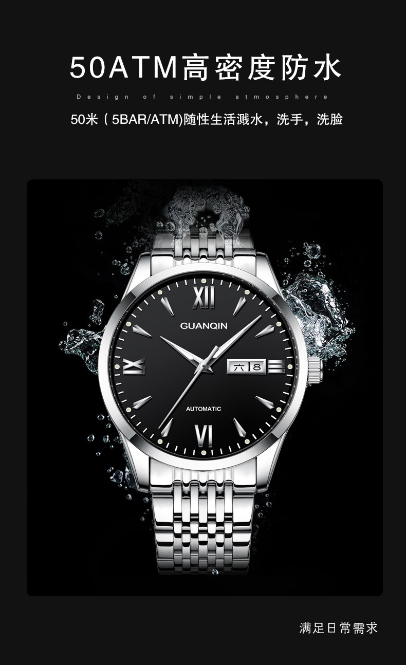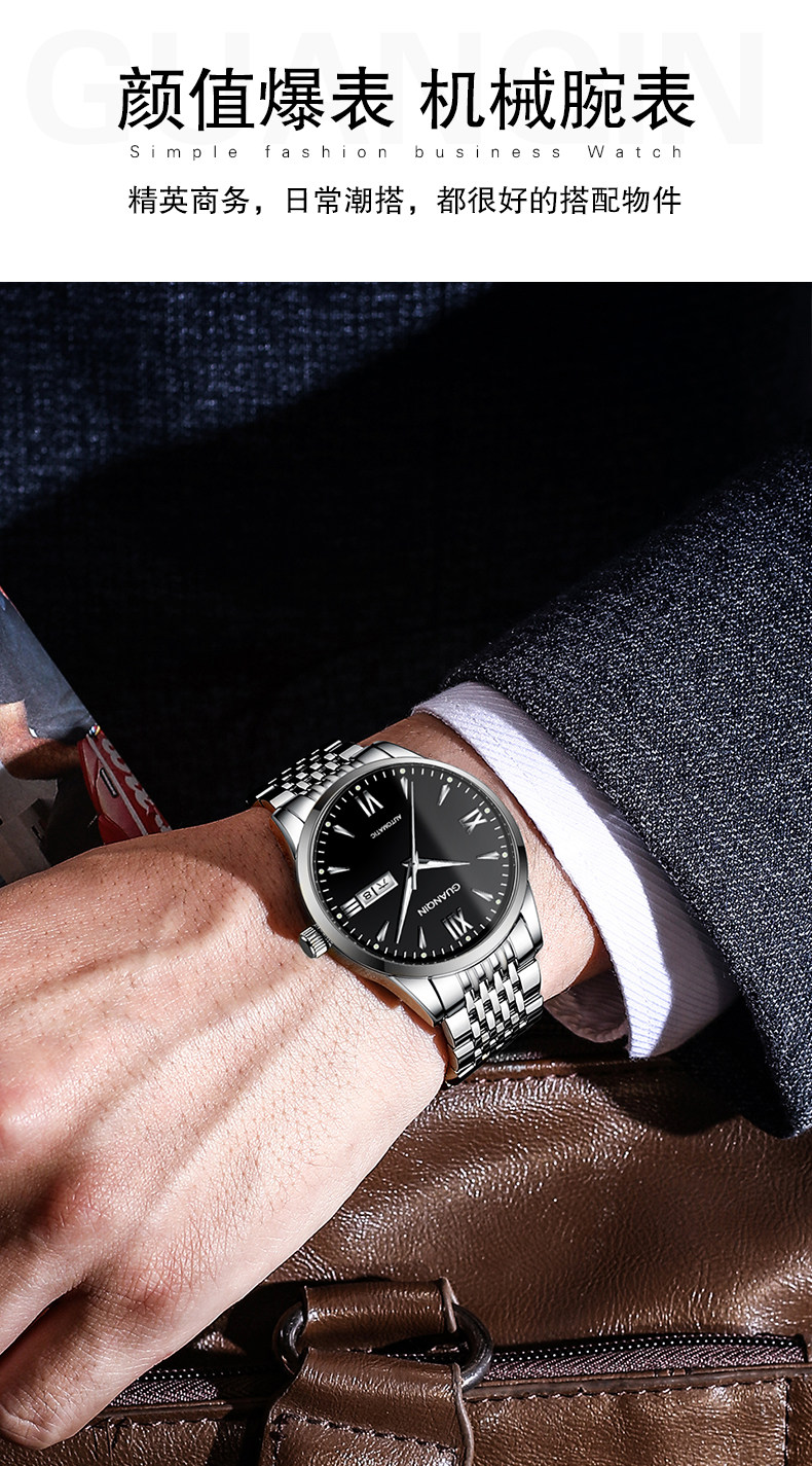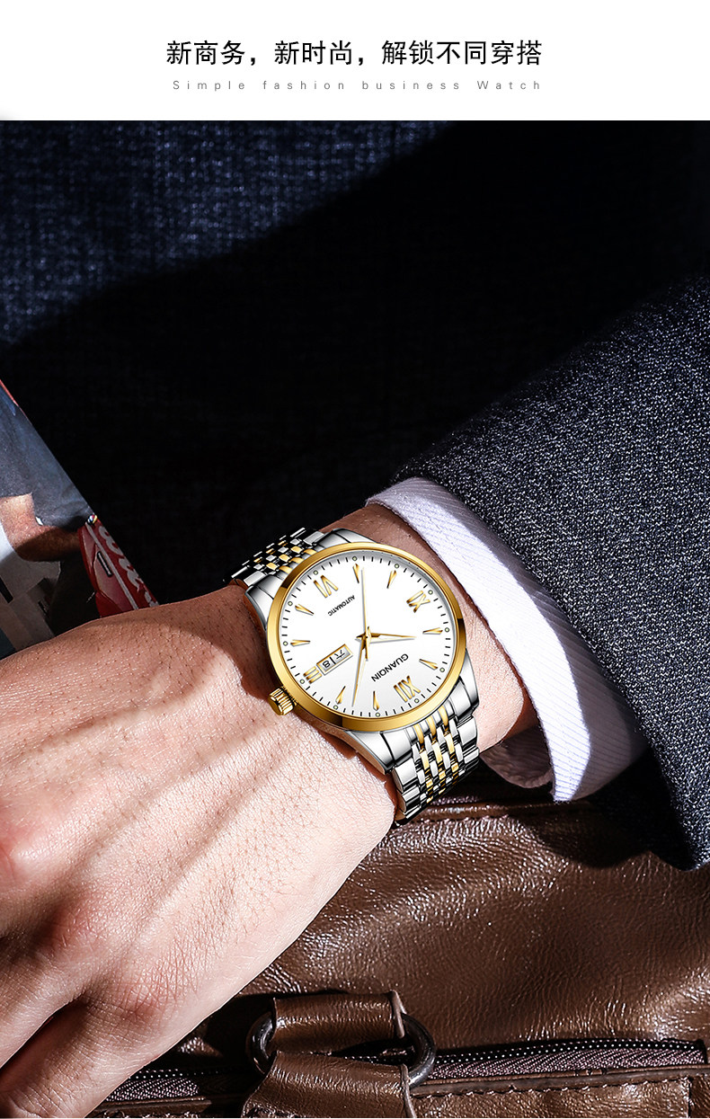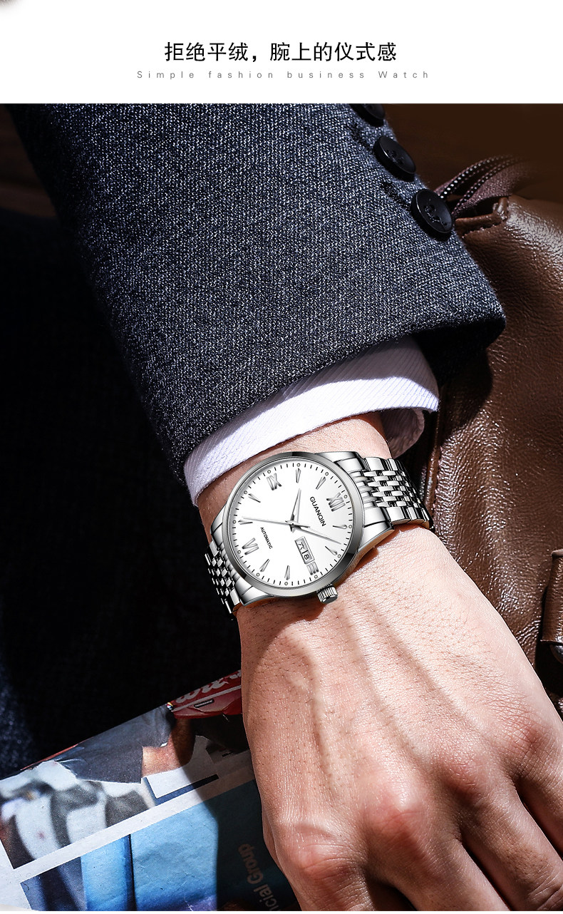 Швейцарские часы, механические классические водонепроницаемые механические часы, полностью автоматический, простой и элегантный дизайн