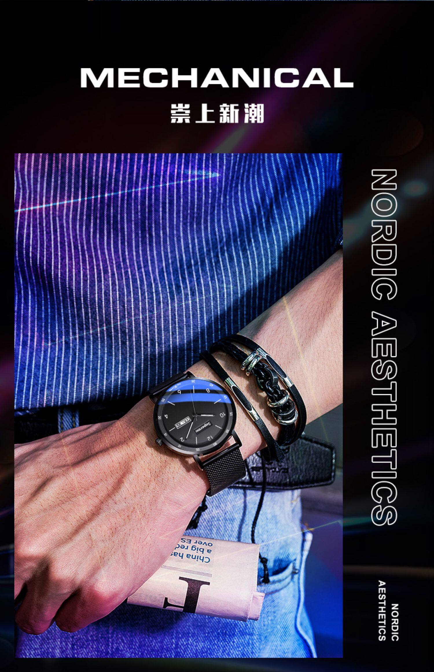 Механические механические часы, трендовые водонепроницаемые кварцевые часы, коллекция 2021, полностью автоматический