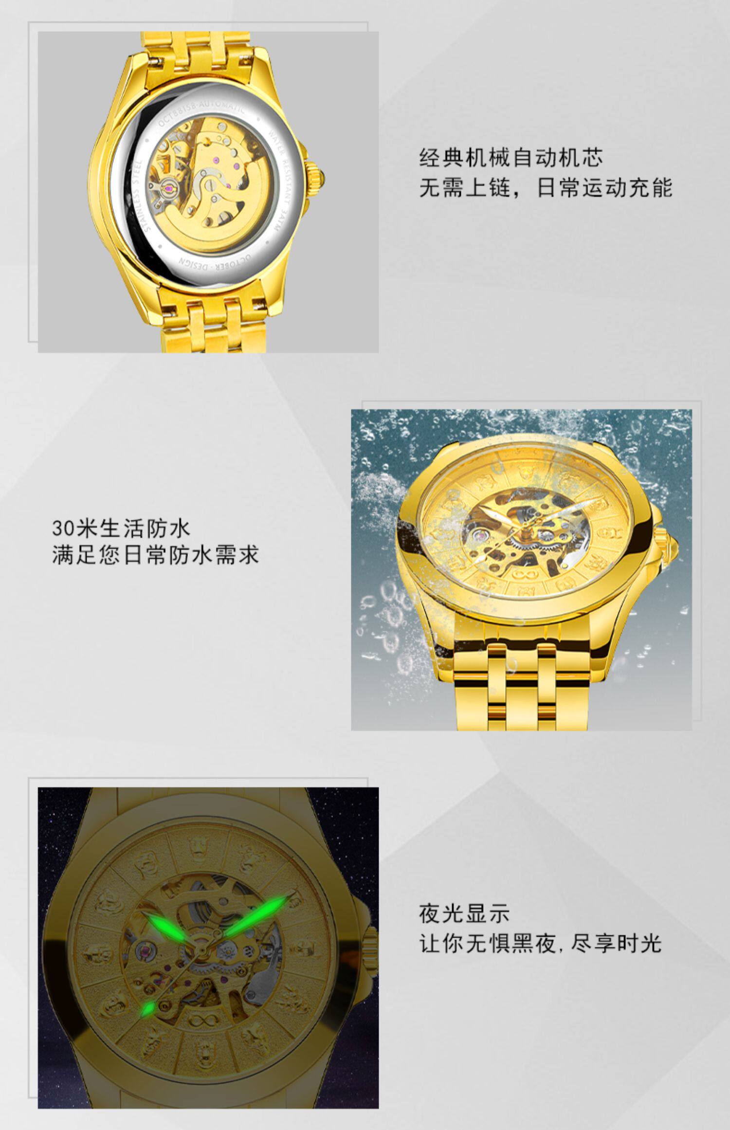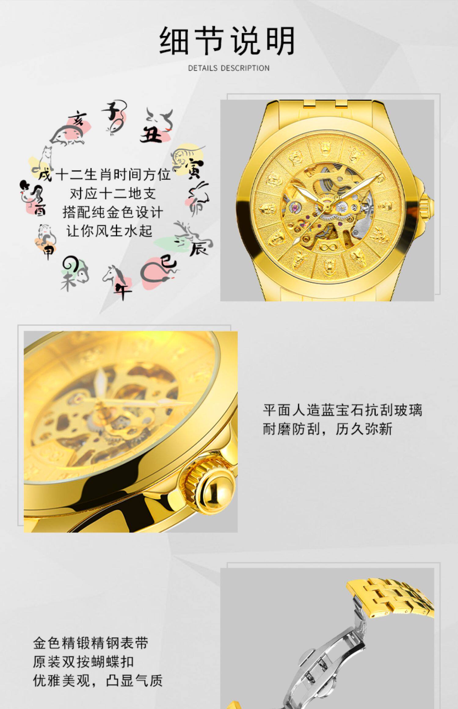 Знаменитые часы, золотые мужские часы с бабочкой, механические механические часы, Швейцария, китайский гороскоп, полностью автоматический