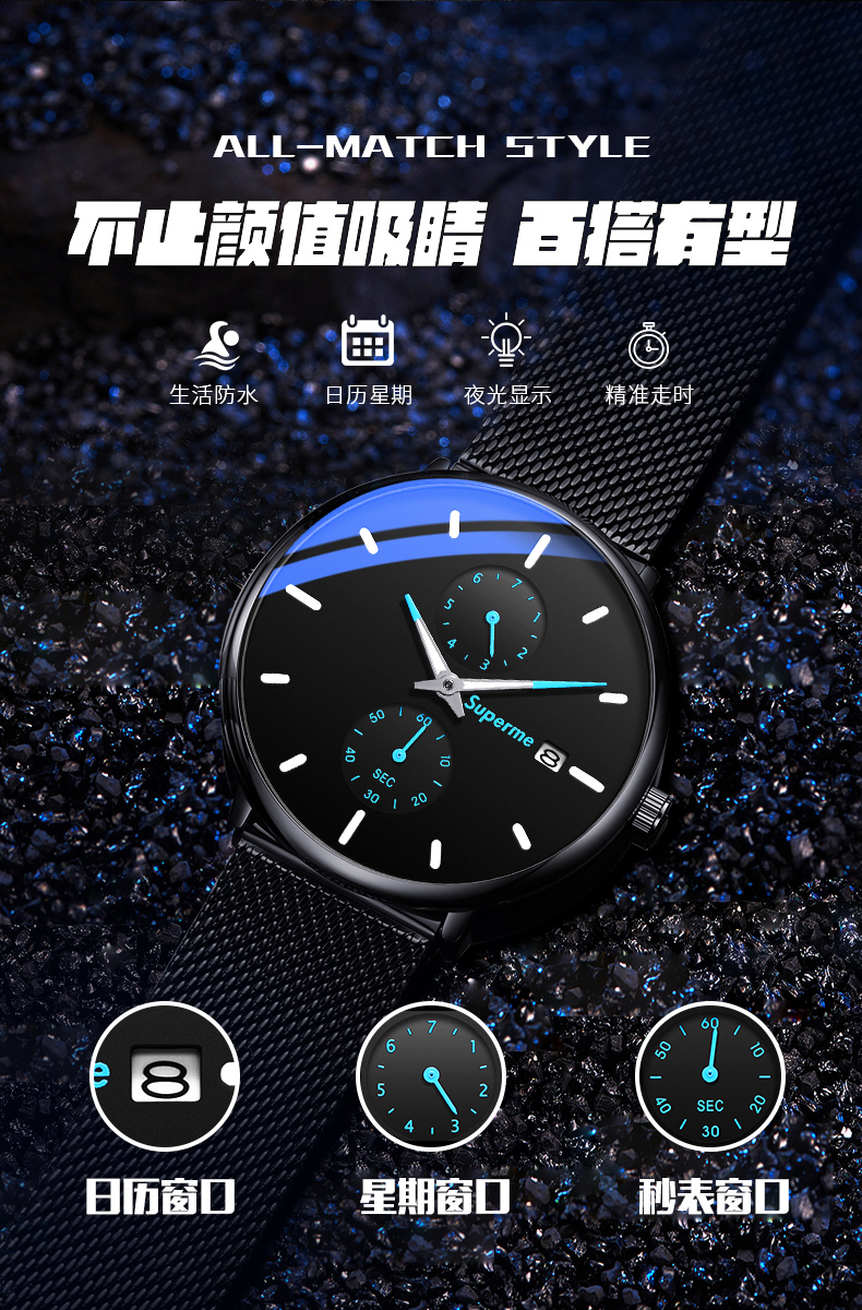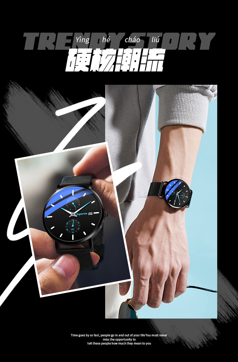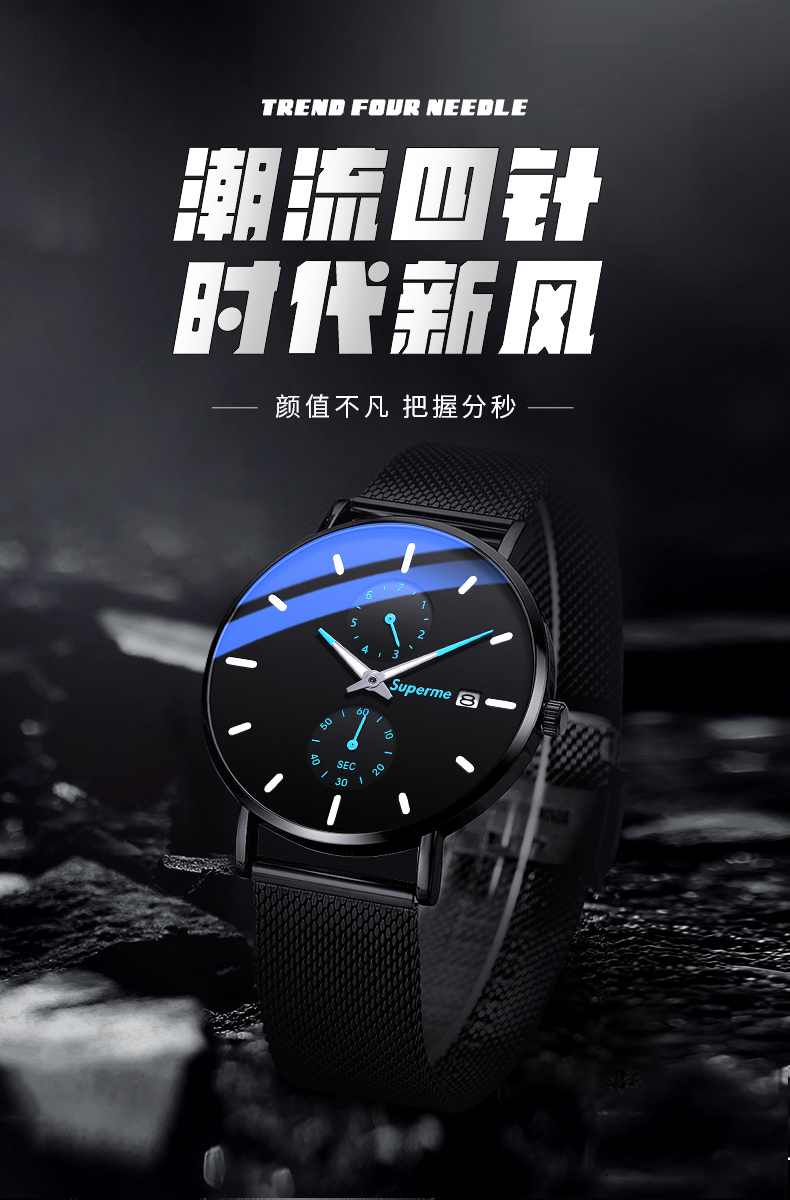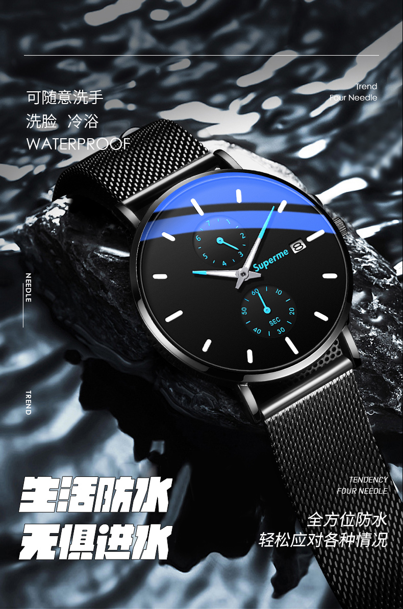 Механические мужские часы, трендовые механические часы, ультратонкие электронные водонепроницаемые кварцевые часы, для средней школы